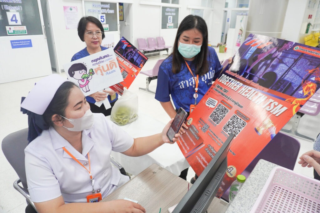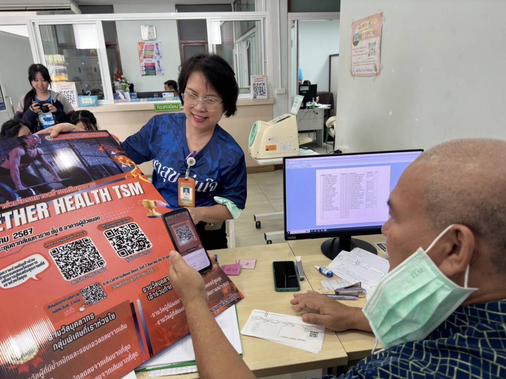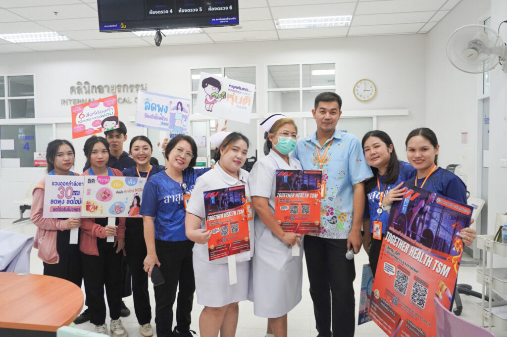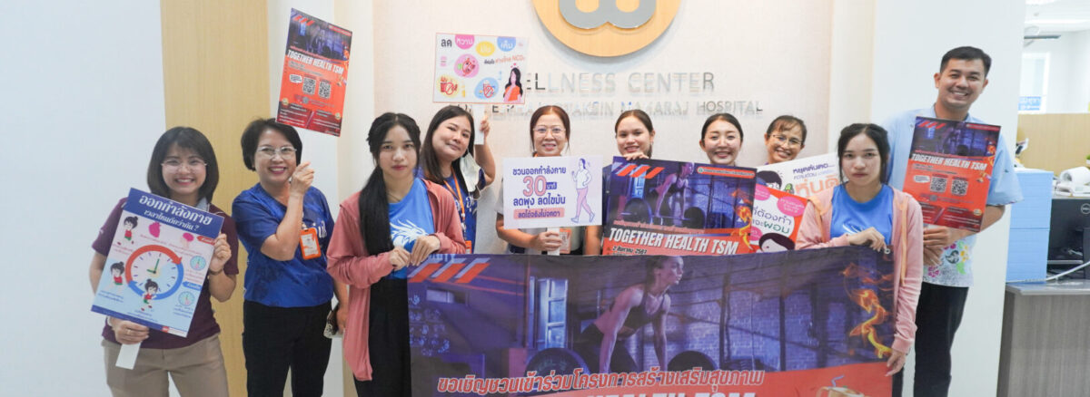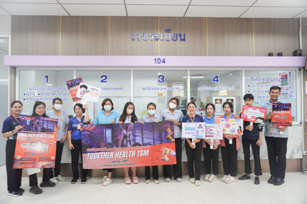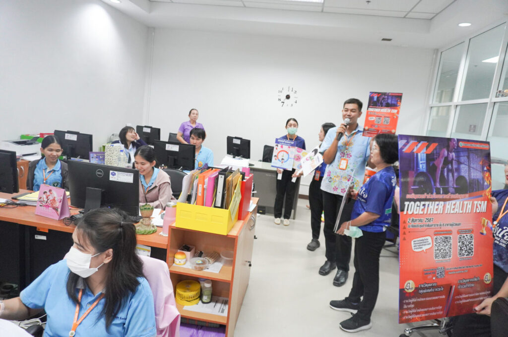 ผู้อำนวยการ โรงพยาบาลสมเด็จพระเจ้าตากสินมหาราช มอบหมายให้กลุ่มงานอาชีวเวชกรรมและกลุ่มงานสุขศึกษา รณรงค์เชิญชวนบุคลากรข้าร่วมกิจกรรมสร้างเสริมสุขภาพประจำปี “ Together Health TSM. ” ซึ่งจะเริ่มดำเนินการในวันที่ 2 สิงหาคม 2567 ถึงวันที่26 พฤศจิกายน 2567 มีการจัดกิจกรรมส่งเสริมสุขภาพ โดยสนับสนุนให้บุคลากรเข้าร่วมกิจกรรมดังกล่าว โดยการสแกน QR Code สมัครเข้าร่วมกิจกรรมปรับเปลี่ยนพฤติกรรมสุขภาพ และออกกำลังกายในรูปแบบต่างๆ พร้อมแนะนำวิธีการลงทะเบียน ส่งภาพถ่ายกิจกรรมออกกำลังกายผ่านช่องทาง https://tsm.go.th/togetherhealthtsm2024 โดยมีกติกาส่งภาพออกกำลังกายวันละ 1 ภาพ และระยะเวลาที่ใช้ในการออกกำลังกาย รวมถึงลุ้นรับรางวัลสุขภาพดี ไปด้วยกัน กับ Wellness Center