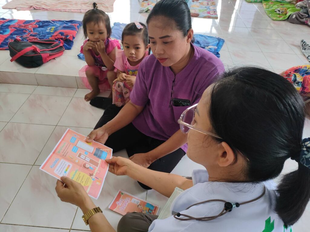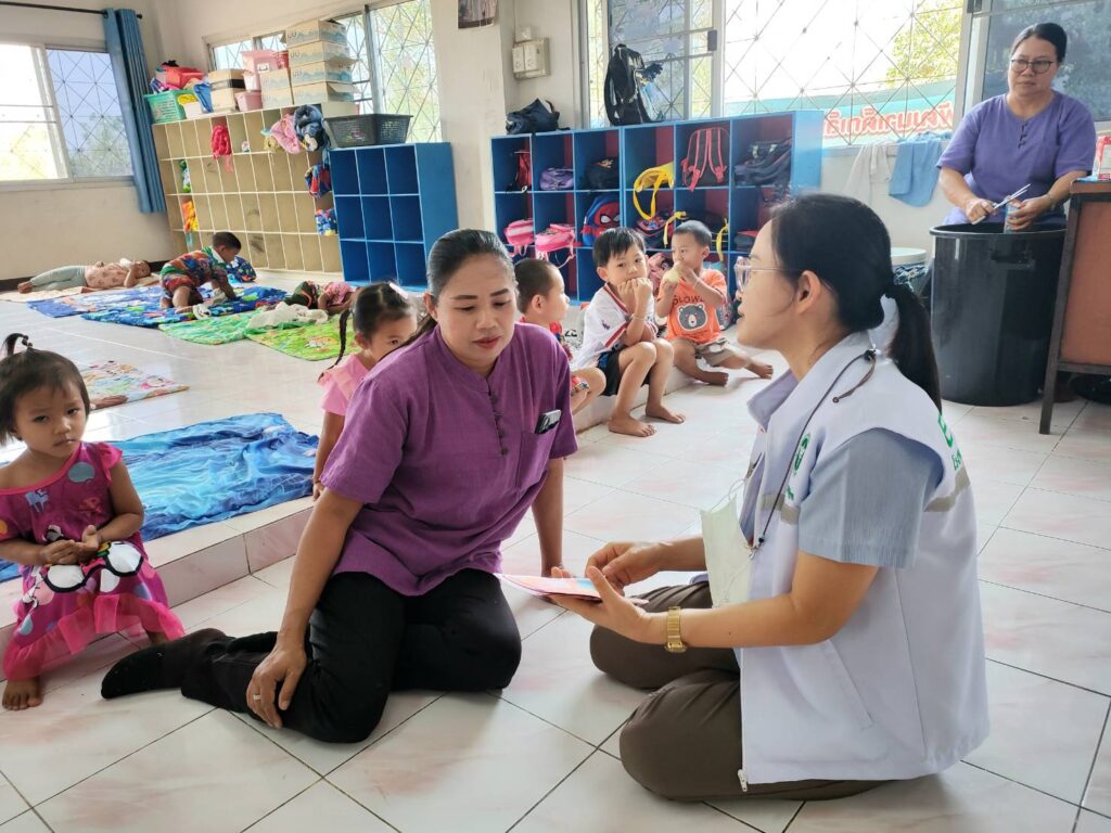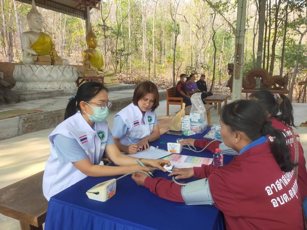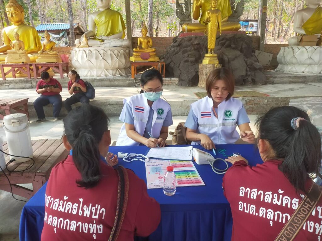 วันที่ 18 กุมภาพันธ์ 2568 นพ.บรรเจิด นนทสูติ ผู้อำนวยการโรงพยาบาลสมเด็จพระเจ้าตากสินมหาราช มอบหมายให้ กลุ่มงานอาชีวเวชกรรม ร่วมกับศูนย์ส่งเสริมการควบคุมไฟป่าตาก ออกหน่วยบริการอาชีวอนามัยเชิงรุก แก่อาสาสมัครป้องกันไฟป่า (อส.ฟป) โดยเนื้อหาการอบรมประกอบด้วย กฎหมายของป่าไม้ การเข้าระงับเหตุไฟป่า การใช้อุปกรณ์ การจัดทำแนวกันไฟ การให้ความรู้เกี่ยวกับสถานการณ์ฝุ่นละอองขนาดเล็ก (PM2.5) ให้คำแนะนำในการดูแลสุขภาพ การปฏิบัติตัวเพื่อป้องกันอันตราย/ลดการสัมผัสฝุ่นละออง PM2.5 อันตรายจากไฟป่า การปฐมพยาบาลเบื้องต้น ประชาสัมพันธ์คลินิกมลพิษ/คลินิกมลพิษออนไลน์ (รพ.สมเด็จพระเจ้าตากสินมหาราช) มอบชุดปฐมพยาบาล หน้ากากอนามัย และเครื่องวัดออกซิเจนในเลือด แก่งานป้องกันและบรรเทาสาธารณภัย องค์การบริหารส่วนตำบลตลุกกลางทุ่ง ในโครงการฝึกอบรมไฟป่า ประจำปีงบประมาณ 2568 ซึ่งเป็นกำลังสนับสนุนเจ้าพนักงานในการควบคุมไฟป่า ณ สำนักสงฆ์เขาพระเมิน หมู่ที่8 บ้านเด่นมะขาม ตำบลตลุกกลางทุ่ง โดยมีผู้เข้าร่วมการอบรม จำนวน 25 คน รวมไปถึง ให้คำแนะนำแนวทางการจัดทำ ห้องปลอดฝุ่น มอบสื่อความรู้และหน้ากากอนามัยสำหรับเด็กเล็ก จำนวน 100 ชิ้น แก่เด็กและบุคลากร ณ ศูนย์พัฒนาเด็กเล็กองค์การบริหารส่วนตำบลตลุกกลางทุ่ง ตำบลตลุกกลางทุ่ง อำเภอเมืองตาก จังหวัดตาก
