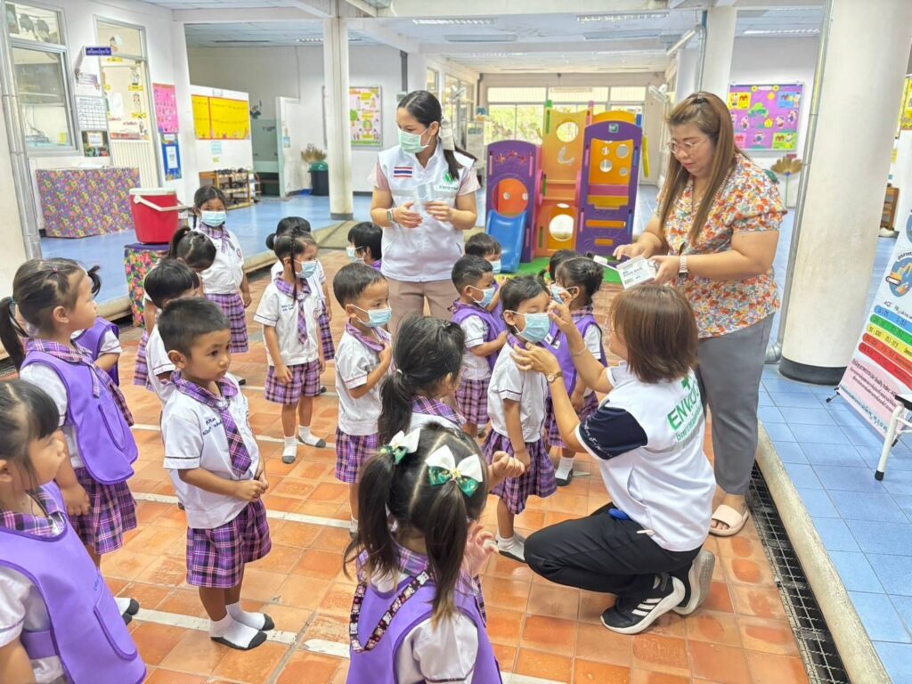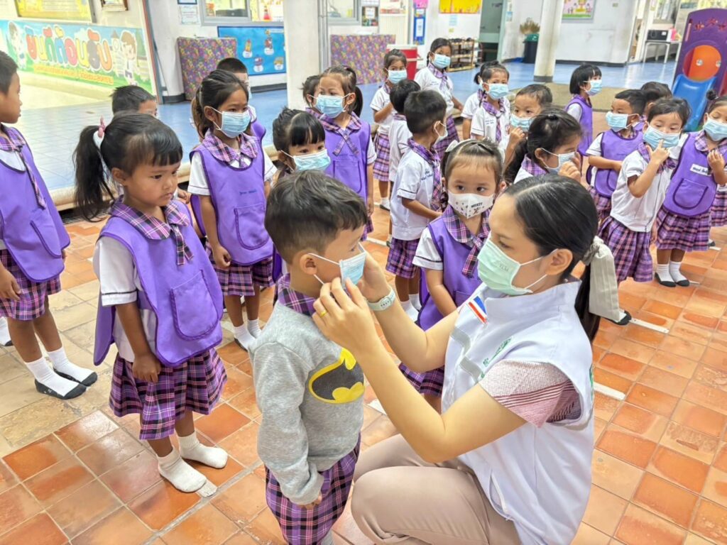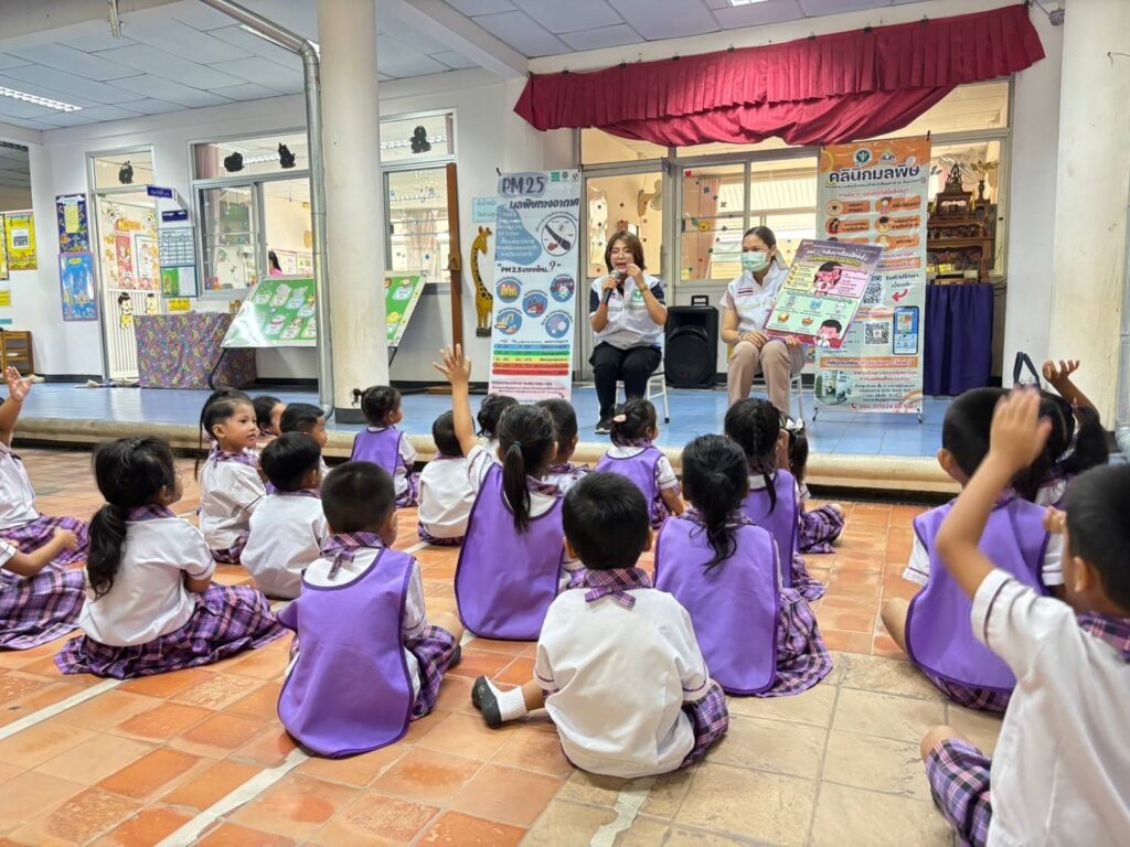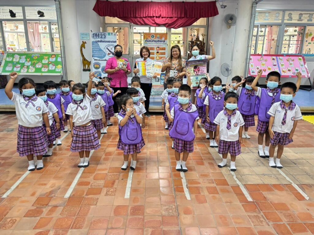 วันที่ 20 กุมภาพันธ์ 2568 นพ.บรรเจิด นนทสูติ ผู้อำนวยการโรงพยาบาลสมเด็จพระเจ้าตากสินมหาราช มอบหมายให้กลุ่มงานอาชีวเวชกรรม ออกหน่วยบริการอาชีวอนามัยเชิงรุกให้คำแนะนำในการดูแลสุขภาพ การปฏิบัติตัวเพื่อป้องกันอันตราย การปฐมพยาบาลเบื้องต้นกรณีเลือดกำเดาไหล การลดการสัมผัสฝุ่นละอองPM2.5 ประชาสัมพันธ์คลินิกมลพิษ คลินิกมลพิษออนไลน์ (รพ.สมเด็จพระเจ้าตากสินมหาราช) ให้คำแนะนำแนวทางการจัดทำห้องปลอดฝุ่นศูนย์พัฒนาเด็กเล็ก รวมไปถึงมอบสื่อความรู้และหน้ากากอนามัยสำหรับเด็กเล็ก จำนวน 100 ชิ้น แก่เด็กนักเรียน จำนวนทั้งสิ้น 36 คน ณ ศูนย์พัฒนาเด็กเล็กเทศบาล 3 วัดชัยชนะสงคราม อำเภอเมืองตาก จังหวัดตาก