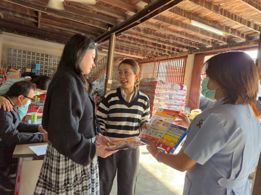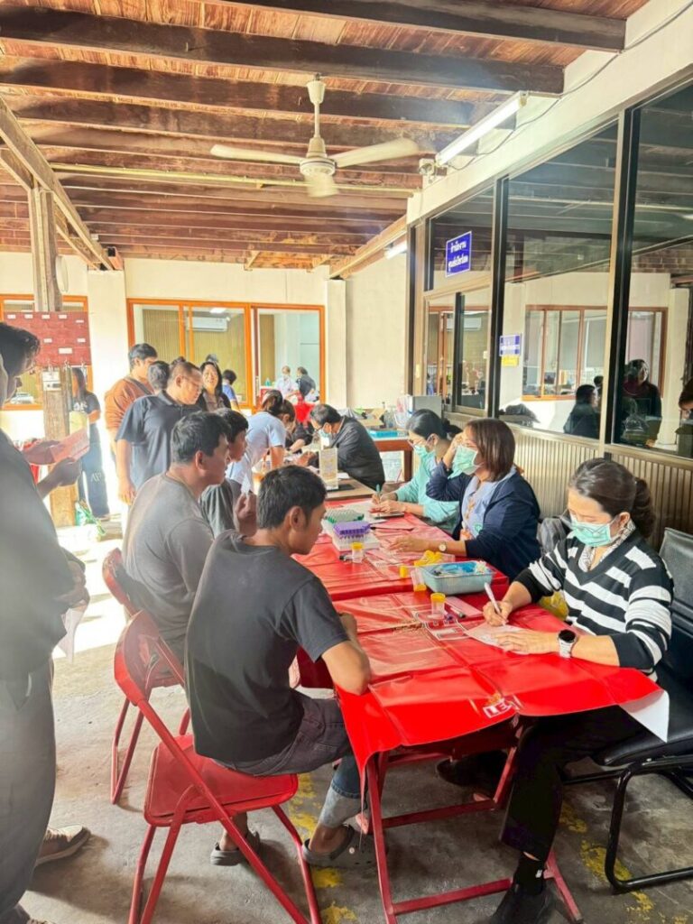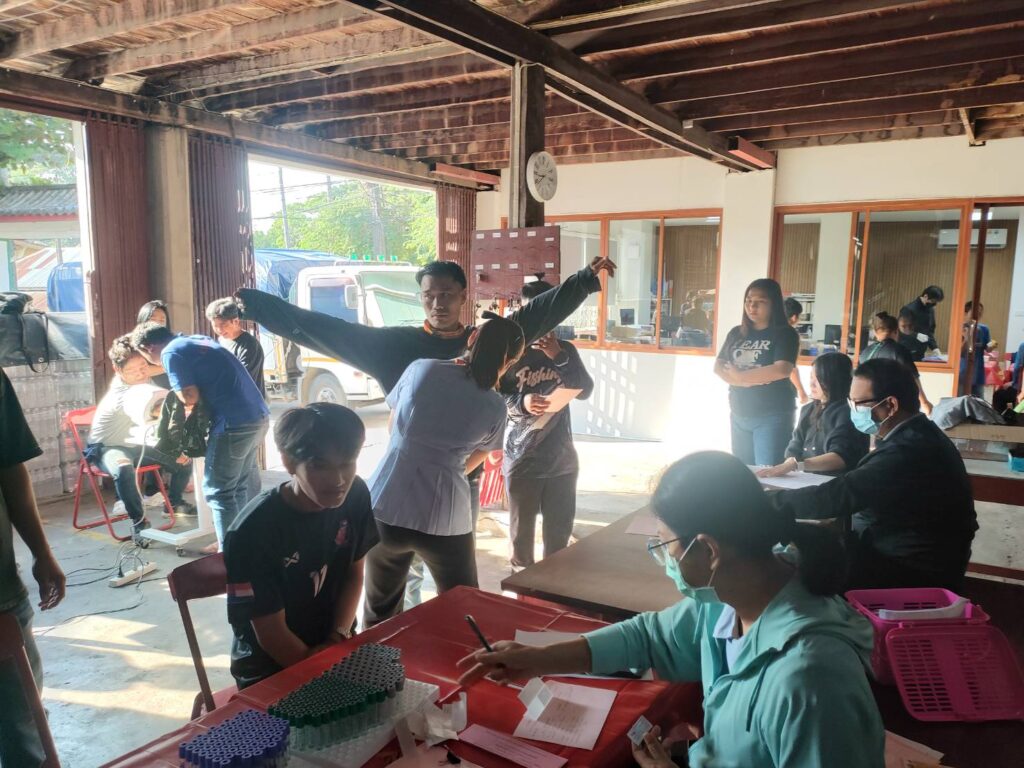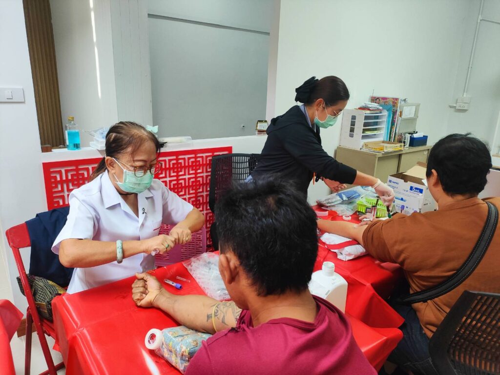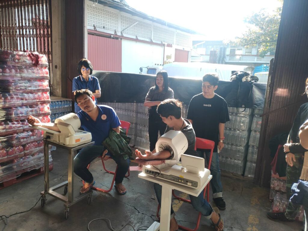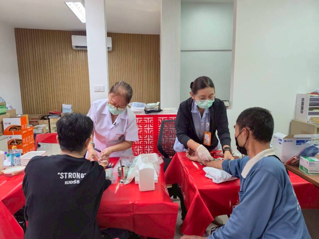 วันที่ 27 พฤศจิกายน 2568 นายแพทย์มงคล ลือชูวงศ์ ผู้อำนวยการโรงพยาบาลสมเด็จพระเจ้าตากสินมหาราช มอบหมายให้กลุ่มงานอาชีวเวชกรรม ร่วมกับกลุ่มงานพยาธิวิทยา กลุ่มงานเวชระเบียนผู้ป่วยนอกและกลุ่มงานทันตกรรม ออกให้บริการอาชีวอนามัยเชิงรุกตรวจสุขภาพประจำปี ซักประวัติ คัดกรอง พร้อมให้คำปรึกษาในการดูแลสุขภาพ ตรวจคัดกรองสุขภาพช่องปาก การปฏิบัติตัวเพื่อป้องกันอันตรายจากการสัมผัสฝุ่นละออง PM2.5 และประชาสัมพันธ์คลินิกมลพิษ/คลินิกมลพิษออนไลน์ (รพ.สมเด็จพระเจ้าตากสินมหาราช) รวมไปถึงมอบสื่อความรู้ ให้แก่พนักงาน บริษัท ลิ้มใช้เซ้ง จำกัด อำเภอเมืองตาก จังหวัดตาก โดยมีผู้มารับบริการตรวจสุขภาพ จำนวน 50 คน
