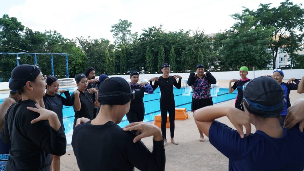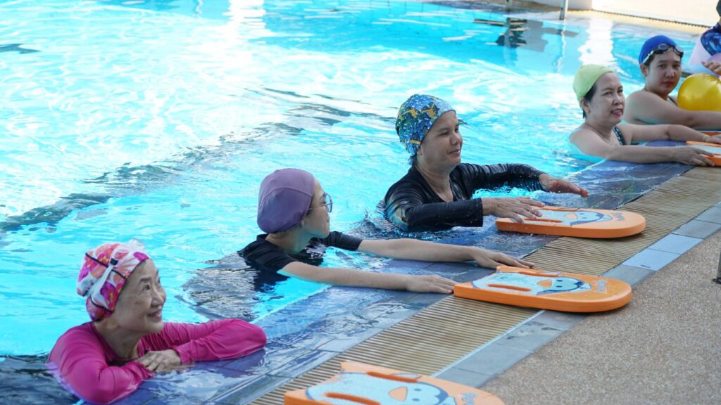 วันที่ 29 – 30 ตุลาคม 2567 เวลา 13.30 – 16.00 น. กลุ่มงานอาชีวเวชกรรม โรงพยาบาลสมเด็จพระเจ้าตากสินมหาราช จัดโครงการส่งเสริมสุขภาพ Together Health TSM. 2024 กิจกรรมที่ 3 การฝึกปฏิบัติออกกำลังกายในน้ำ เพื่อกระชับกล้ามเนื้อเผาผลาญพลังงาน และลดการบาดเจ็บของข้อต่อต่างๆ ได้รับเกียรติจาก นางสาวรัชนี หีบแก้ว เป็นวิทยากรและครูฝึก ปฏิบัติการออกกำลังกายในน้ำ อาทิ เช่น ท่าบริหารกระชับหน้าท้อง ท่าบริหารลดกระชับสะโพก ท่าบริหารต้นขา ท่าบริหารต้นขาทั้งด้านในและด้านนอก และท่าผ่อนคลาย ณ สระว่ายน้ำองค์การบริหารส่วนจังหวัดตาก โดยมีผู้เข้าร่วมโครงการทั้งหมด 80 คน