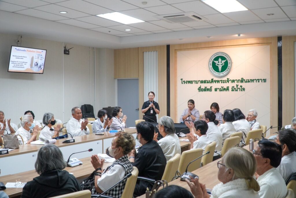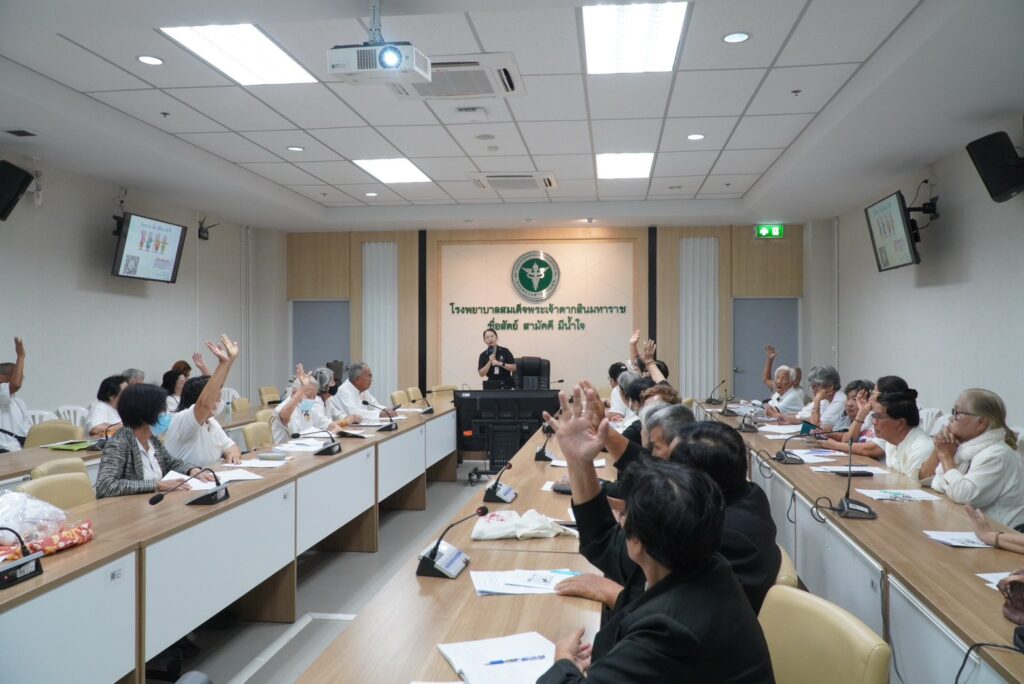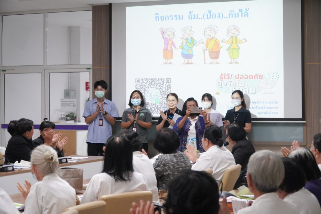 วันศุกร์ ที่ 6 กุมภาพันธ์ 2569 คลินิกสูงอายุ เวชกรรมสังคม จัดกิจกรรมให้แก่ ชมรมสูงอายุ และผู้สูงอายุ จังหวัดตาก นำทีมโดยพญ.ศิริวรรณ เชาว์โน พร้อมทีมงานแผนกอาชีวะเวชกรรมโดยมีเนื้อหา “สูงอายุสุขใจ บ้านปลอดภัย ด้วยห้องปลอดภัย” กลุ่มเป้าหมายคือชมรมผู้สูงอายุ จำนวน 60 คน ภายในงานมีการให้ความรู้เรื่องการจัดสภาพแวดล้อมภายในบ้านเพื่อป้องกันการพลัดตกหกล้ม การออกกำลังกายเพื่อป้องกันการพลัดตกหกล้ม กิจกรรมฝึกสมอง คลายเครียด และกิจกรรมทดสอบสมรรถภาพทางกาย 4 ฐาน ได้แก่ ทดสอบการทรงตัว ทดสอบความอ่อนตัว ทดสอบความแข็งแรงของกล้ามเนื้อขา ณ ห้องประชุมหลวงพิชัยอาสา โรงพยาบาลสมเด็จพระเจ้าตากสินมหาราช