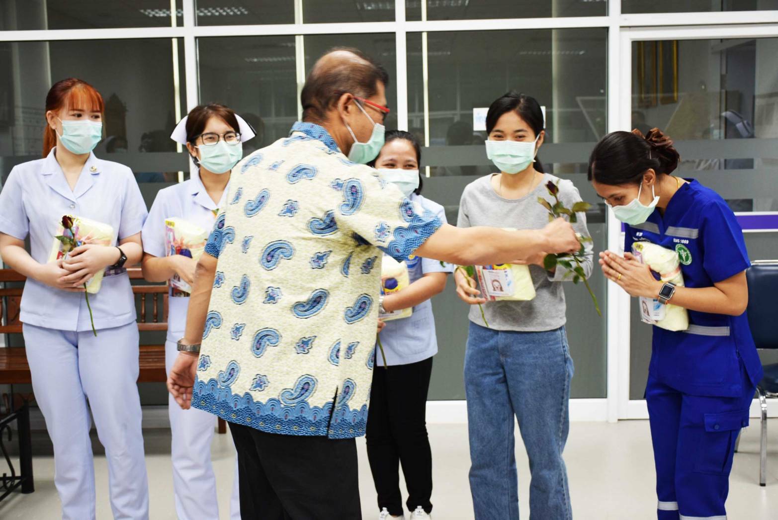 มอบของขวัญและช่อดอกไม้ ชื่นชมยกย่องในความเสียสละ กล่าวอวยพร สร้างขวัญและกำลังใจแด่ทีมนักรบชุดขาวของโรงพยาบาลสมเด็จพระเจ้าตากสินมหาราช ที่เดินทางไปปฎิบัติภารกิจ ช่วยอำเภอแม่สอด ต้านโควิด-19