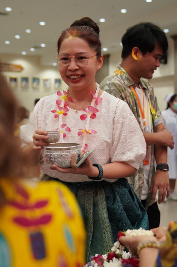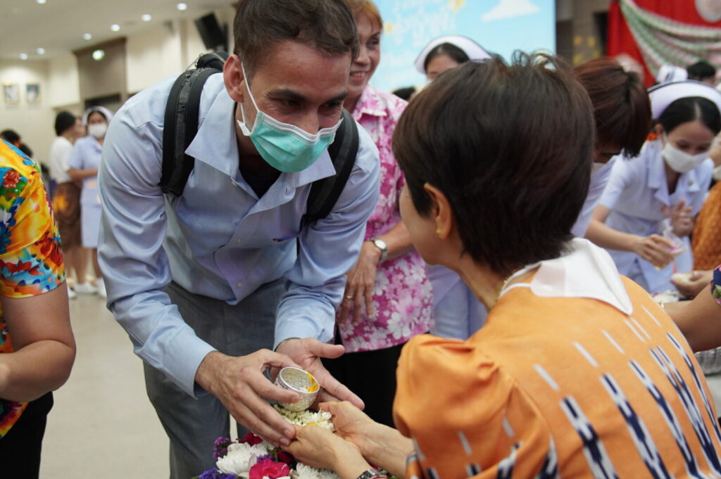 วันที่ 22 เมษายน 2567 นพ.บรรเจิด นนทสูติ ผู้อำนวยการโรงพยาบาลสมเด็จพระเจ้าตากสินมหาราช มอบหมายให้ นพ.วันชัย พินิชกชกร รองผู้อำนวยการฝ่ายการแพทย์ เป็นประธาน จัดกิจกรรมเทศกาลสงกรานต์ @ตสม “ปีใหม่ไทยเบิกบาน สงกรานต์สุขใจ ของแทร่” โดยมีนพ.พัฒนะ ภู่พัฒนะกุล ผู้ช่วยผู้อำนวยการด้านกิจกรรมพิเศษ กล่าวรายงาน ในงานมีกิจกรรม สรงน้ำพระพุทธรูป พระรูปหล่อจำลองสมเด็จพระเจ้าตากสินมหาราช รดน้ำขอพรผู้บริหาร และผู้เกษียณอายุราชการ เพื่อสืบสานประเพณีที่งดงามอ่อนโยน เอื้ออาทร และการให้เกียรติเคารพซึ่งกันและกัน บรรยากาศเต็มไปด้วยความอบอุ่น สนุกสนานรื่นเริง โดยกิจกรรมจัดขึ้น ณ ห้องประชุมตากสินมหาราช ชั้น 6 อาคารผู้ป่วยนอก