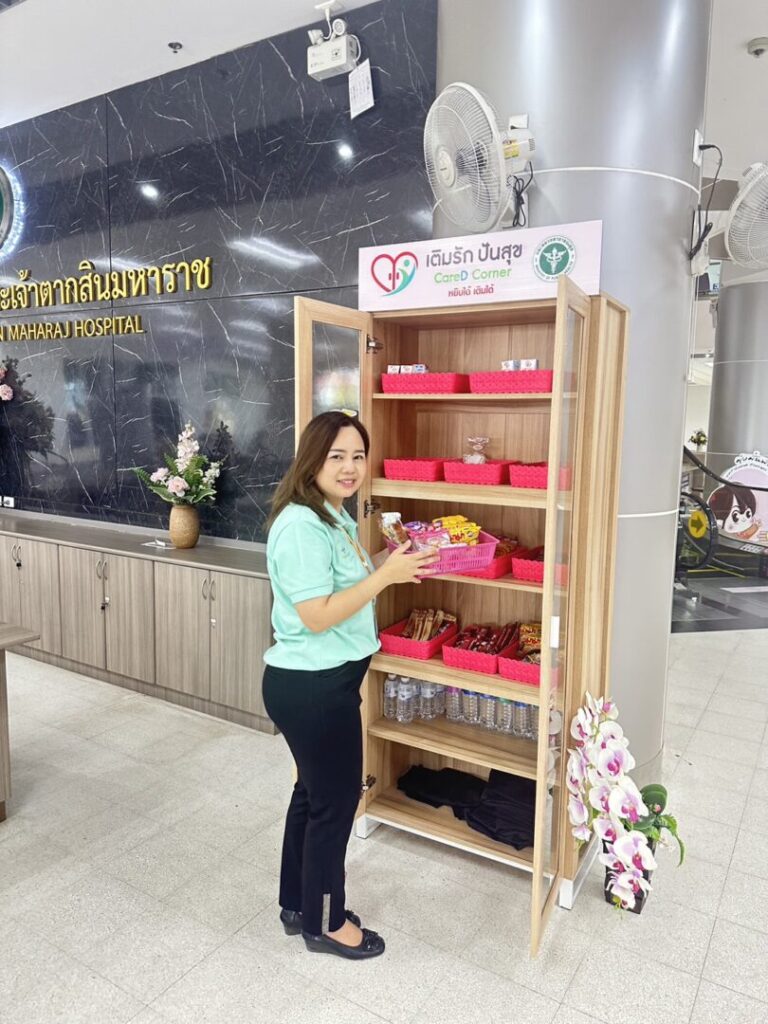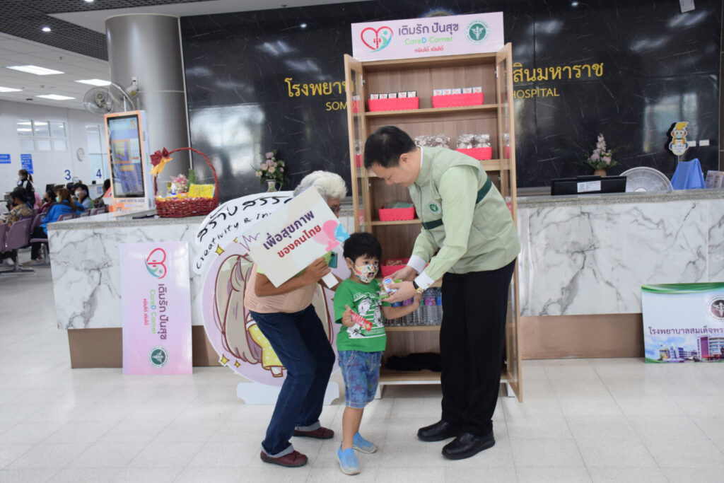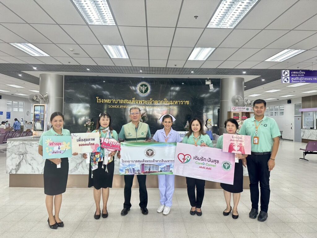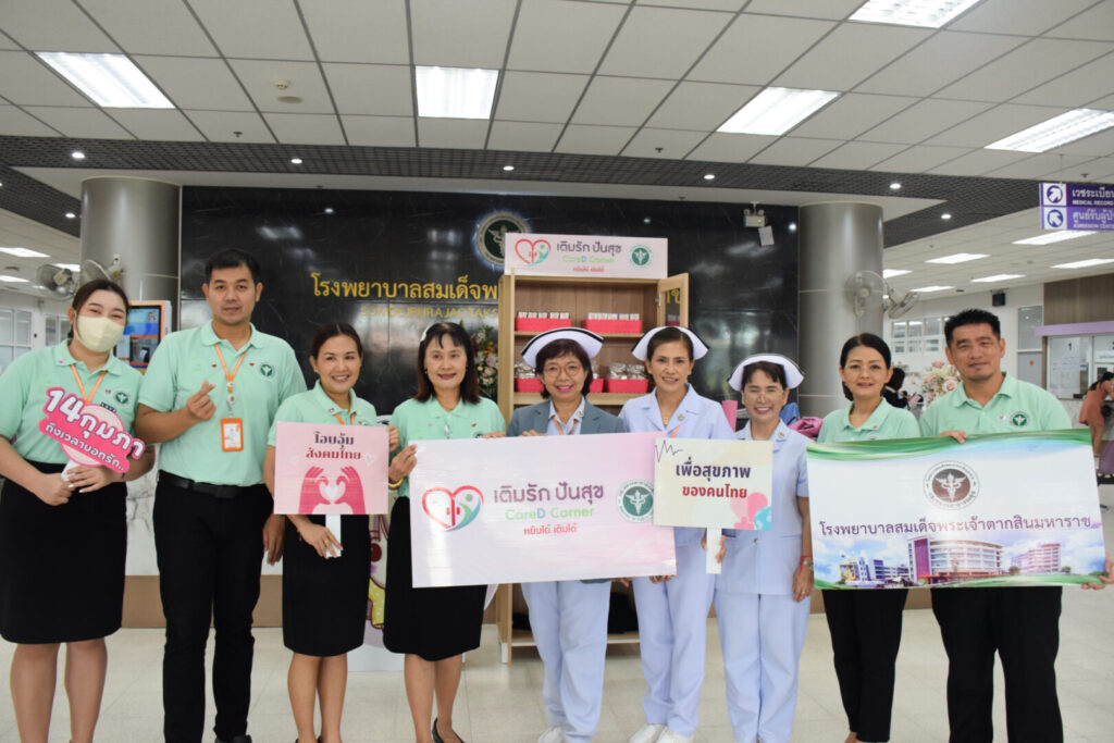วันที่ 14 กุมภาพันธ์ 2567 นพ.บรรเจิด นนทสูติ ผู้อำนวยการโรงพยาบาลสมเด็จพระเจ้าตากสินมหาราช พร้อมด้วยคณะผู้บริหารโรงพยาบาล และทีมงาน Care D Plus โรงพยาบาลสมเด็จพระเจ้าตากสินมหาราช ร่วมกับสำนักงานสาธารณสุขจังหวัดตาก นำโดยดร.นพ.ปองพล วรปาณิ นายแพทย์สาธารณสุขจังหวัดตาก จัดกิจกรรมในงาน “กระทรวงสาธารณสุข สร้างสุข เติมรักษ์ โอบอุ้มสังคมไทย เพื่อชาติ ศาสน์ กษัตริย์ 14 กุมภาพันธ์ 2567” โดยดำเนินการเปิดมุม “เติมรัก ปันสุข (Care D Corner) พร้อมกันทั่วประเทศ” เพื่อสร้างสังคมแห่งการแบ่งปัน ส่งต่อความอบอุ่นให้กับประชาชน ผู้ใช้บริการ และสังคมในวันแห่งความรัก และวันต่อ ๆ ไป ณ ชั้น 1 อาคารผู้ป่วยนอก โรงพยาบาลสมเด็จพระเจ้าตากสินมหาราช