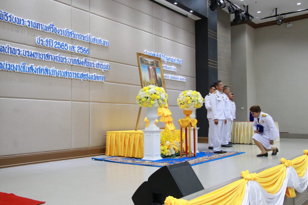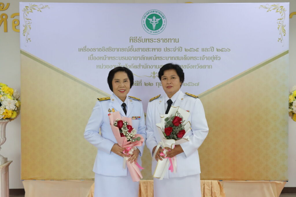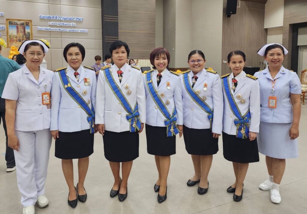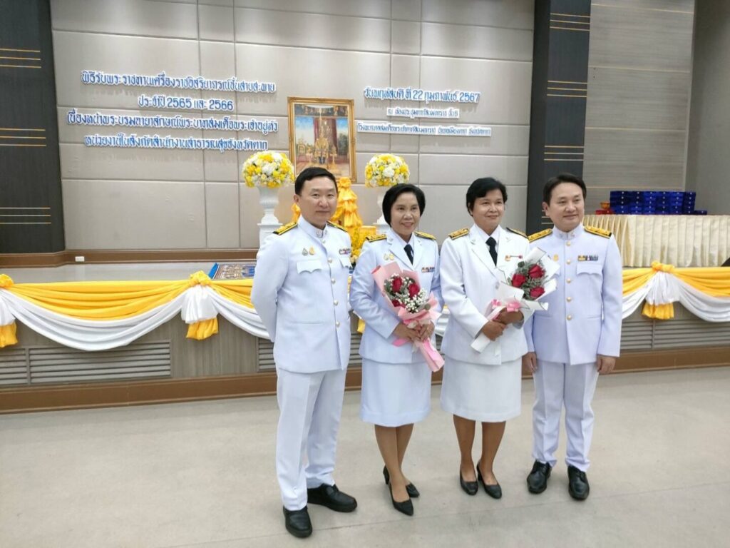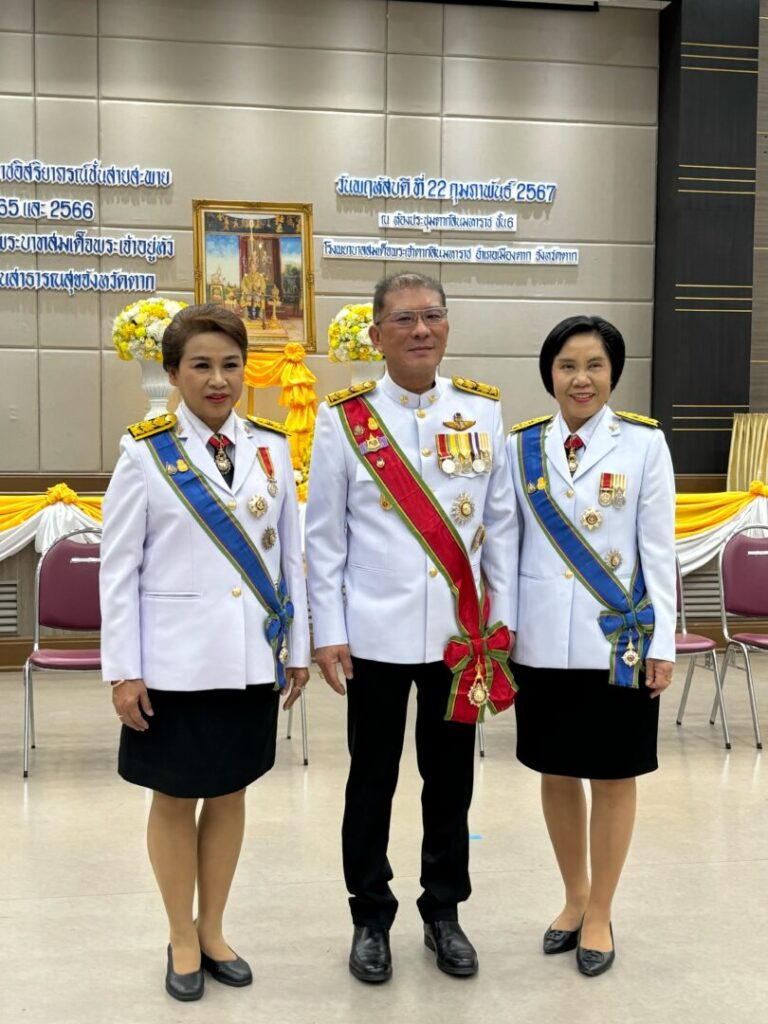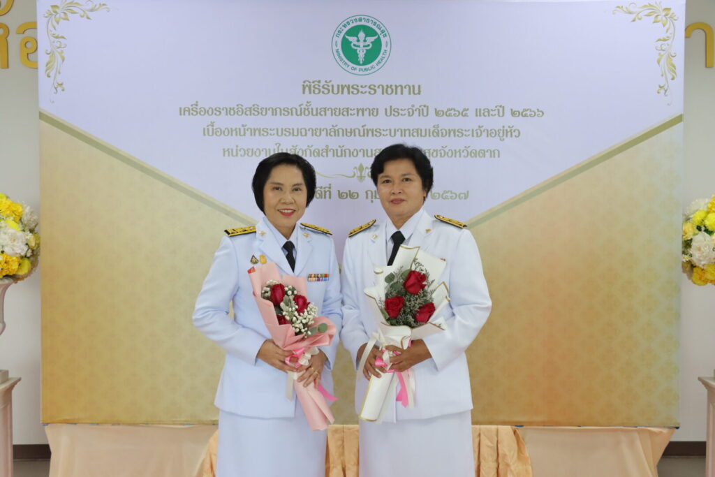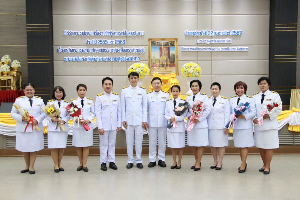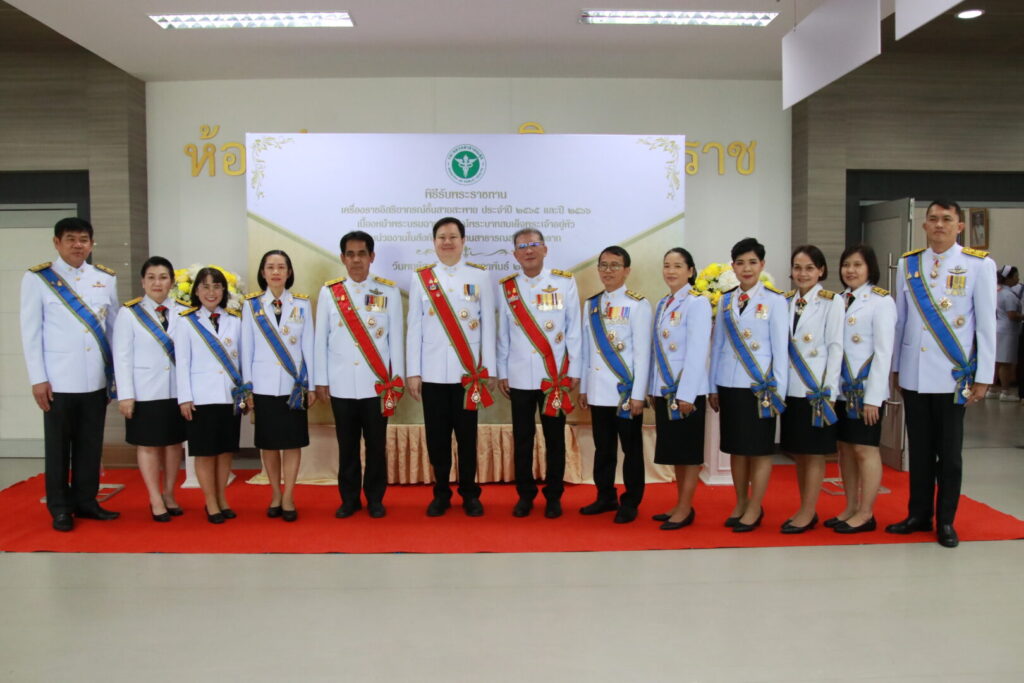 วันที่ 22 กุมภาพันธ์ 2567 นายแพทย์บรรเจิด นนทสูติ ผู้อำนวยการโรงพยาบาลสมเด็จพระเจ้าตากสินมหาราช นำคณะผู้บริหาร พร้อมด้วยเจ้าหน้าที่โรงพยาบาล ร่วมพิธีรับพระราชทานเครื่องราชอิสริยาภรณ์ ชั้นสายสะพาย ประจำปี 2565 และ ประจำปี 2566 เบื้องหน้าพระบรมฉายาลักษณ์พระบาทสมเด็จพระเจ้าอยู่หัว โดยมีนายสุรพล วงศ์สุขพิศาล รองผู้ว่าราชการจังหวัดตาก เป็นประธานในพิธี ดร.นพ.ปองพล วรปาณิ นายแพทย์สาธารณสุขจังหวัดตาก กล่าวรายงาน ณ ห้องประชุมตากสินมหาราช ชั้น 6 อาคารผู้ป่วยนอก ทั้งนี้มีบุคลากรโรงพยาบาลสมเด็จพระเจ้าตากสินมหาราช เข้ารับพระราชทานเครื่องราชอิสริยาภรณ์ ชั้นตราประถมาภรณ์มงกุฎไทย จำนวน 14 ราย ได้แก่ นพ.กิตติศักดิ์ โอฬารกิจเจริญ, นพ.ชัยกิจ อุดแน่น, นพ.สวโรจน์ เพชรสุกใส, นางนิตยา สุวรรณาภรณ์, นางสุพัตรา แจ่มตระกูล, นางสาวกลอยใจ มีเครือรอด, นางดุจดาว ทัพเบิก, นางสมบุญ ทับประดิษฐ์, นางภวพร สีแสด, นางสาวสุทัตรา คงศรี, นางสุนิตรา ทองดี, นางสาวกัลยา ท้วมโคกหม้อ, นางอรสา สุรีย์ และ นางสาวสดใส บุญธรรม โรงพยาบาลสมเด็จพระเจ้าตากสินมหาราช ขอแสดงความยินดีกับบุคลากร ที่ได้รับพระราชทานเครื่องราชอิสริยาภรณ์ ทุกท่าน