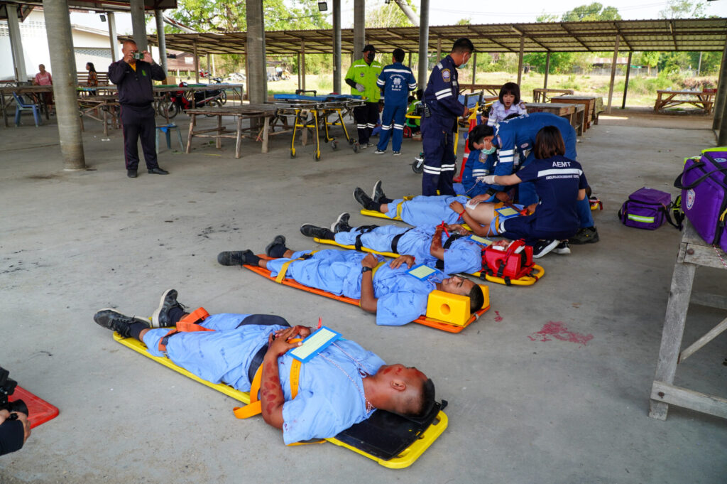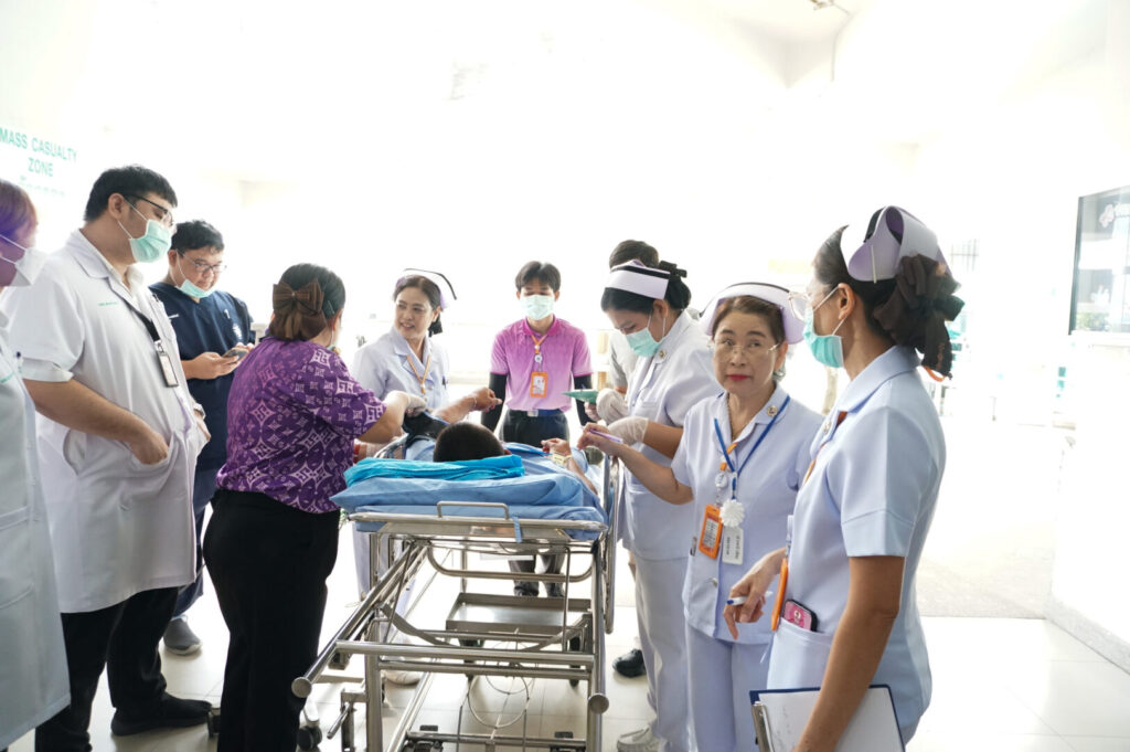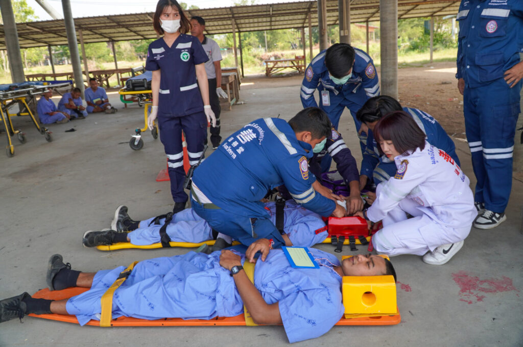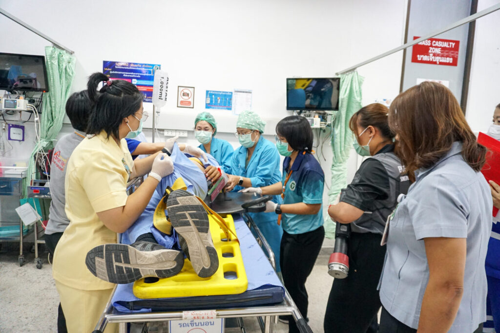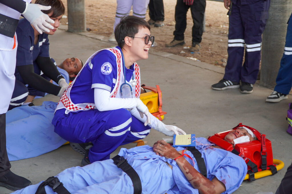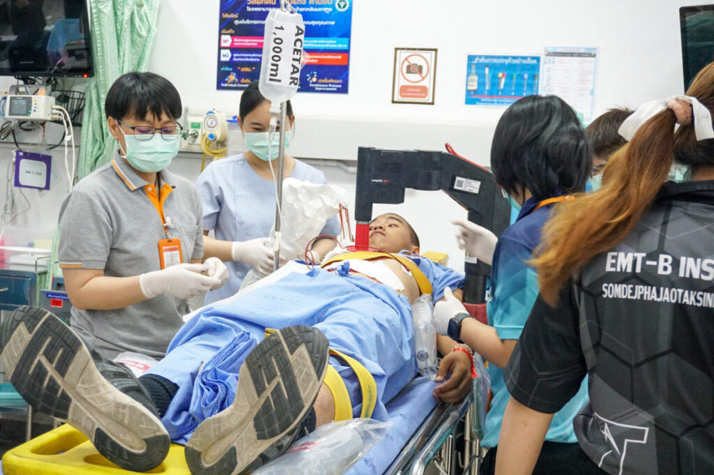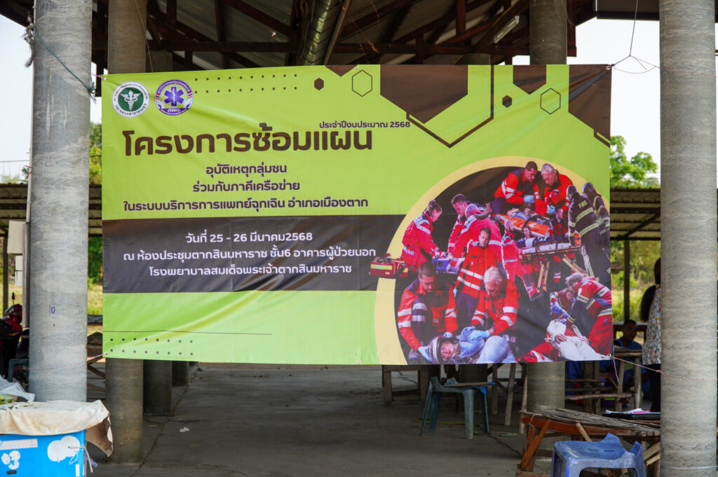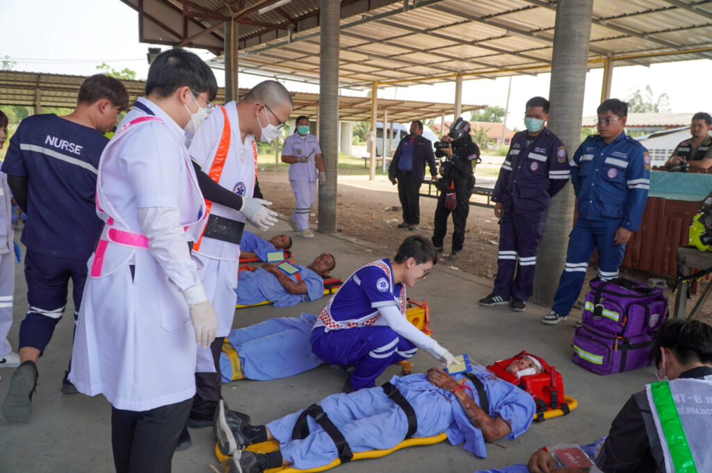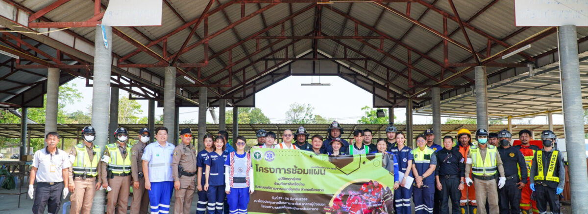 วันที่ 24-25 มีนาคม 2568 นพ.บรรเจิด นนทสูติ ผู้อำนวยการโรงพยาบาลสมเด็จพระเจ้าตากสินมหาราช มอบหมายให้กลุ่มงานเวชศาสตร์ฉุกเฉิน โรงพยาบาลสมเด็จพระเจ้าตากสินมหาราช จัดโครงการพัฒนาระบบบริการการแพทย์ฉุกเฉิน ปี 2568 การพัฒนาทักษะการช่วยเหลือผู้ป่วยและการจัดการ ณ จุดเกิดเหตุของบุคลากรเครือข่ายการแพทย์ฉุกเฉิน นำโดยนพ.วันชัย พินิชกชกร รองผู้อำนวยการฝ่ายการแพทย์ พร้อมด้วยพว.กลอยใจ มีเครือรอด รักษาการรองผู้อำนวยการฝ่ายการพยาบาล โดยมีวัตถุประสงค์เพื่อให้แพทย์ พยาบาล เจ้าหน้าที่โรงพยาบาลทุกระดับ และเครือข่ายในระบบบริการการแพทย์ฉุกเฉิน ได้มีความรู้ความเข้าใจในบทบาทการช่วยเหลือ และบริหารจัดการในสถานการณ์อุบัติเหตุกลุ่มชน พร้อมทั้งปฏิบัติหน้าที่ร่วมกับทีมของโรงพยาบาลได้อย่างมีประสิทธิภาพ และมีความรู้มีทักษะในการบริหารจัดการในสถานการณ์สาธารณภัยและอุบัติเหตุกลุ่มชน สามารถรักษาผู้ประสบเหตุจำนวนมากอย่างมีประสิทธิภาพ โดยการฝึกซ้อมแผนในครั้งนี้ได้รับความร่วมมือจากหน่วยงานภายนอก ได้แก่ เทศบาลเมืองตาก มูลนิธิตากร่วมใจสงเคราะห์ กู้ชีพอบต.แม่ท้อ กู้ชีพอบต.โป่งแดง กู้ชีพอบต.วังประจบ โรงพยาบาลค่ายวชิรปราการ โรงพยาบาลวังเจ้า โรงพยาบาลบ้านตาก โรงพยาบาลสามเงา และสถานีตำรวจภูธรจังหวัดตาก โรงพยาบาลสมเด็จพระเจ้าตากสินมหาราช ขอขอบพระคุณอย่างสูง มา ณ โอกาสนี้