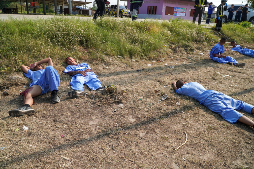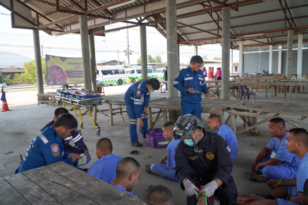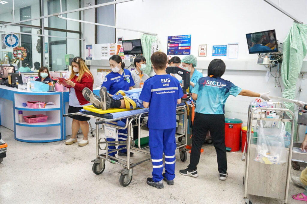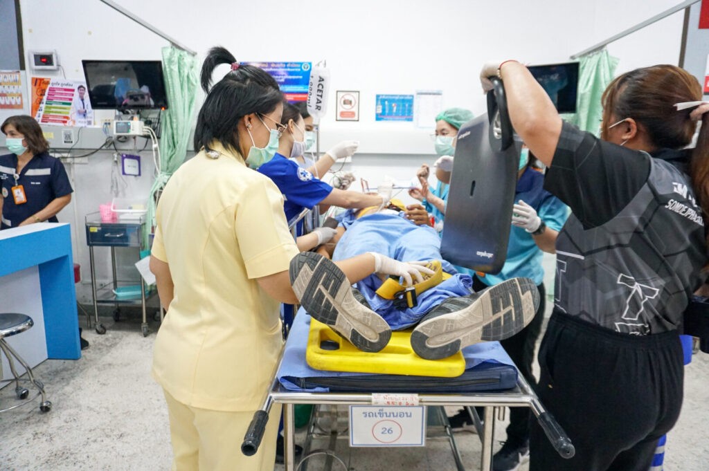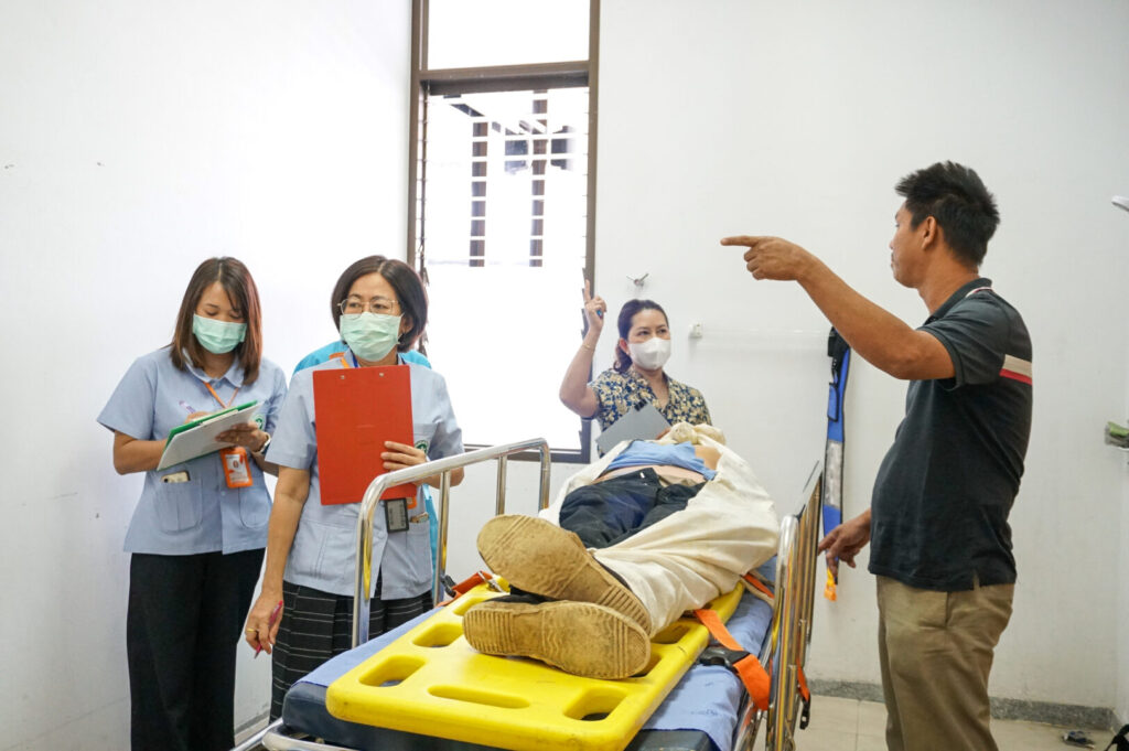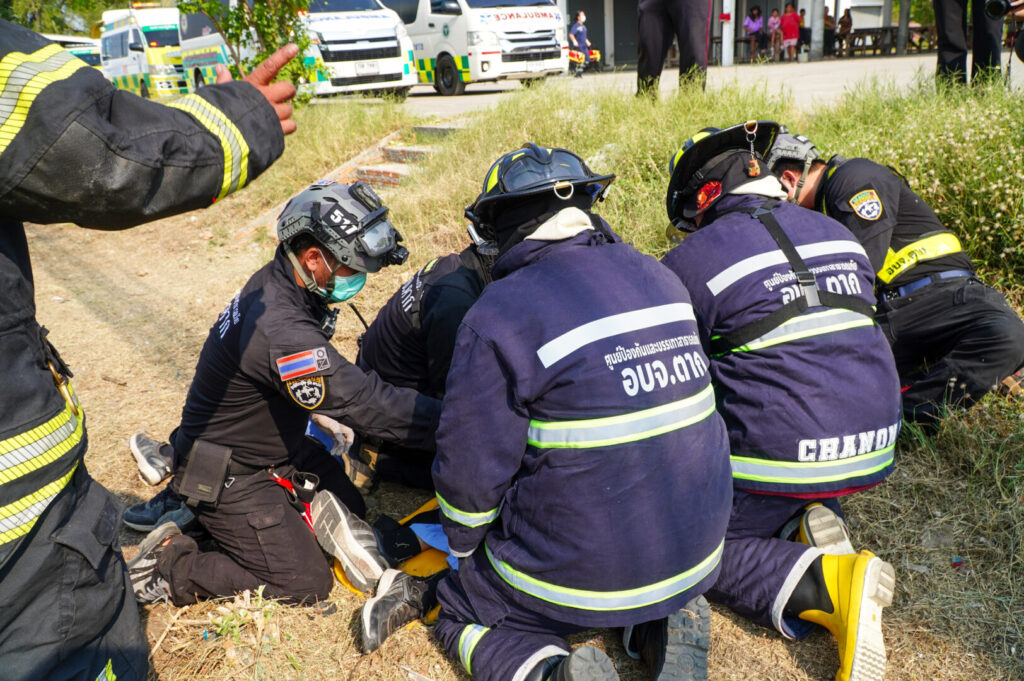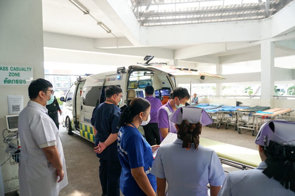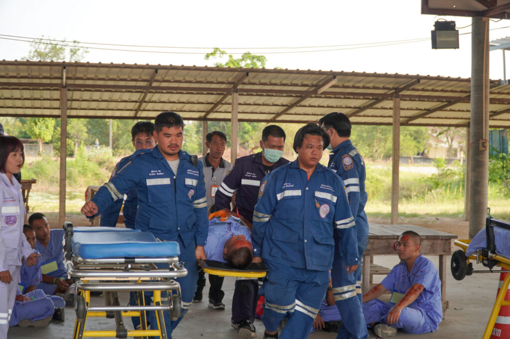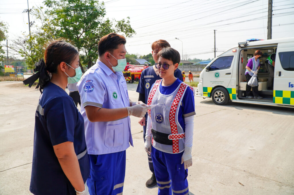 วันที่ 24-25 มีนาคม 2568 นพ.บรรเจิด นนทสูติ ผู้อำนวยการโรงพยาบาลสมเด็จพระเจ้าตากสินมหาราช มอบหมายให้กลุ่มงานเวชศาสตร์ฉุกเฉิน โรงพยาบาลสมเด็จพระเจ้าตากสินมหาราช จัดโครงการพัฒนาระบบบริการการแพทย์ฉุกเฉิน ปี 2568 การพัฒนาทักษะการช่วยเหลือผู้ป่วยและการจัดการ ณ จุดเกิดเหตุของบุคลากรเครือข่ายการแพทย์ฉุกเฉิน นำโดยนพ.วันชัย พินิชกชกร รองผู้อำนวยการฝ่ายการแพทย์ พร้อมด้วยพว.กลอยใจ มีเครือรอด รักษาการรองผู้อำนวยการฝ่ายการพยาบาล โดยมีวัตถุประสงค์เพื่อให้แพทย์ พยาบาล เจ้าหน้าที่โรงพยาบาลทุกระดับ และเครือข่ายในระบบบริการการแพทย์ฉุกเฉิน ได้มีความรู้ความเข้าใจในบทบาทการช่วยเหลือ และบริหารจัดการในสถานการณ์อุบัติเหตุกลุ่มชน พร้อมทั้งปฏิบัติหน้าที่ร่วมกับทีมของโรงพยาบาลได้อย่างมีประสิทธิภาพ และมีความรู้มีทักษะในการบริหารจัดการในสถานการณ์สาธารณภัยและอุบัติเหตุกลุ่มชน สามารถรักษาผู้ประสบเหตุจำนวนมากอย่างมีประสิทธิภาพ โดยการฝึกซ้อมแผนในครั้งนี้ได้รับความร่วมมือจากหน่วยงานภายนอก ได้แก่ เทศบาลเมืองตาก มูลนิธิตากร่วมใจสงเคราะห์ กู้ชีพอบต.แม่ท้อ กู้ชีพอบต.โป่งแดง กู้ชีพอบต.วังประจบ โรงพยาบาลค่ายวชิรปราการ โรงพยาบาลวังเจ้า โรงพยาบาลบ้านตาก โรงพยาบาลสามเงา และสถานีตำรวจภูธรจังหวัดตาก โรงพยาบาลสมเด็จพระเจ้าตากสินมหาราช ขอขอบพระคุณอย่างสูง มา ณ โอกาสนี้