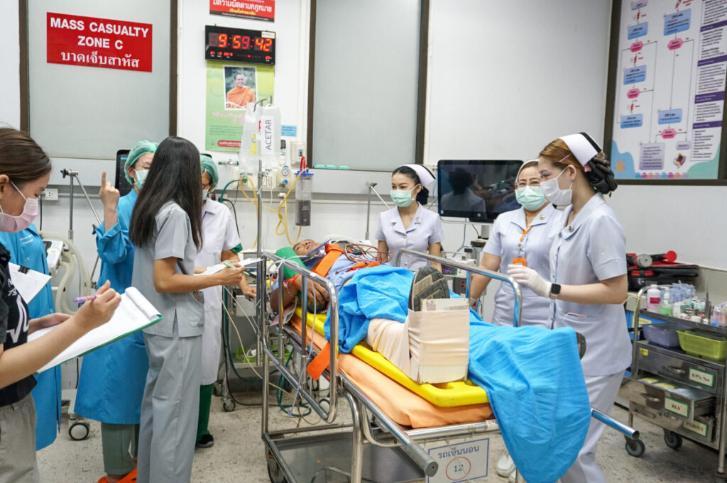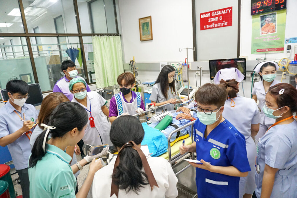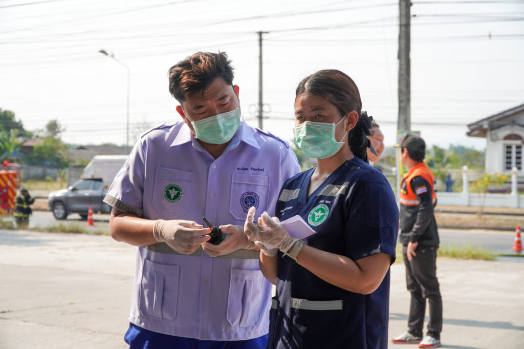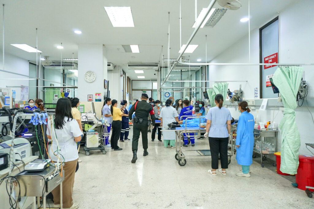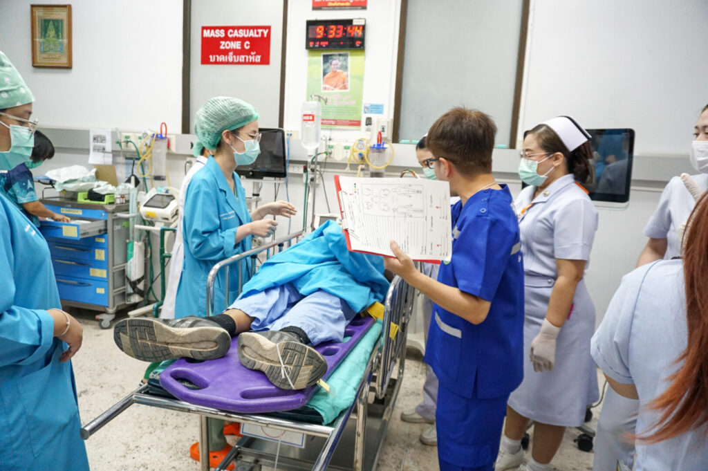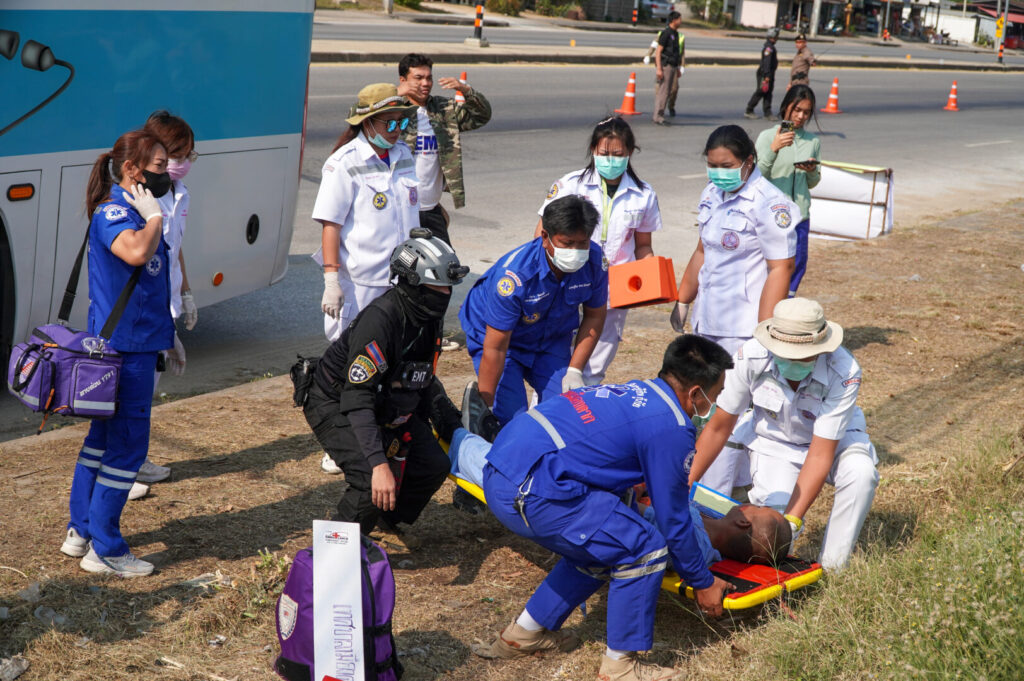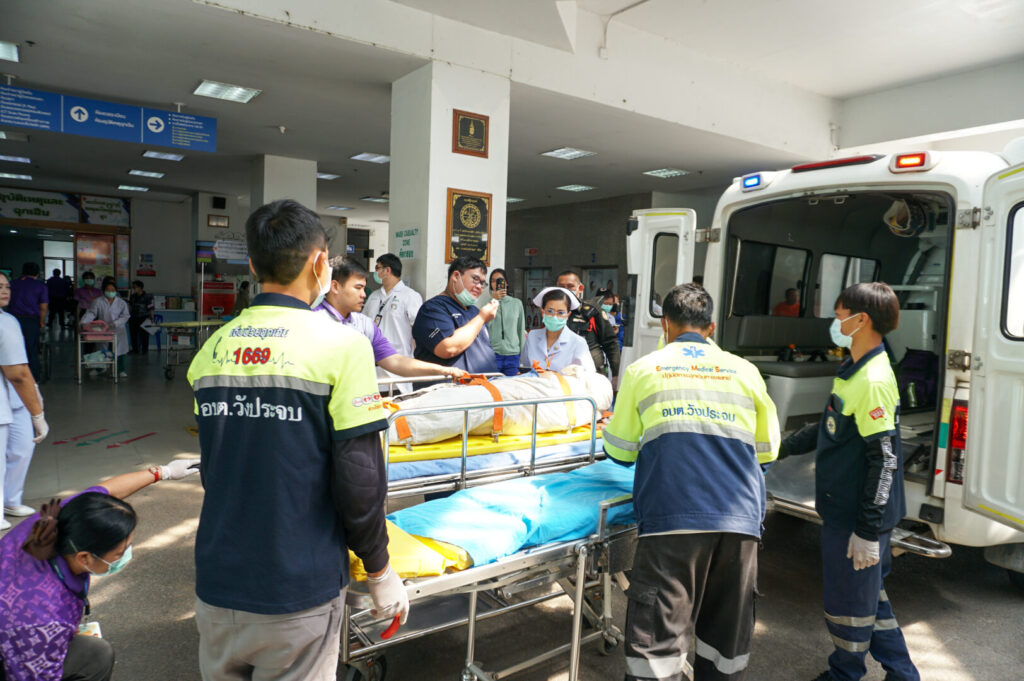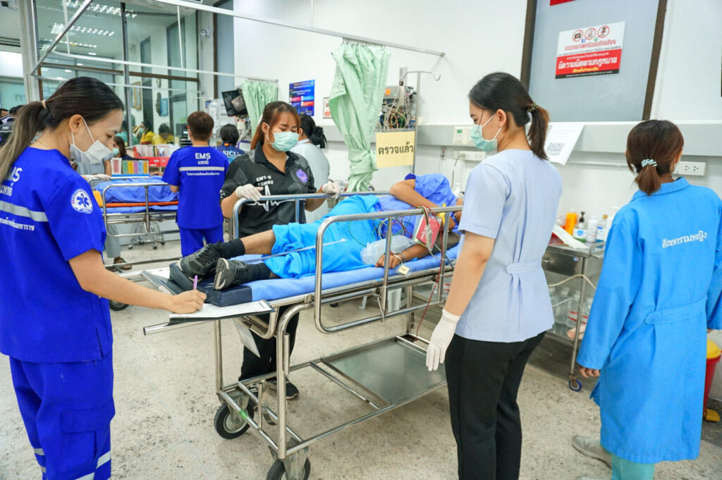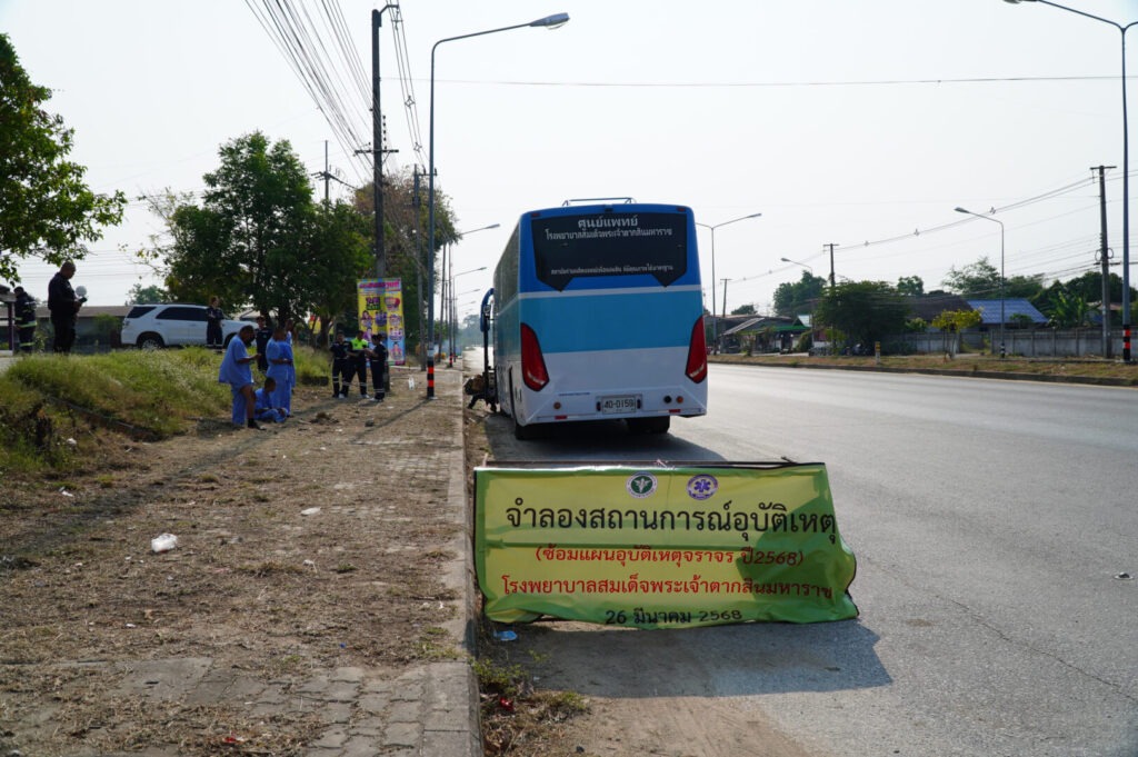 วันที่ 24-25 มีนาคม 2568 นพ.บรรเจิด นนทสูติ ผู้อำนวยการโรงพยาบาลสมเด็จพระเจ้าตากสินมหาราช มอบหมายให้กลุ่มงานเวชศาสตร์ฉุกเฉิน โรงพยาบาลสมเด็จพระเจ้าตากสินมหาราช จัดโครงการพัฒนาระบบบริการการแพทย์ฉุกเฉิน ปี 2568 การพัฒนาทักษะการช่วยเหลือผู้ป่วยและการจัดการ ณ จุดเกิดเหตุของบุคลากรเครือข่ายการแพทย์ฉุกเฉิน นำโดยนพ.วันชัย พินิชกชกร รองผู้อำนวยการฝ่ายการแพทย์ พร้อมด้วยพว.กลอยใจ มีเครือรอด รักษาการรองผู้อำนวยการฝ่ายการพยาบาล โดยมีวัตถุประสงค์เพื่อให้แพทย์ พยาบาล เจ้าหน้าที่โรงพยาบาลทุกระดับ และเครือข่ายในระบบบริการการแพทย์ฉุกเฉิน ได้มีความรู้ความเข้าใจในบทบาทการช่วยเหลือ และบริหารจัดการในสถานการณ์อุบัติเหตุกลุ่มชน พร้อมทั้งปฏิบัติหน้าที่ร่วมกับทีมของโรงพยาบาลได้อย่างมีประสิทธิภาพ และมีความรู้มีทักษะในการบริหารจัดการในสถานการณ์สาธารณภัยและอุบัติเหตุกลุ่มชน สามารถรักษาผู้ประสบเหตุจำนวนมากอย่างมีประสิทธิภาพ โดยการฝึกซ้อมแผนในครั้งนี้ได้รับความร่วมมือจากหน่วยงานภายนอก ได้แก่ เทศบาลเมืองตาก มูลนิธิตากร่วมใจสงเคราะห์ กู้ชีพอบต.แม่ท้อ กู้ชีพอบต.โป่งแดง กู้ชีพอบต.วังประจบ โรงพยาบาลค่ายวชิรปราการ โรงพยาบาลวังเจ้า โรงพยาบาลบ้านตาก โรงพยาบาลสามเงา และสถานีตำรวจภูธรจังหวัดตาก โรงพยาบาลสมเด็จพระเจ้าตากสินมหาราช ขอขอบพระคุณอย่างสูง มา ณ โอกาสนี้