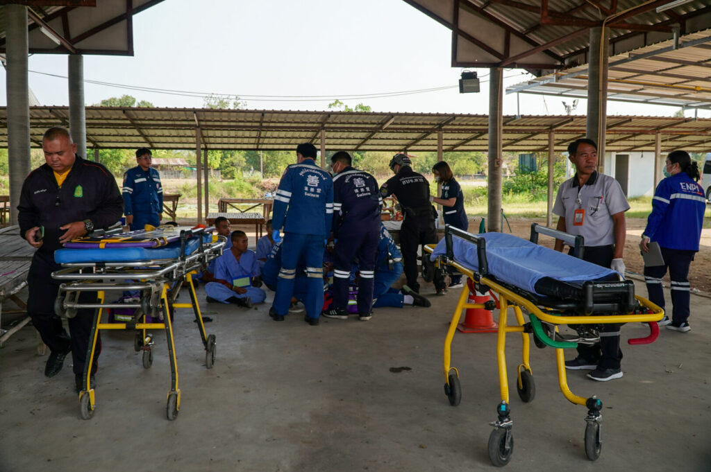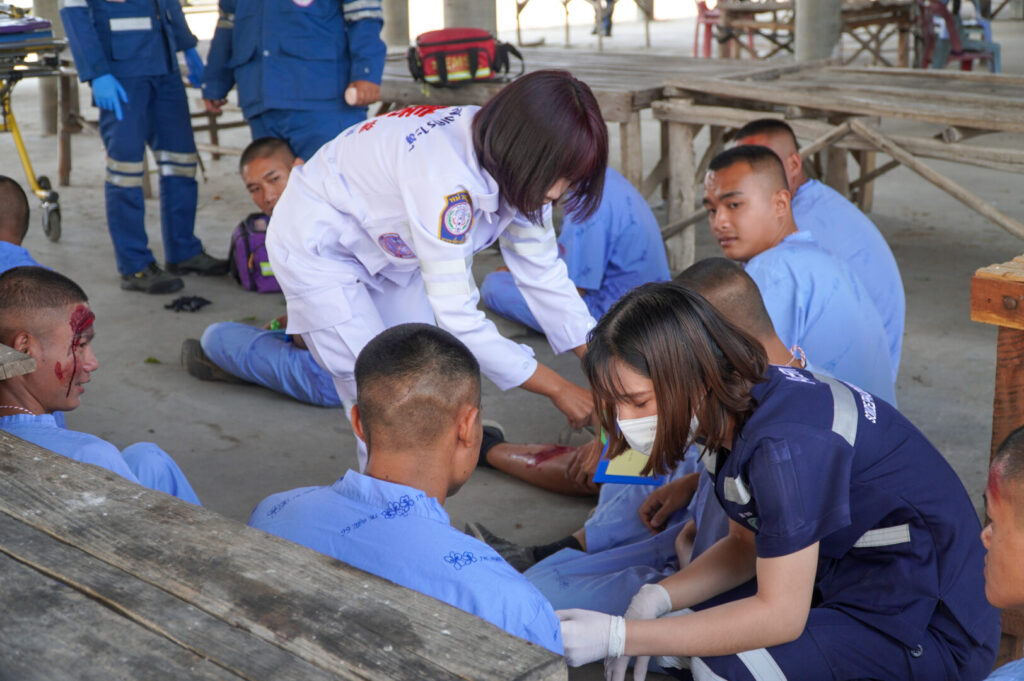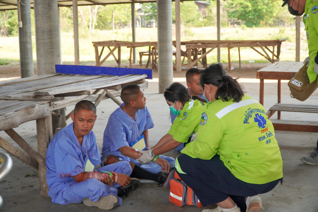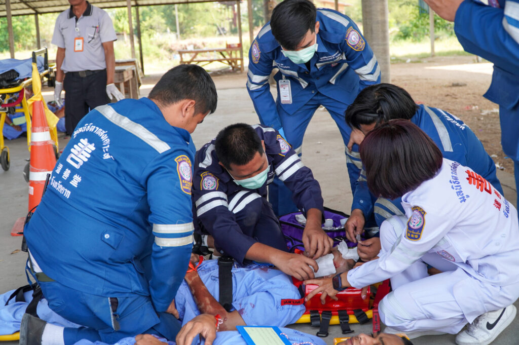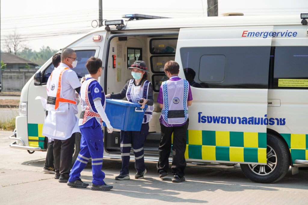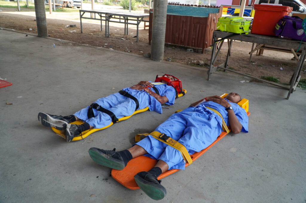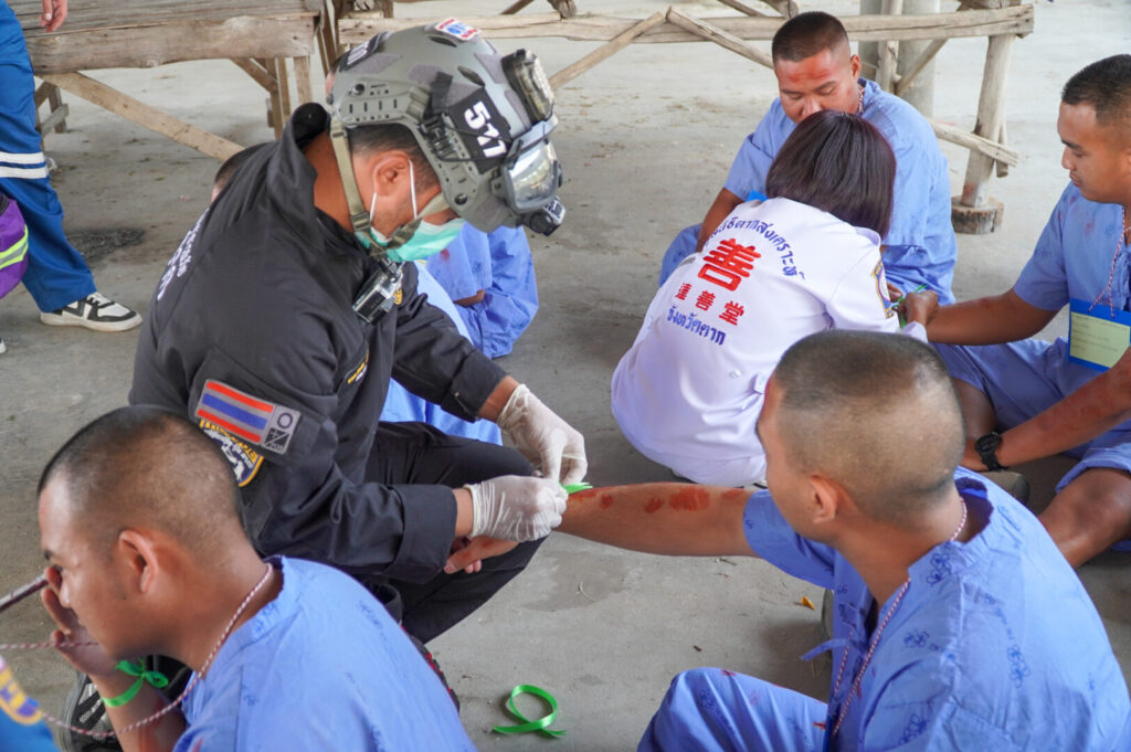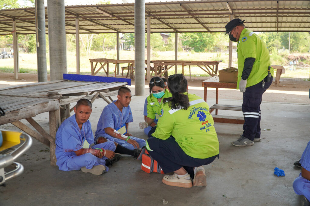 วันที่ 24-25 มีนาคม 2568 นพ.บรรเจิด นนทสูติ ผู้อำนวยการโรงพยาบาลสมเด็จพระเจ้าตากสินมหาราช มอบหมายให้กลุ่มงานเวชศาสตร์ฉุกเฉิน โรงพยาบาลสมเด็จพระเจ้าตากสินมหาราช จัดโครงการพัฒนาระบบบริการการแพทย์ฉุกเฉิน ปี 2568 การพัฒนาทักษะการช่วยเหลือผู้ป่วยและการจัดการ ณ จุดเกิดเหตุของบุคลากรเครือข่ายการแพทย์ฉุกเฉิน นำโดยนพ.วันชัย พินิชกชกร รองผู้อำนวยการฝ่ายการแพทย์ พร้อมด้วยพว.กลอยใจ มีเครือรอด รักษาการรองผู้อำนวยการฝ่ายการพยาบาล โดยมีวัตถุประสงค์เพื่อให้แพทย์ พยาบาล เจ้าหน้าที่โรงพยาบาลทุกระดับ และเครือข่ายในระบบบริการการแพทย์ฉุกเฉิน ได้มีความรู้ความเข้าใจในบทบาทการช่วยเหลือ และบริหารจัดการในสถานการณ์อุบัติเหตุกลุ่มชน พร้อมทั้งปฏิบัติหน้าที่ร่วมกับทีมของโรงพยาบาลได้อย่างมีประสิทธิภาพ และมีความรู้มีทักษะในการบริหารจัดการในสถานการณ์สาธารณภัยและอุบัติเหตุกลุ่มชน สามารถรักษาผู้ประสบเหตุจำนวนมากอย่างมีประสิทธิภาพ โดยการฝึกซ้อมแผนในครั้งนี้ได้รับความร่วมมือจากหน่วยงานภายนอก ได้แก่ เทศบาลเมืองตาก มูลนิธิตากร่วมใจสงเคราะห์ กู้ชีพอบต.แม่ท้อ กู้ชีพอบต.โป่งแดง กู้ชีพอบต.วังประจบ โรงพยาบาลค่ายวชิรปราการ โรงพยาบาลวังเจ้า โรงพยาบาลบ้านตาก โรงพยาบาลสามเงา และสถานีตำรวจภูธรจังหวัดตาก โรงพยาบาลสมเด็จพระเจ้าตากสินมหาราช ขอขอบพระคุณอย่างสูง มา ณ โอกาสนี้
