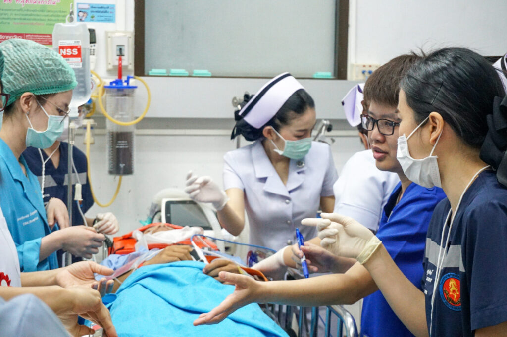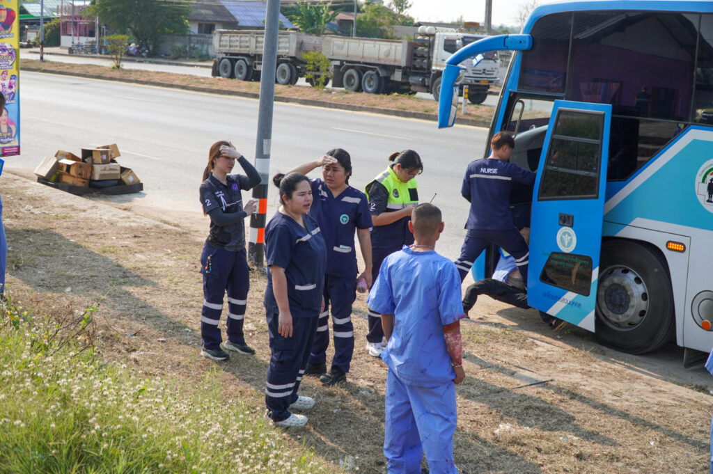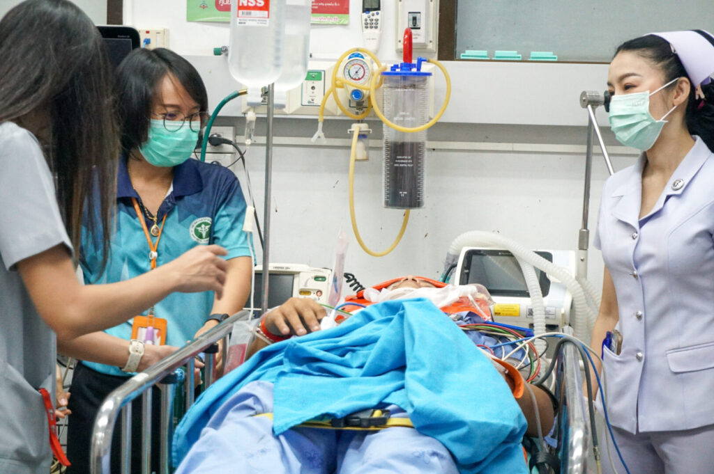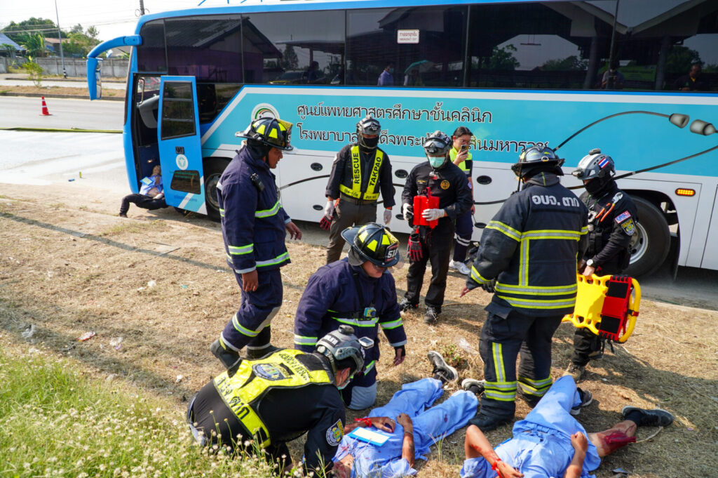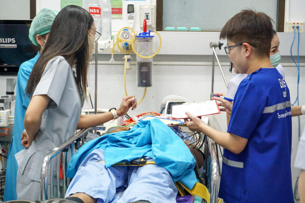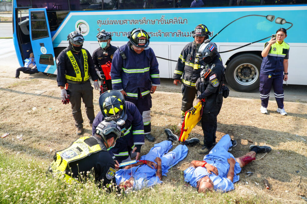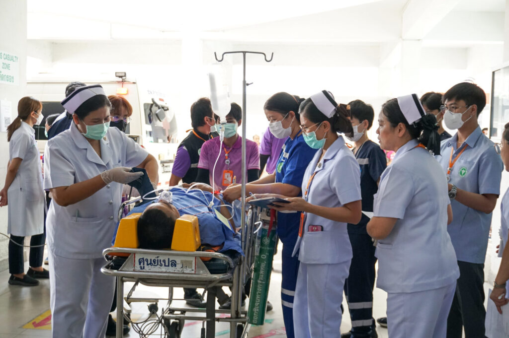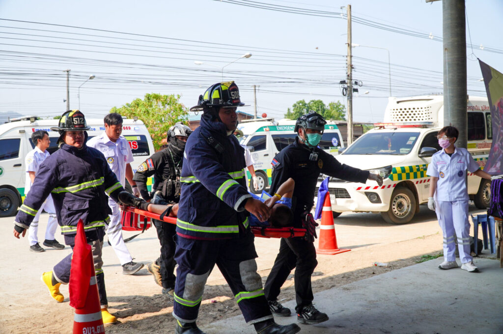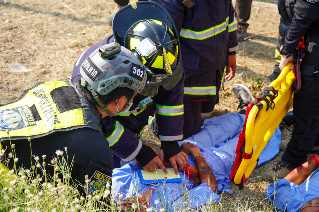 วันที่ 24-25 มีนาคม 2568 นพ.บรรเจิด นนทสูติ ผู้อำนวยการโรงพยาบาลสมเด็จพระเจ้าตากสินมหาราช มอบหมายให้กลุ่มงานเวชศาสตร์ฉุกเฉิน โรงพยาบาลสมเด็จพระเจ้าตากสินมหาราช จัดโครงการพัฒนาระบบบริการการแพทย์ฉุกเฉิน ปี 2568 การพัฒนาทักษะการช่วยเหลือผู้ป่วยและการจัดการ ณ จุดเกิดเหตุของบุคลากรเครือข่ายการแพทย์ฉุกเฉิน นำโดยนพ.วันชัย พินิชกชกร รองผู้อำนวยการฝ่ายการแพทย์ พร้อมด้วยพว.กลอยใจ มีเครือรอด รักษาการรองผู้อำนวยการฝ่ายการพยาบาล โดยมีวัตถุประสงค์เพื่อให้แพทย์ พยาบาล เจ้าหน้าที่โรงพยาบาลทุกระดับ และเครือข่ายในระบบบริการการแพทย์ฉุกเฉิน ได้มีความรู้ความเข้าใจในบทบาทการช่วยเหลือ และบริหารจัดการในสถานการณ์อุบัติเหตุกลุ่มชน พร้อมทั้งปฏิบัติหน้าที่ร่วมกับทีมของโรงพยาบาลได้อย่างมีประสิทธิภาพ และมีความรู้มีทักษะในการบริหารจัดการในสถานการณ์สาธารณภัยและอุบัติเหตุกลุ่มชน สามารถรักษาผู้ประสบเหตุจำนวนมากอย่างมีประสิทธิภาพ โดยการฝึกซ้อมแผนในครั้งนี้ได้รับความร่วมมือจากหน่วยงานภายนอก ได้แก่ เทศบาลเมืองตาก มูลนิธิตากร่วมใจสงเคราะห์ กู้ชีพอบต.แม่ท้อ กู้ชีพอบต.โป่งแดง กู้ชีพอบต.วังประจบ โรงพยาบาลค่ายวชิรปราการ โรงพยาบาลวังเจ้า โรงพยาบาลบ้านตาก โรงพยาบาลสามเงา และสถานีตำรวจภูธรจังหวัดตาก โรงพยาบาลสมเด็จพระเจ้าตากสินมหาราช ขอขอบพระคุณอย่างสูง มา ณ โอกาสนี้