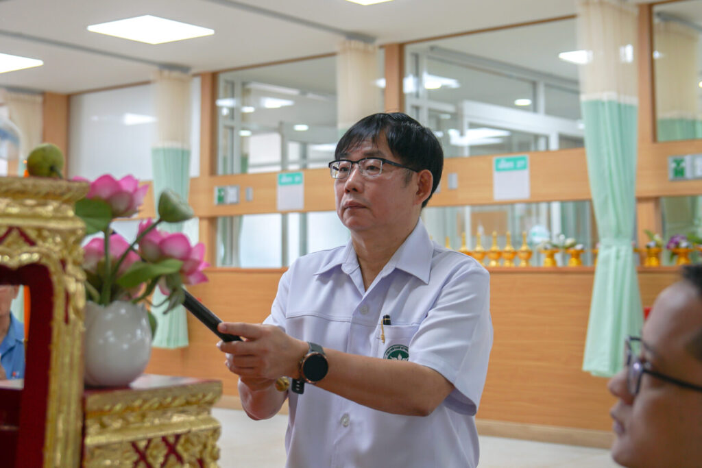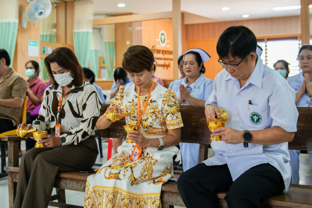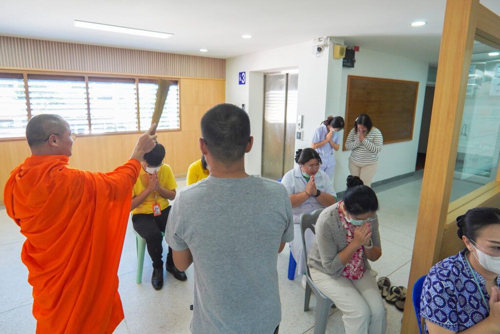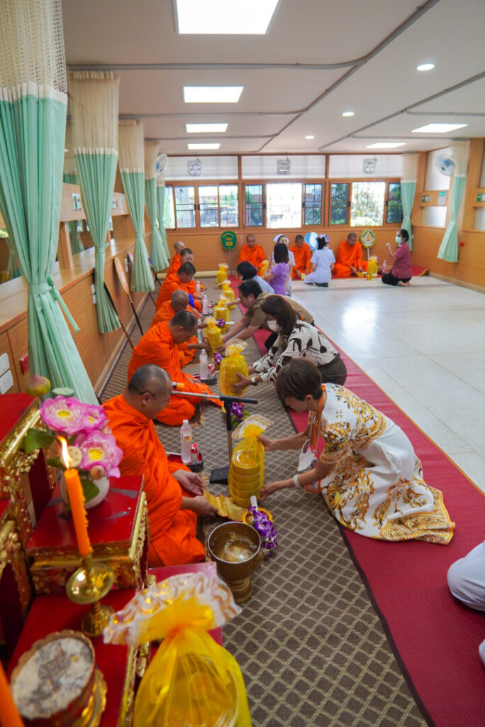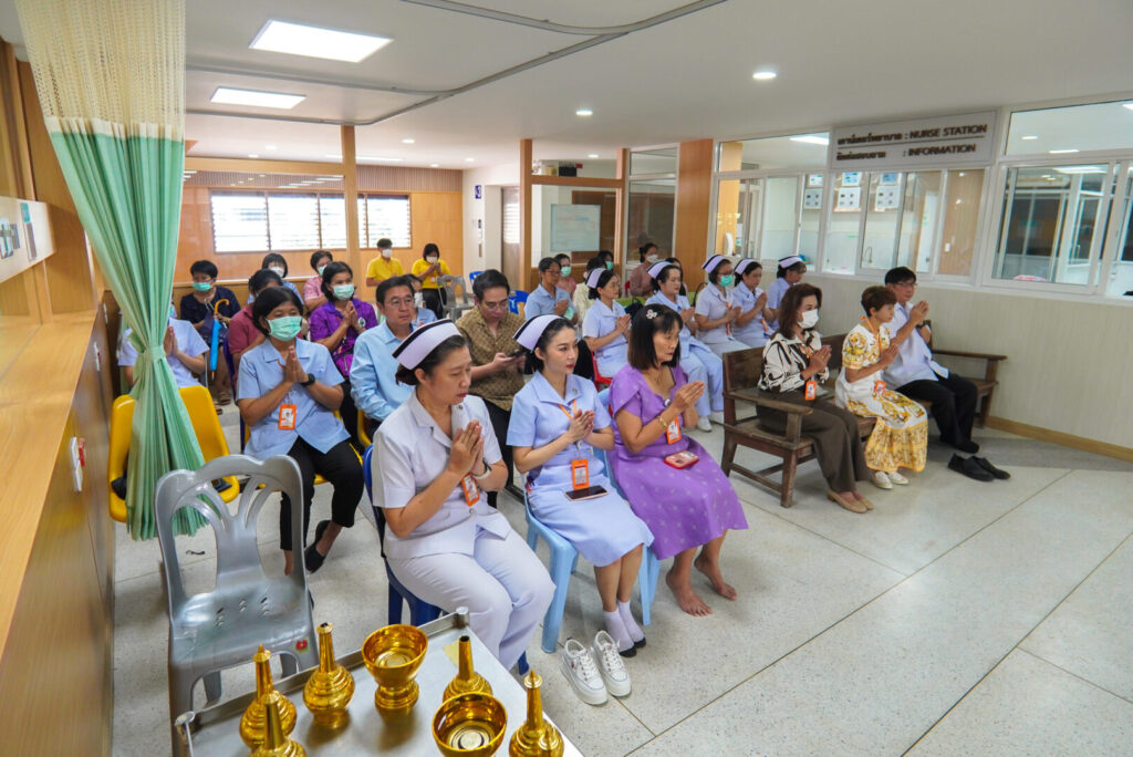 วันที่ 31 ตุลาคม 2567 นพ.วันชัย พินิชกชกร รองผู้อำนวยการฝ่ายการแพทย์ นพ.ชญานิน ศรีสุข หัวหน้ากลุ่มงานอายุรกรรม พร้อมด้วยคณะผู้บริหาร แพทย์ พยาบาล และเจ้าหน้าที่ ร่วมทำบุญหอผู้ป่วยอายุรกรรมชาย อาราธนานิมนต์ พระครูศรีคีรีรัฐ ผู้ช่วยเจ้าอาวาสวัดมณีบรรพตวรวิหาร และคณะสงฆ์ 9 รูป เจริญพระพุทธมนต์ และถวายภัตตาหารเพล พรมน้ำพระพุทธมนต์ ณ ชั้น 3 อาคารรวมน้ำใจ โรงพยาบาลสมเด็จพระเจ้าตากสินมหาราช จังหวัดตาก