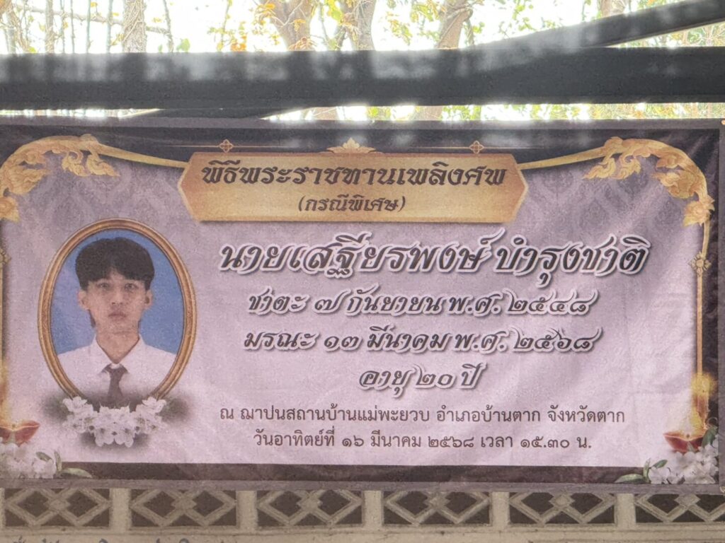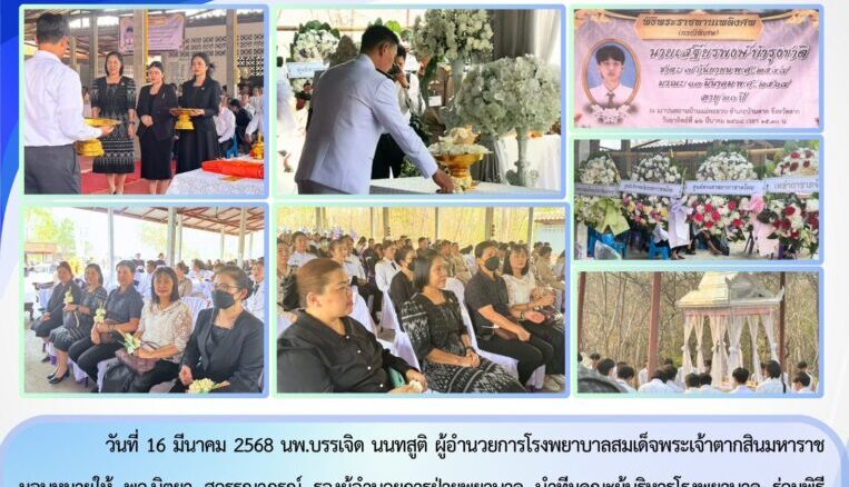 วันที่ 16 มีนาคม 2568 นพ.บรรเจิด นนทสูติ ผู้อำนวยการโรงพยาบาลสมเด็จพระเจ้าตากสินมหาราช มอบหมายให้ พว.นิตยา สุวรรณาภรณ์ รองผู้อำนวยการฝ่ายพยาบาล นำทีมคณะผู้บริหารโรงพยาบาล ร่วมพิธีพระราชทานเพลิงศพ (เป็นกรณีพิเศษ) คุณเสฐียรพงษ์ บำรุงชาติ ผู้บริจาค ไต 2 ข้าง ดวงตา 2 ข้าง และม้าม ให้กับศูนย์รับบริจาคอวัยวะและดวงตาสภากาชาดไทย โดยนายอัครพันธุ์ พูลศิริ นายอำเภอบ้านตาก เป็นประธานในพิธีพระราชทานเพลิงศพ (เป็นกรณีพิเศษ) ณ สุสานป่าช้า บ้านแม่พะยวบ อำเภอบ้านตาก จังหวัดตาก