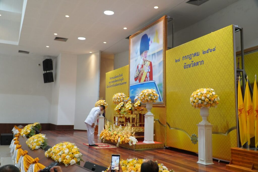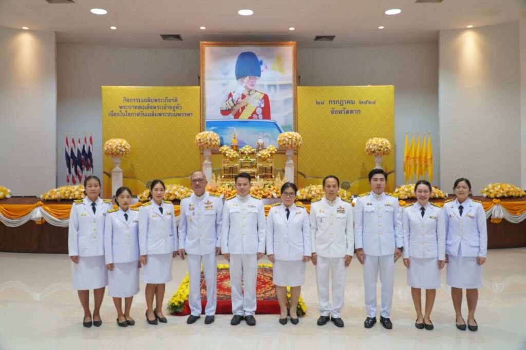 วันที่ 28 กรกฎาคม 2568 นพ.บรรเจิด นนทสูติ ผู้อำนวยการโรงพยาบาลสมเด็จพระเจ้าตากสินมหาราช พร้อมด้วยคณะผู้บริหาร และเจ้าหน้าที่โรงพยาบาล เข้าร่วมพิธีเจริญพระพุทธมนต์ทำบุญตักบาตร พิธีทางศาสนามหามงคลถวายพระราชกุศล และพิธีถวายสัตย์ปฏิญาณการเป็นข้าราชการที่ดีและพลังของแผ่นดิน ประจำปี พ.ศ.2568 เฉลิมพระเกียรติพระบาทสมเด็จพระเจ้าอยู่หัว เนื่องในโอกาสวันเฉลิมพระชนมพรรษา 28 กรกฎาคม 2568 กิจกรรมดังกล่าวจัดขึ้นอย่างสมพระเกียรติ โดยมีพระประสิทธิศีลคุณ เจ้าคณะจังหวัดตาก เป็นประธานฝ่ายสงฆ์ และมีนายชูชีพ พงษ์ไชย ผู้ว่าราชการจังหวัดตาก เป็นประธานในพิธี พร้อมด้วยหัวหน้าส่วนราชการ ข้าราชการ หน่วยงานภาครัฐ ภาคเอกชน ตลอดจนพุทธศาสนิกชนเข้าร่วมในพิธีโดยพร้อมเพรียงกัน เพื่อเป็นการเทิดทูนสถาบันชาติ ศาสนา พระมหากษัตริย์ และเพื่อสร้างขวัญกำลังใจให้พุทธศาสนิกชนได้แสดงออกถึงความจงรักภักดี สืบทอดประเพณี และวัฒนธรรมไว้เป็นมรดกที่สำคัญของชาติสืบไป ณ หอประชุมศาลากลาง อำเภอเมืองตาก จังหวัดตาก