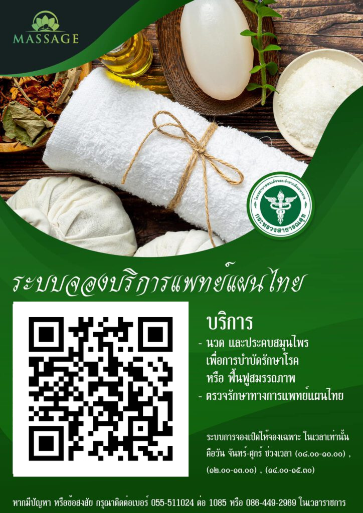 ระบบจองบริการแพทย์แผนไทย จองเองได้ง่าย กดผ่าน link นี้ https://home.tsm.go.th/appointment/thai_massage.php หรือสแกน QR code ตามภาพ🔸️บริการนวด และประคบสมุนไพร เพื่อการบำบัดรักษาโรค หรือ ฟื้นฟูสมรรถภาพ🔸️บริการตรวจรักษาทางการแพทย์แผนไทย📌เงื่อนไขการจอง 1.สามารถจองล่วงหน้าได้ไม่เกิน 1 เดือน2.เมื่อต้องการยกเลิกนัดกรุณาทำการ ยกเลิกนัดในระบบ หรือ ติดต่อยกเลิกนัดกับเจ้าหน้าที่ ล่วงหน้าก่อน 1 วัน3.การจองประเภท นวด และประคบสมุนไพร ระบบการจองเปิดให้จองเฉพาะ ในเวลาเท่านั้นคือวัน จันทร์-ศุกร์ ช่วงเวลา [08.00-10.00] ,[12.00-13.00] , [14.00-15.30]4.การจองประเภท นวด และประคบสมุนไพร ท่านจะสามารถ ระบุชื่อหมอนวด ได้เฉพาะที่ปฏิบัติงานตรงกับช่วงเวลาที่ท่านเลือก หรือ ยังมีคิวว่างอยู่ เท่านั้น5.การจองประเภท ตรวจรักษาทางการแพทย์แผนไทย ไม่ต้องระบุชื่อผู้รักษา สามารถจองได้ไม่จำกัดคิว6.หากมีปัญหา หรือข้อสงสัย กรุณาติดต่อเบอร์ 055-511024 ต่อ 1085 หรือ 086-449-2969 ในเวลาราชการ#นวด#แพทย์แผนไทย#โรงพยาบาลสมเด็จพระเจ้าตากสินมหาราช#ตสม ตั้งใจ สร้างสรรค์ มุ่งมั่นพัฒนา