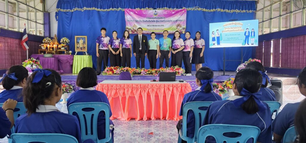 วันที่ 27 สิงหาคม 2568 นายบรรเจิด นนทสูติ ผู้อำนวยการโรงพยาบาลสมเด็จพระเจ้าตากสินมหาราช มอบหมายให้ศูนย์พึ่งได้คลินิกเพื่อนใจวัยรุ่น โรงพยาบาลสมเด็จพระเจ้าตากสินมหาราช นำโดย พว.เดือนฉาย อินทร์อยู่ พยาบาลวิชาชีพชำนาญการพิเศษ และนายบุญมี ทับสุริ นักสังคมสงเคราะห์ชำนาญการ เข้าร่วมให้ความรู้กับนักเรียน ในโครงการ “ รู้เท่าทันป้องกันภัยวัยใสสู่อนาคตที่ปลอดภัยและสร้างสรรค์ ” เพื่อให้ความรู้แก่นักเรียนเรื่องสถานการณ์อนามัยเจริญพันธุ์ การป้องกันการตั้งครรภ์ในวัยรุ่น เพื่อลดความรุนแรงเสริมสร้างความปลอดภัยในสถานศึกษา ครอบครัว และชุมชน ณ หอประชุมโรงเรียนน้ำดิบพิทยาคม อำเภอเมือง จังหวัดตาก
