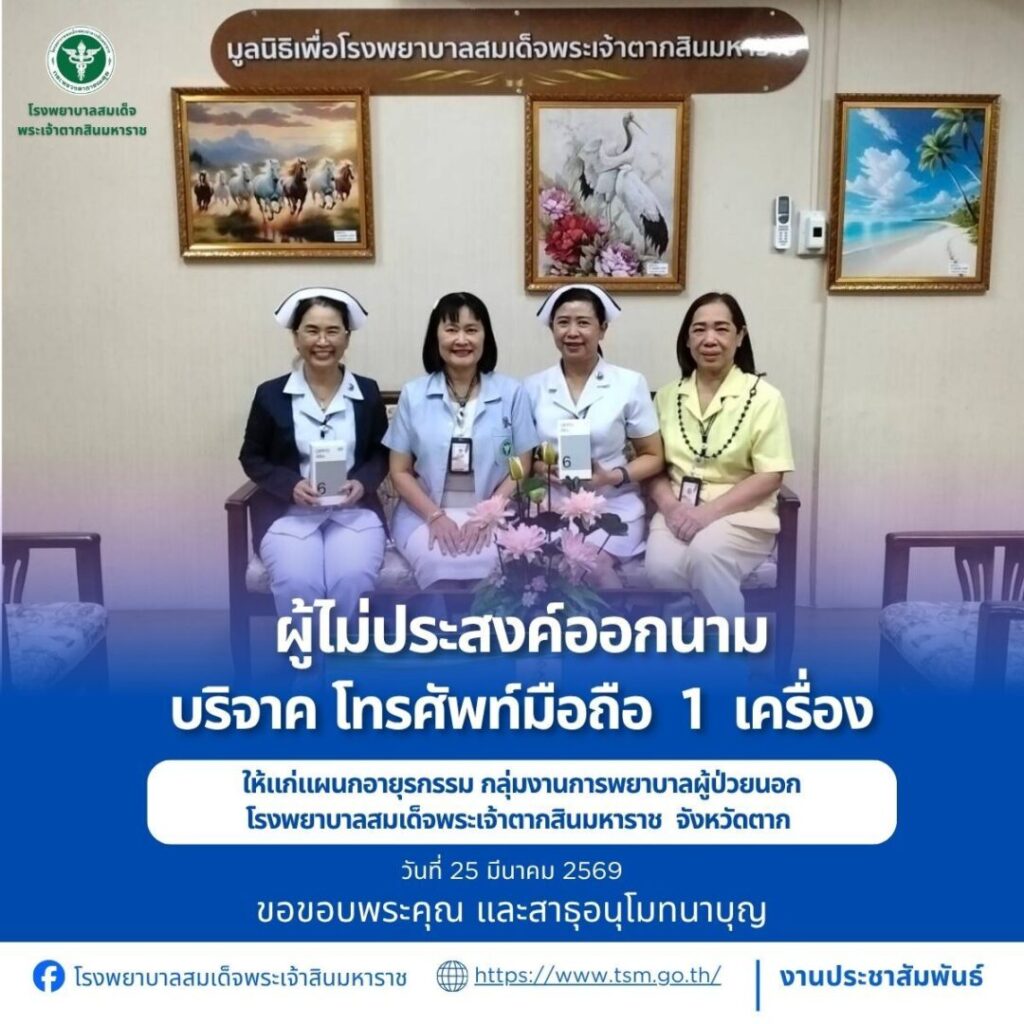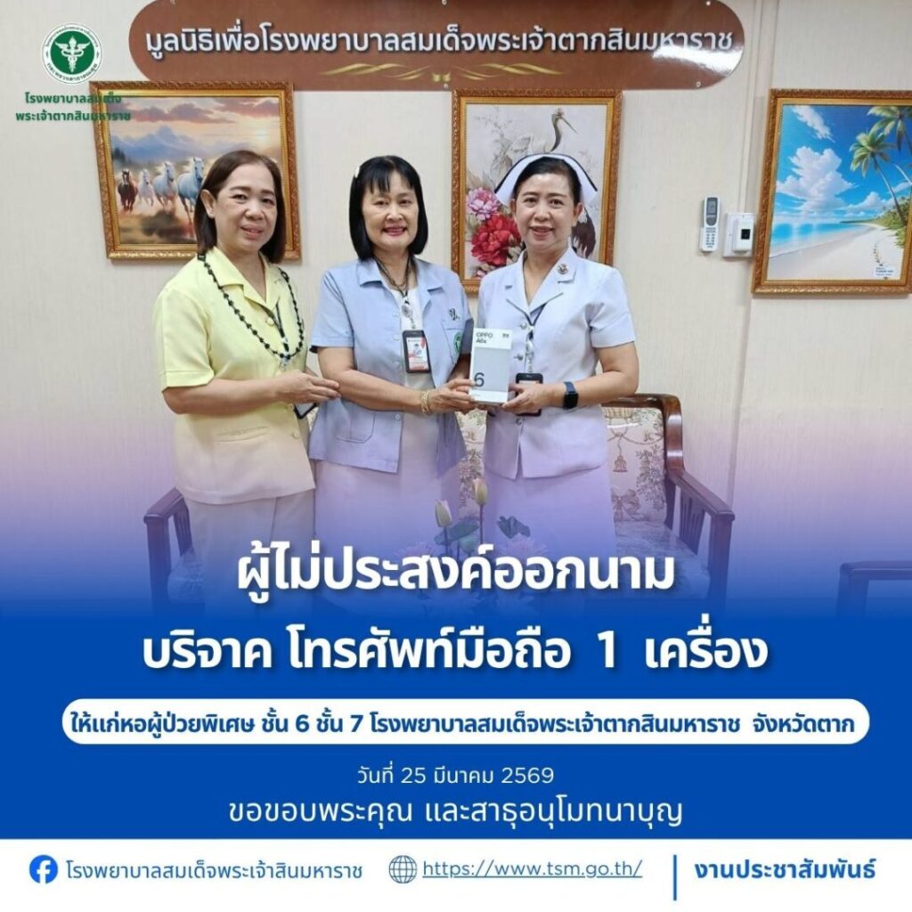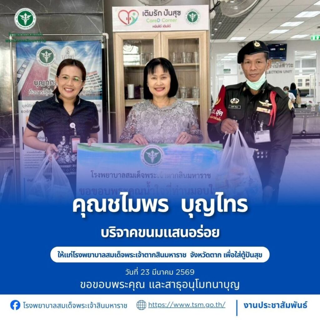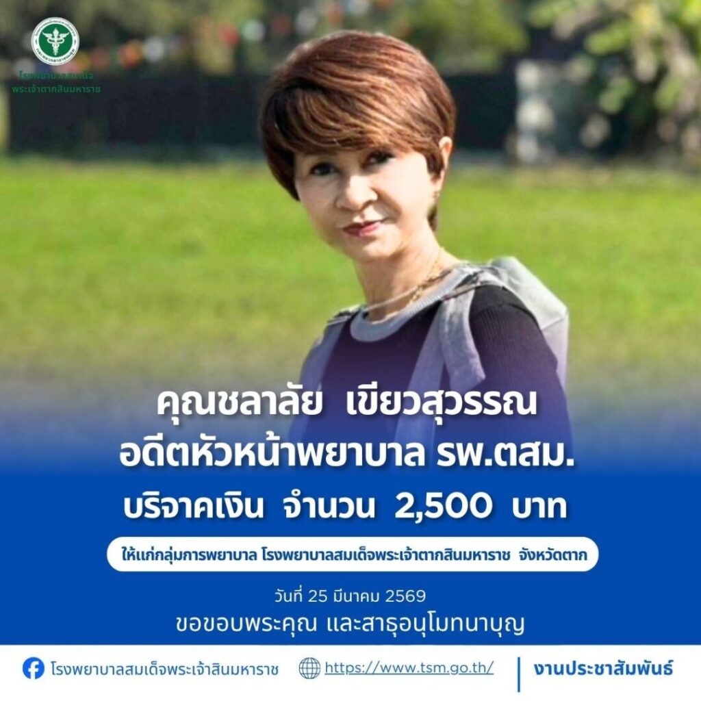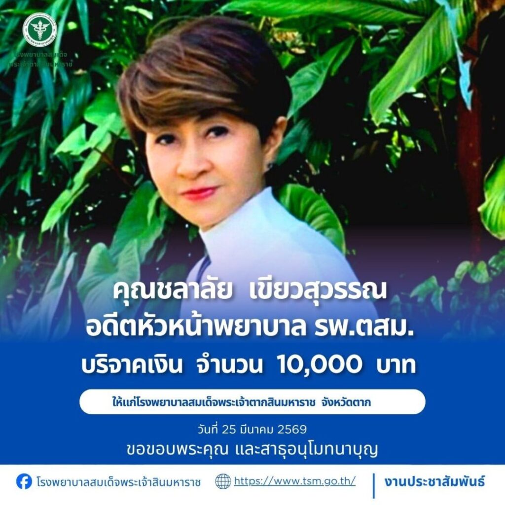 โรงพยาบาลสมเด็จพระเจ้าตากสินมหาราช ขอขอบพระคุณผู้บริจาคประจำวันที่ 22-31 มีนาคม 2569