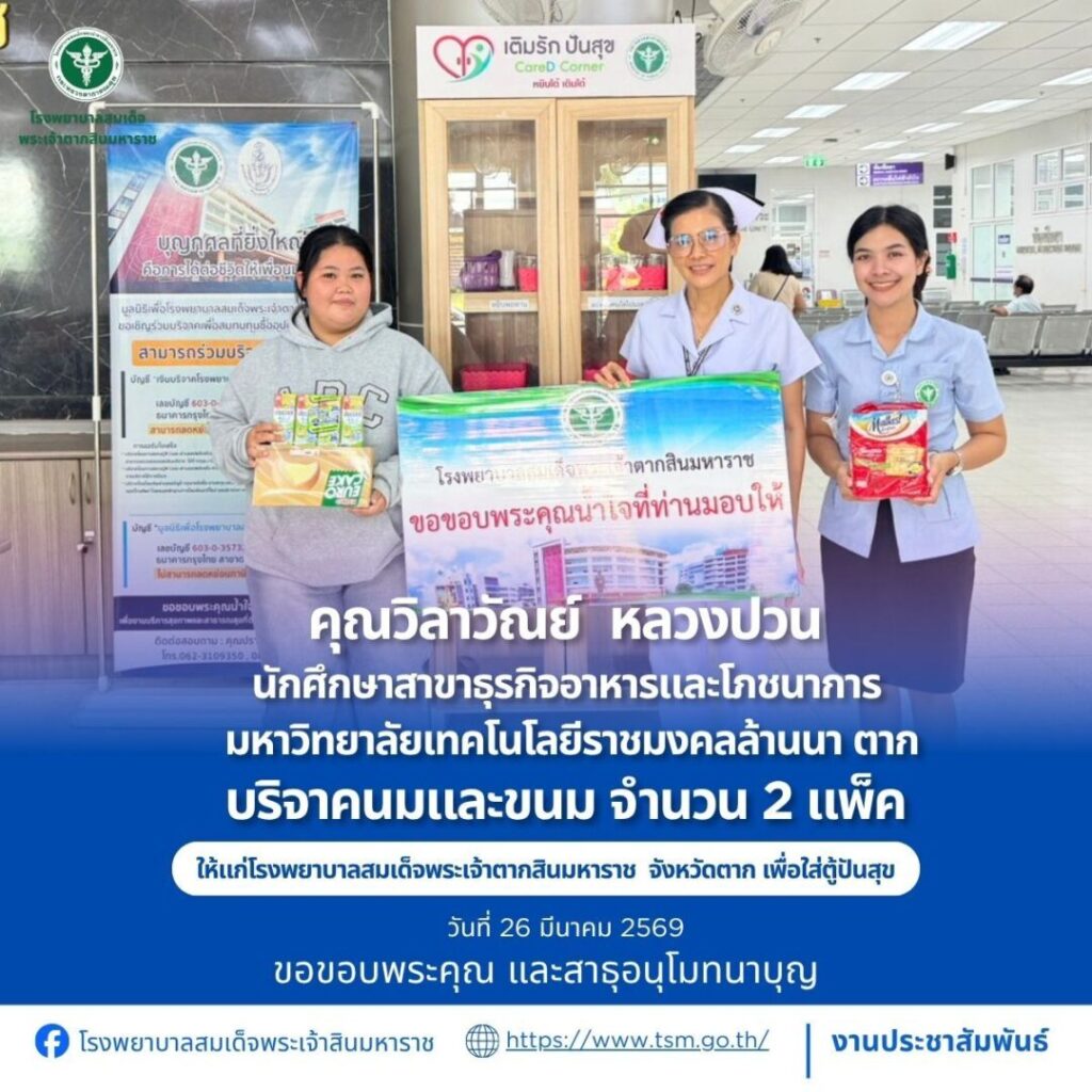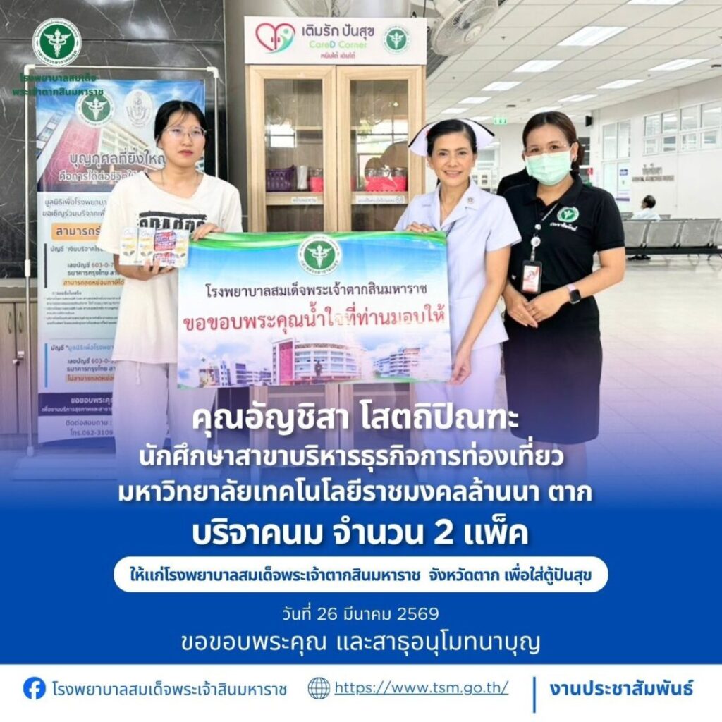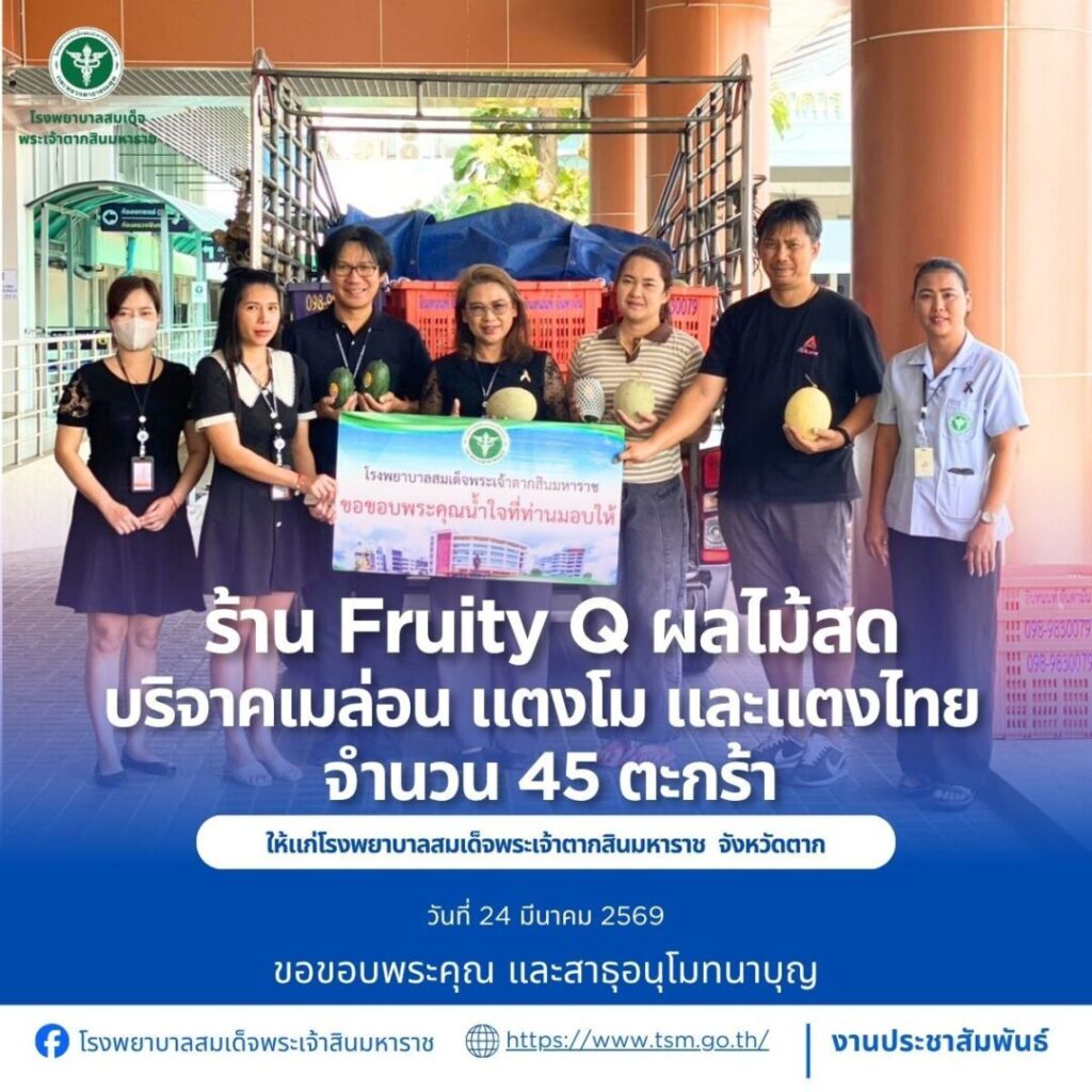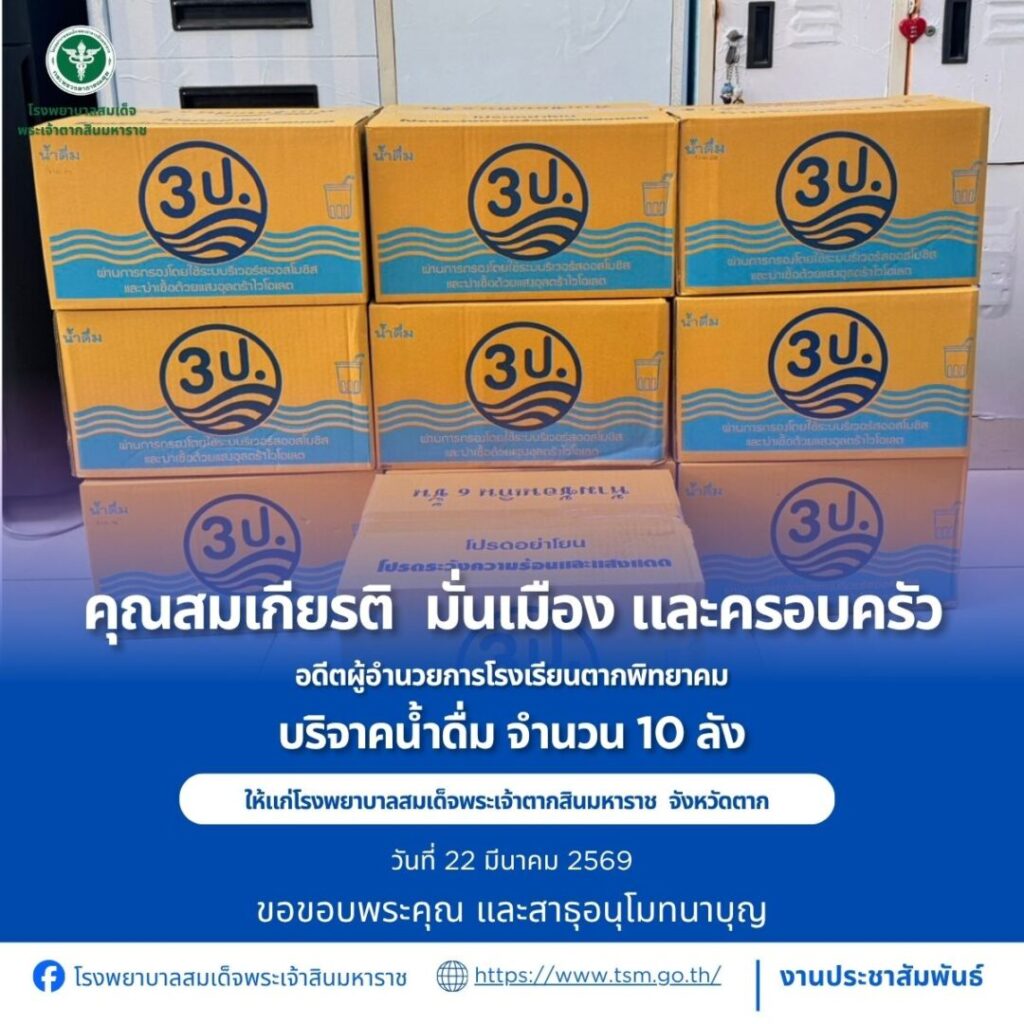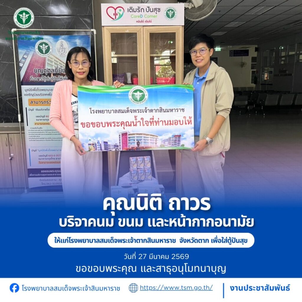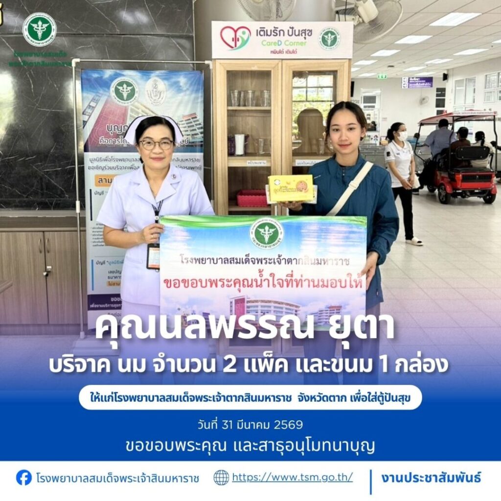 โรงพยาบาลสมเด็จพระเจ้าตากสินมหาราช ขอขอบพระคุณผู้บริจาคประจำวันที่ 22-31 มีนาคม 2569