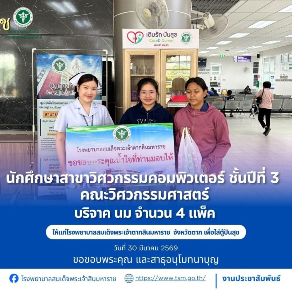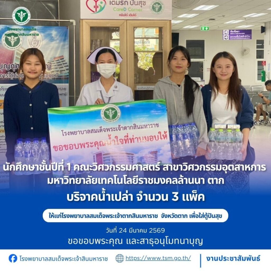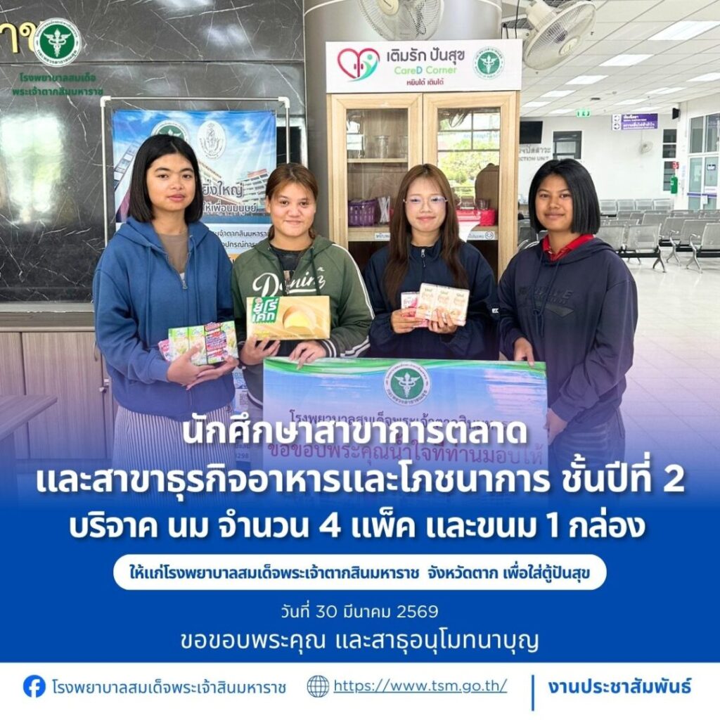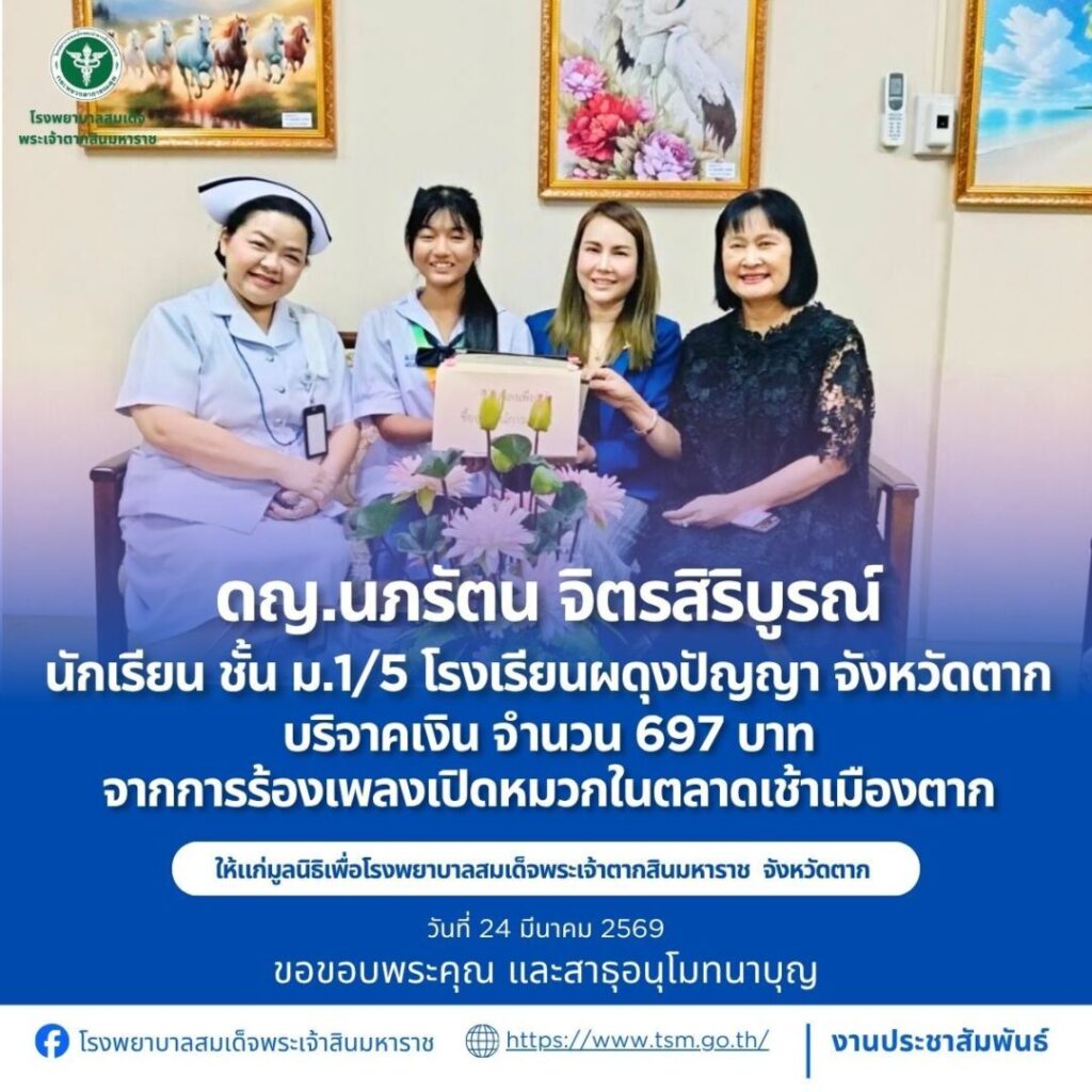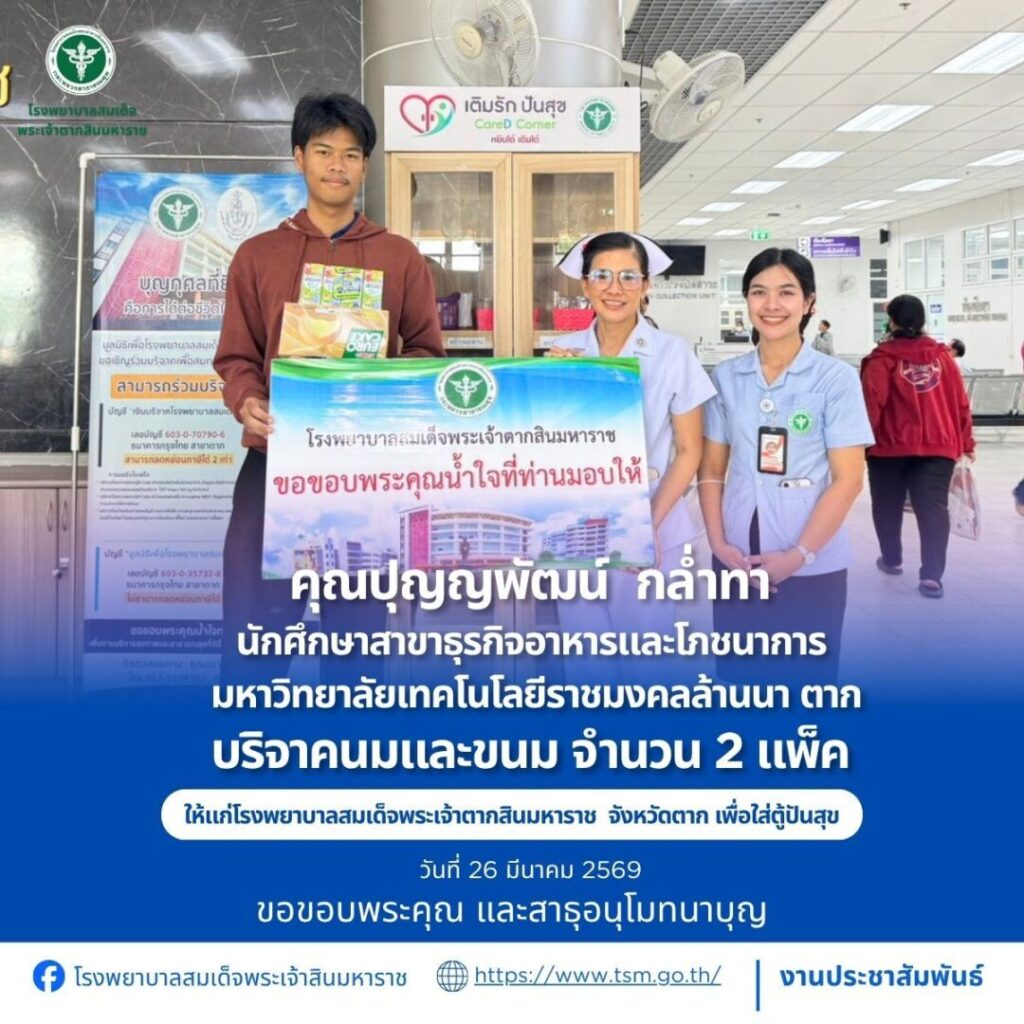 โรงพยาบาลสมเด็จพระเจ้าตากสินมหาราช ขอขอบพระคุณผู้บริจาคประจำวันที่ 22-31 มีนาคม 2569