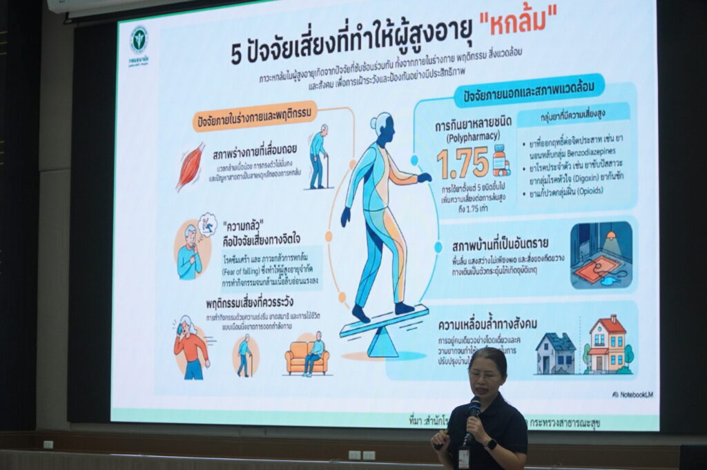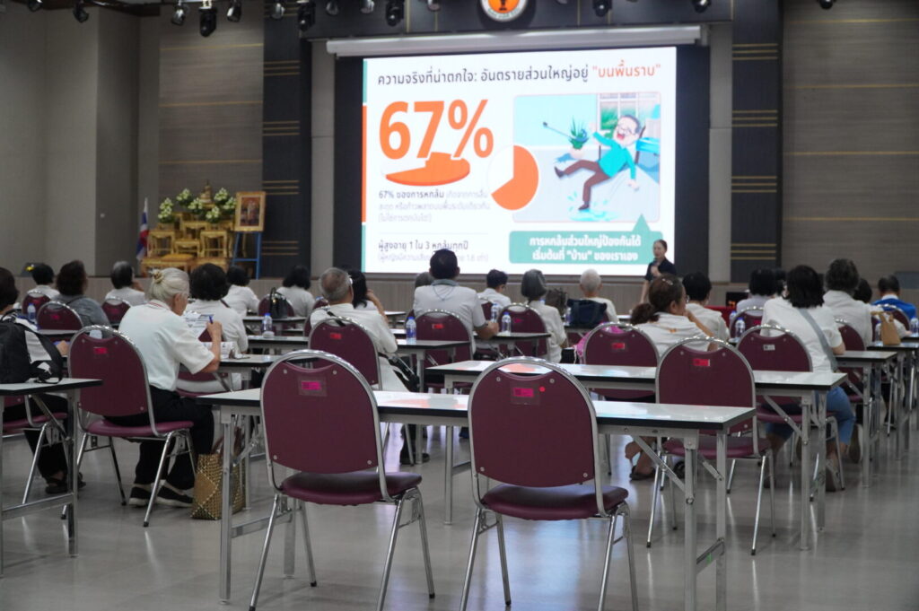 วันศุกร์ ที่ 3 เมษายน 2569 คลินิกสูงอายุเวชกรรมสังคม ได้จัดกิจกรรม ให้แก่ ชมรมสูงอายุ และคณะผู้สูงอายุ จังหวัดตาก โดยมีเนื้อหาให้ความรู้ “ เคล็ดลับป้องกันการหกล้มในผู้สูงอายุ ” กลุ่มเป้าหมายคือชมรมผู้สูงอายุ จำนวน 60 คน ภายในงานมีการ ให้ความรู้เพื่อป้องกันการพลัดตกหกล้มสำหรับผู้สูงอายุ การออกกำลังกาย กายบริหาร กิจกรรมฝึกสมอง ทดสอบความทรงจำ และทดสอบความแข็งแรงของกล้ามเนื้อขา ณ ห้องประชุมตากสินมหาราช ชั้น 6 อาคารผู้ป่วยนอก โรงพยาบาลสมเด็จพระเจ้าตากสินมหาราช