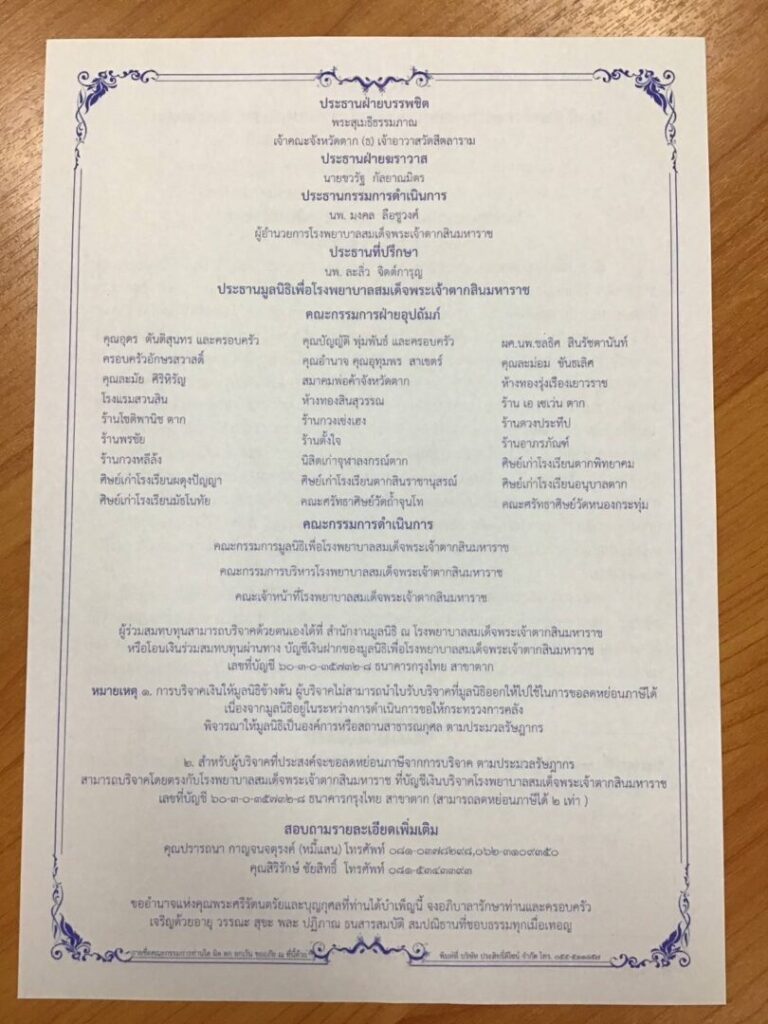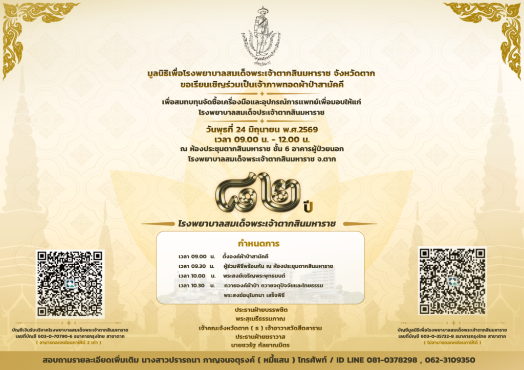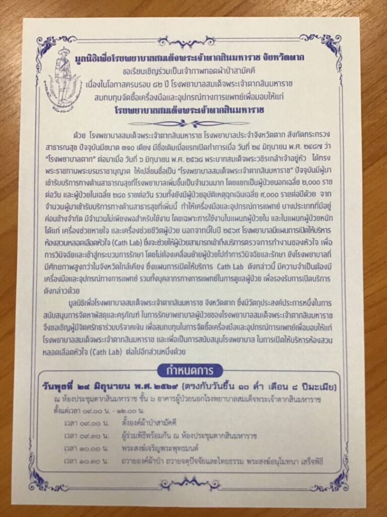 เพื่อมอบให้แก่ โรงพยาบาลสมเด็จพระเจ้าตากสินมหาราช