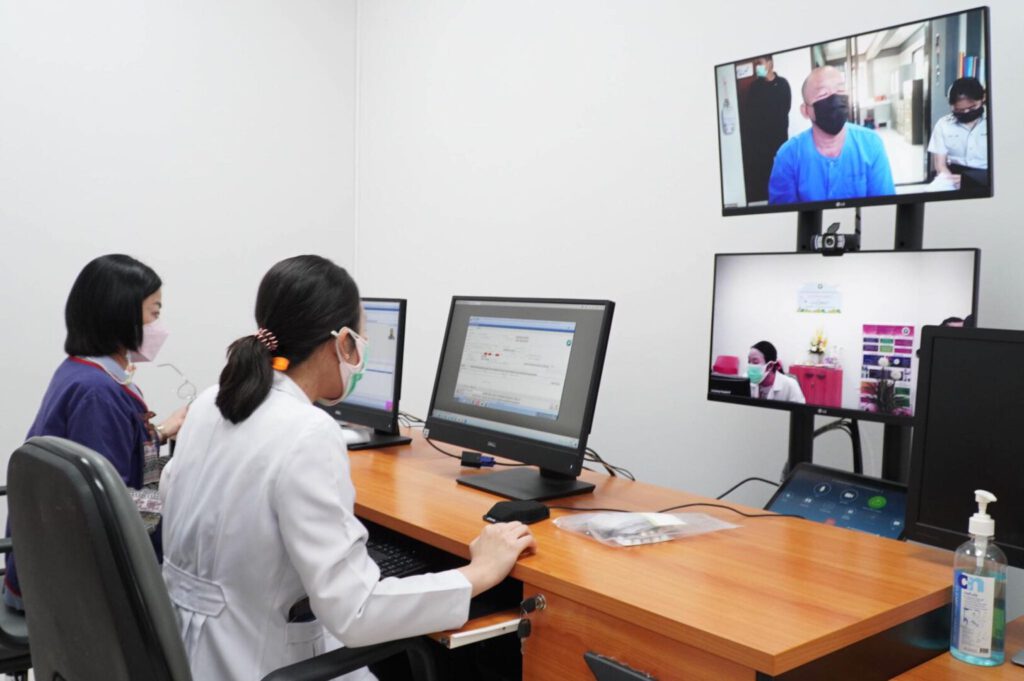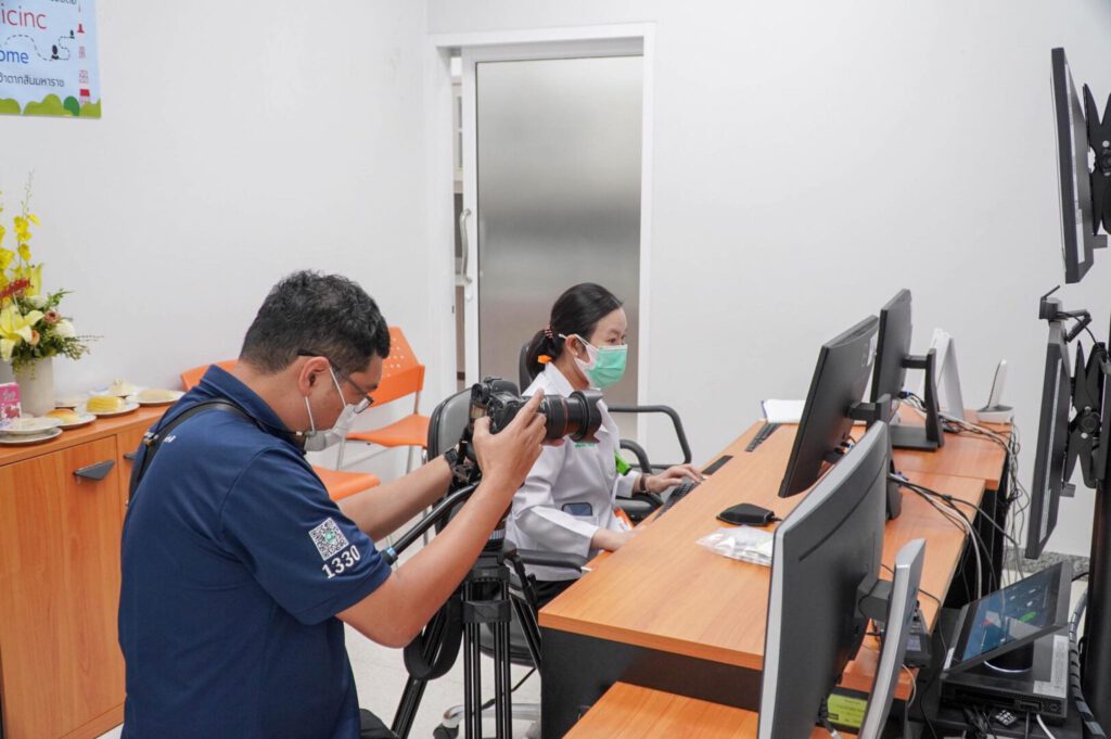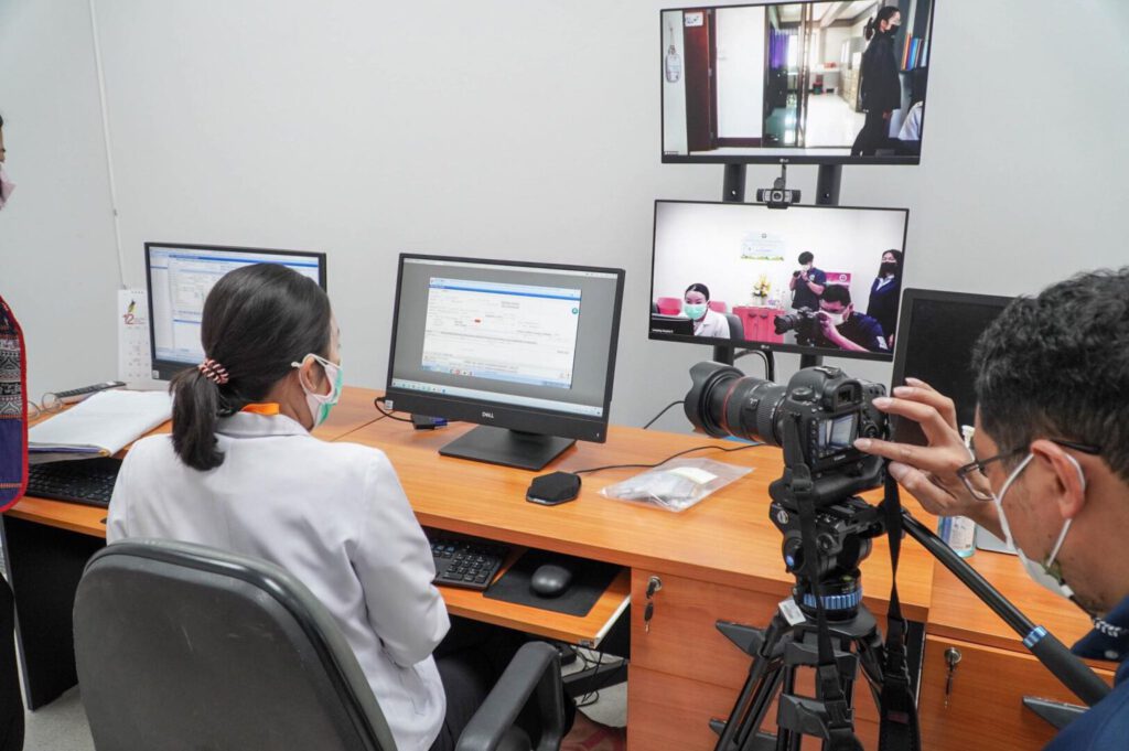 วันที่ 27 ธันวาคม 2565 นพ.บรรเจิด นนทสูติ ผู้อำนวยการโรงพยาบาลสมเด็จพระเจ้าตากสินมหาราช พร้อมด้วย พญ. ลลิต์ภัทร ถิรธันยบูรณ์ แพทย์เวชศาสตร์ครอบครัว พยาบาลกลุ่มภารกิจปฐมภูมิ และเครือข่ายโรงพยาบาลส่งเสริมสุขภาพตำบล นำเสนอและให้สัมภาษณ์ผลงานเด่น ด้านการให้บริการ telehealth/telemedicine ดีเด่น เพื่อจัดทำสื่อวิดิทัศน์ โดยสำนักงานหลักประกันสุขภาพแห่งชาติเขต 2 ( สปสช.) ณ ห้อง telemedicine ชั้น 2 อาคารผู้ป่วยนอก โรงพยาบาลสมเด็จพระเจ้าตากสินมหาราช