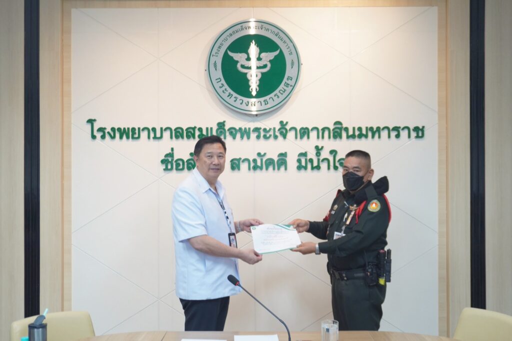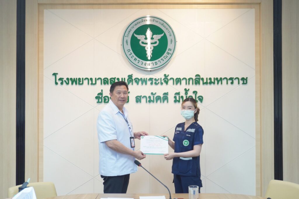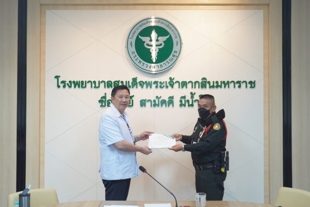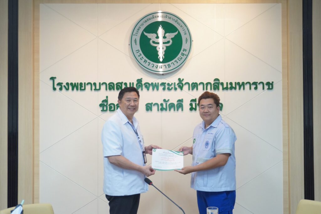 วันที่ 20 เมษายน 2569 ณ ห้องประชุมหลวงพิชัยอาสา โรงพยาบาลสมเด็จพระเจ้าตากสินมหาราช ได้มีการประชุมคณะกรรมการบริหารโรงพยาบาล โดยมี นพ.มงคล ลือชูวงศ์ ผู้อำนวยการโรงพยาบาล เป็นประธานในการประชุม พร้อมทั้งได้มอบเกียรติบัตรเพื่อยกย่องเชิดชูเกียรติแก่บุคลากรที่มีผลงานดีเด่น และเป็นแบบอย่างที่ดีในด้านต่าง ๆ ในการนี้ ![]()