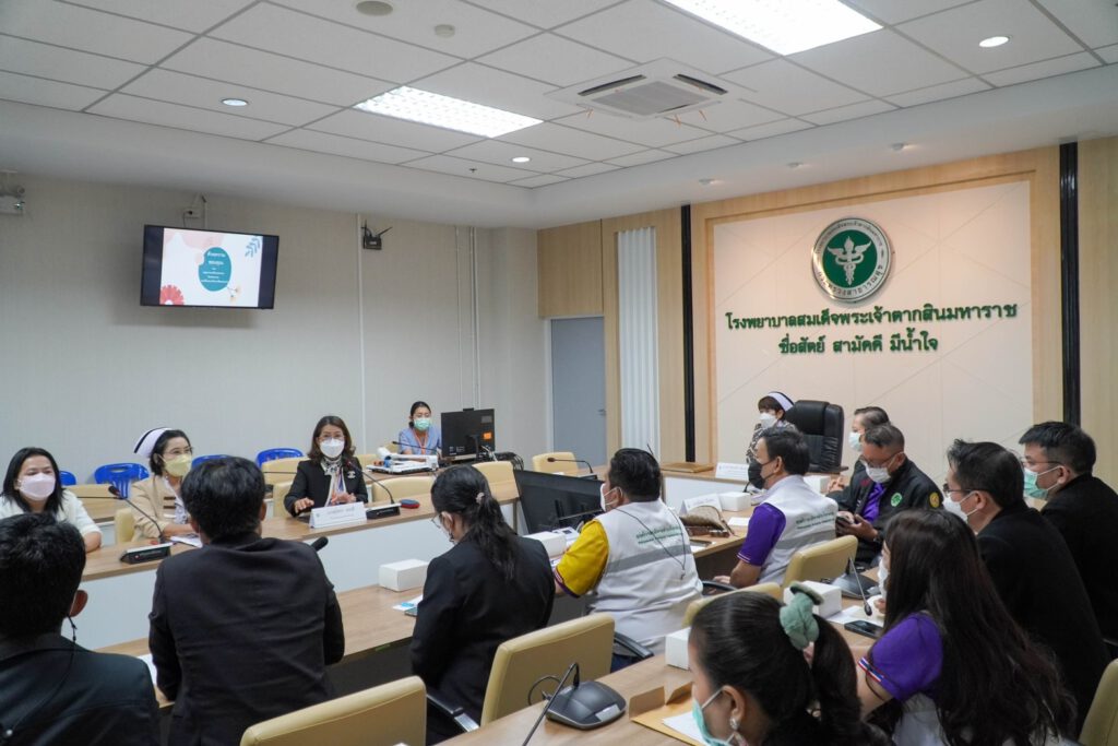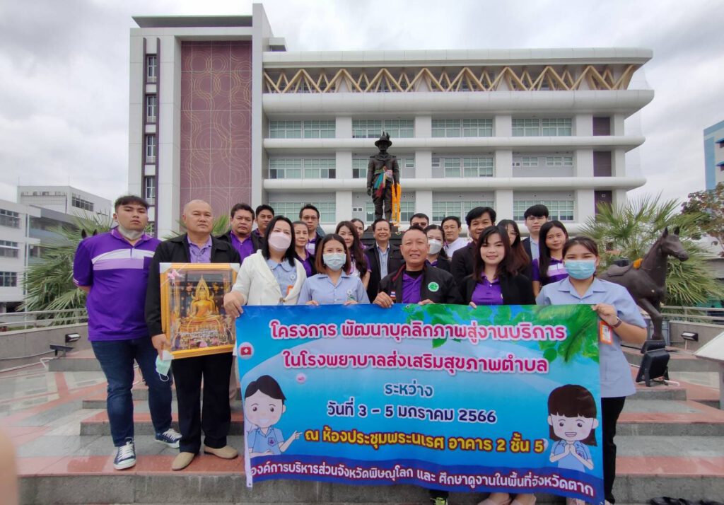 วันที่ 4 มกราคม 2566 เวลา 09.00 – 12.00 น. นพ.บรรเจิด นนทสูติ ผู้อำนวยการโรงพยาบาลสมเด็จพระเจ้าตากสินมหาราช มอบหมายให้นางสาวชลาลัย เขียวสุวรรณ รองผู้อำนวยการฝ่ายการพยาบาล พร้อมด้วยนางสุนิตรา ทองดี หัวหน้ากลุ่มงานอาชีวเวชกรรม และคณะเจ้าหน้าที่โรงพยาบาลสมเด็จพระเจ้าตากสินมหาราช ร่วมต้อนรับคณะบุคคลากรสังกัดองค์การบริหารส่วนจังหวัดพิษณุโลก ประกอบด้วย เจ้าหน้าที่โรงพยาบาลส่งเสริมสุขภาพตำบล เจ้าหน้าที่กองสาธารณสุข และเจ้าหน้าที่ที่เกี่ยวข้องด้านงานบริการ จำนวน 70 คน เข้าศึกษาดูงานการจัดบริการ Wellness Center โรงพยาบาลสมเด็จพระเจ้าตากสินมหาราช ณ ห้องประชุมหลวงพิชัยอาสา ชั้น 5 อาคารผู้ป่วยนอก