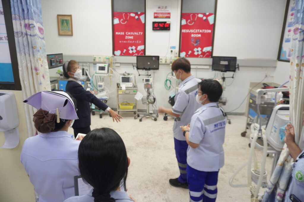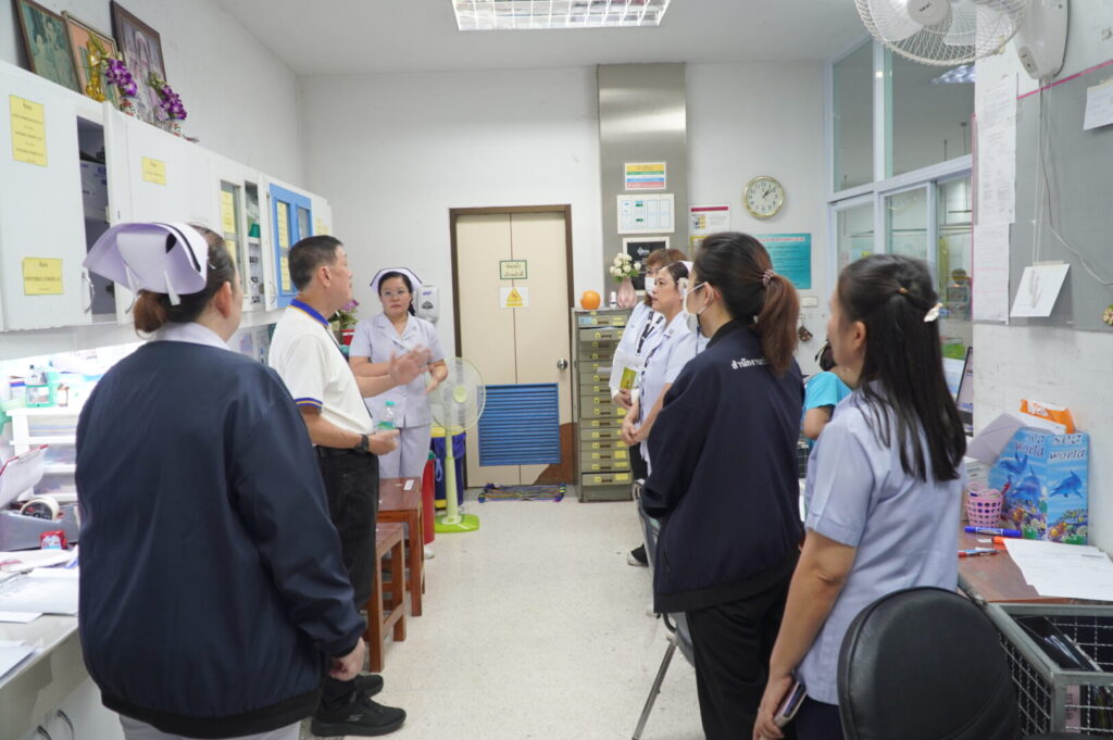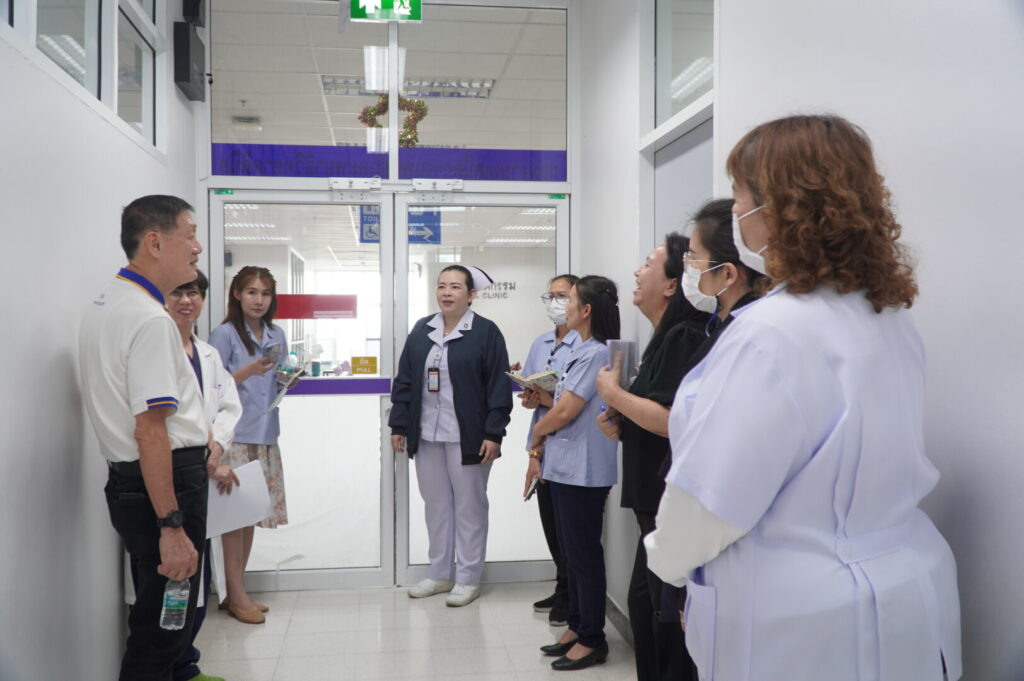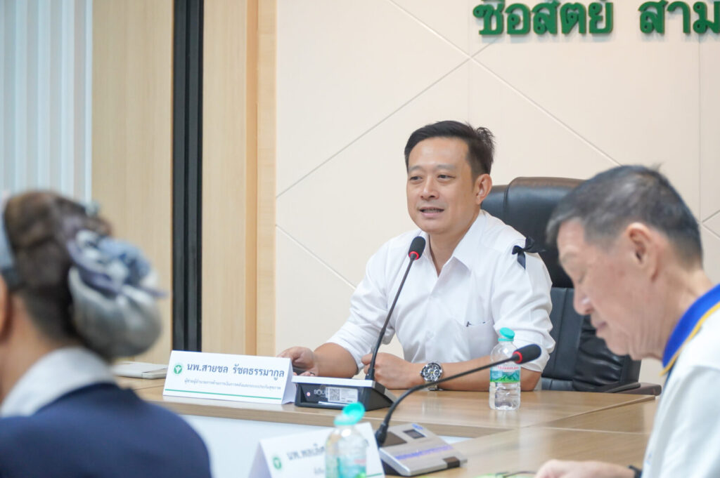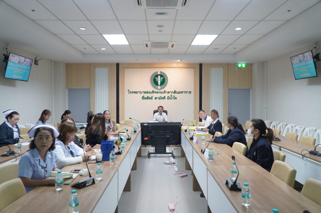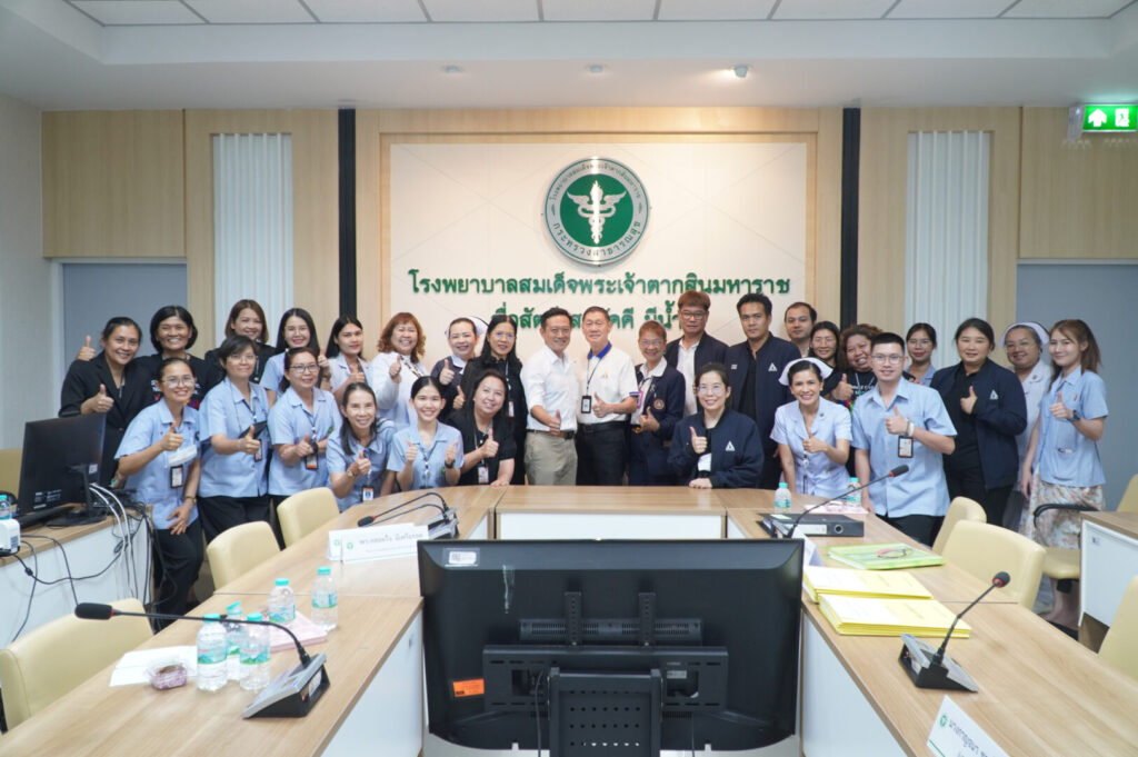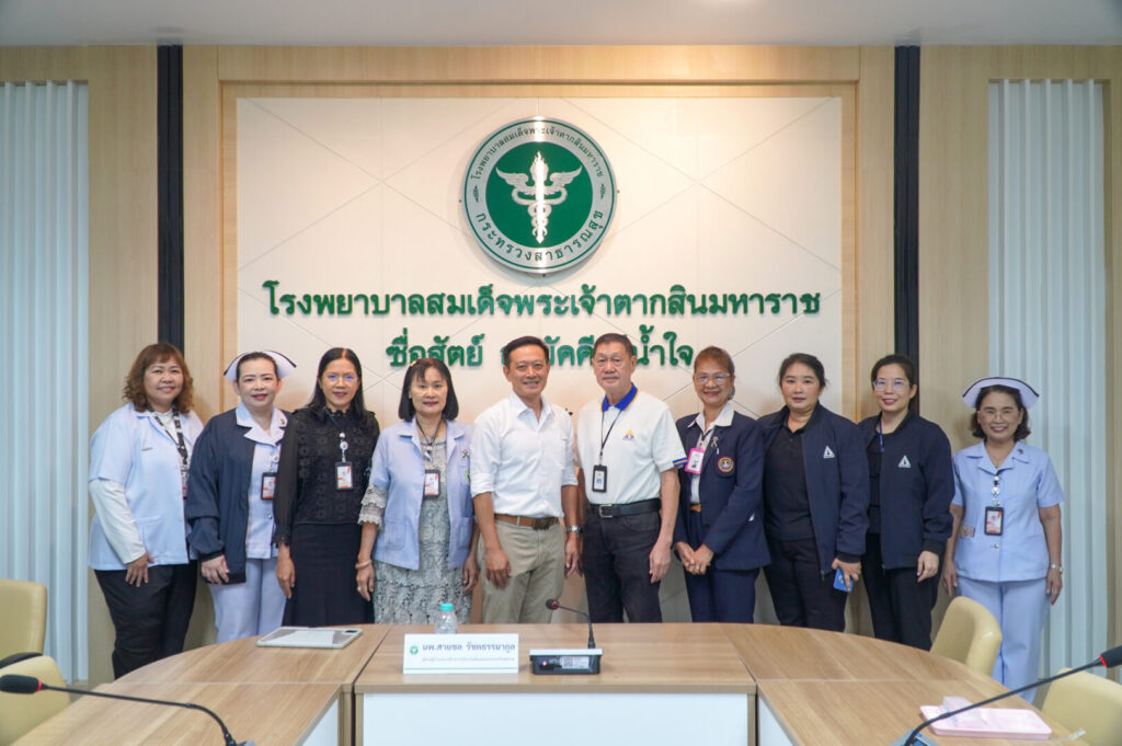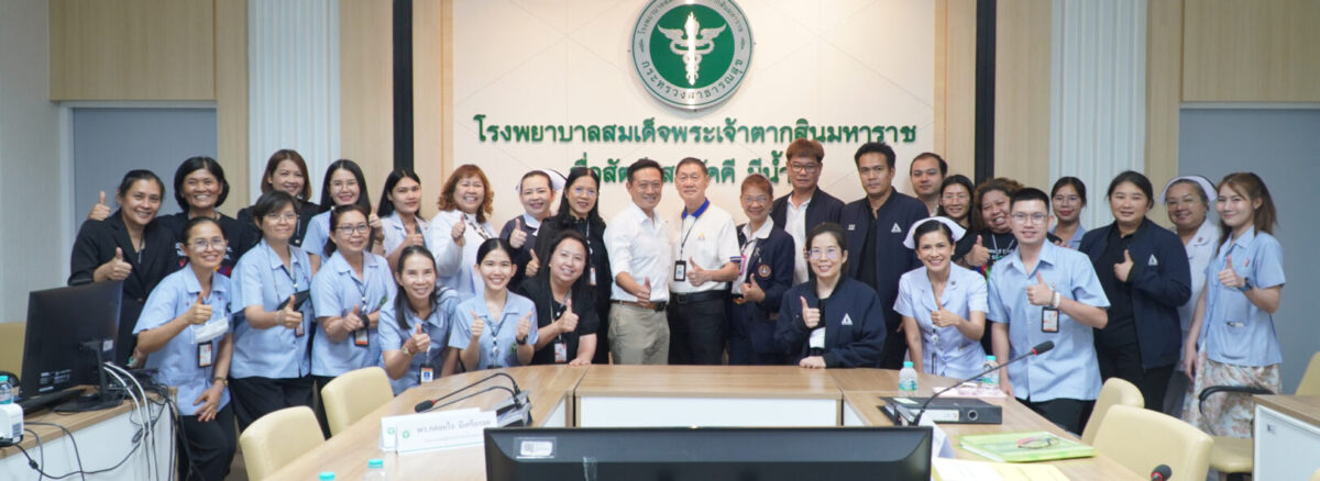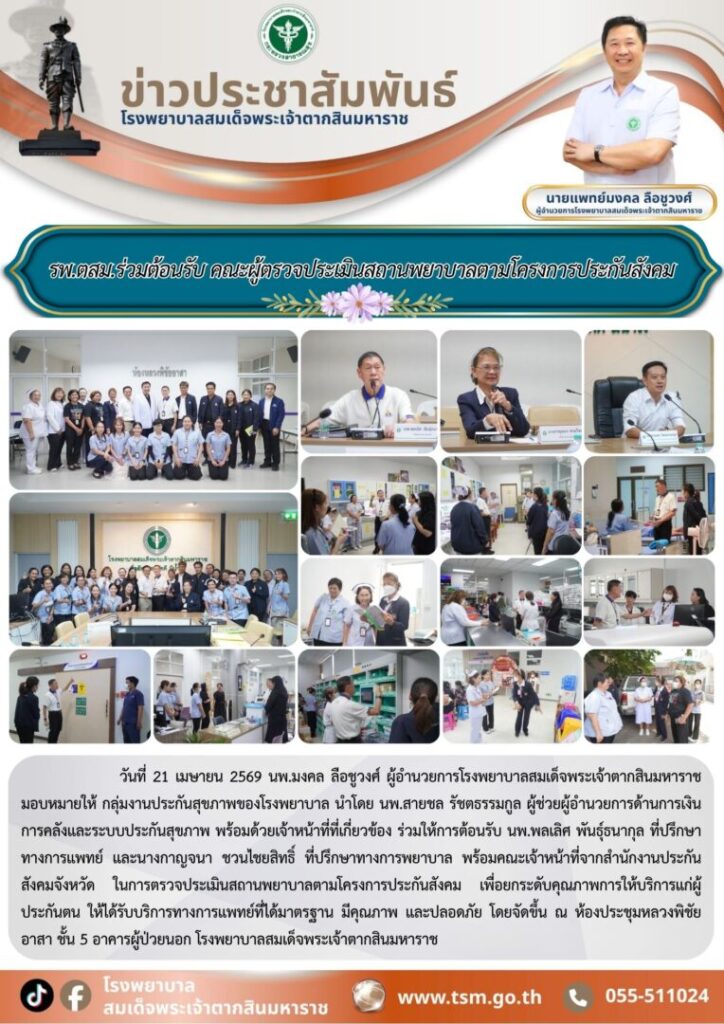 วันที่ 21 เมษายน 2569 นพ.มงคล ลือชูวงศ์ ผู้อำนวยการโรงพยาบาลสมเด็จพระเจ้าตากสินมหาราช มอบหมายให้ กลุ่มงานประกันสุขภาพของโรงพยาบาล นำโดย นพ.สายชล รัชตธรรมกูล ผู้ช่วยผู้อำนวยการด้านการเงินการคลังและระบบประกันสุขภาพ พร้อมด้วยเจ้าหน้าที่ที่เกี่ยวข้อง ร่วมให้การต้อนรับ นพ.พลเลิศ พันธุ์ธนากุล ที่ปรึกษาทางการแพทย์ และนางกาญจนา ชวนไชยสิทธิ์ ที่ปรึกษาทางการพยาบาล พร้อมคณะเจ้าหน้าที่จากสำนักงานประกันสังคมจังหวัด ในการตรวจประเมินสถานพยาบาลตามโครงการประกันสังคม เพื่อยกระดับคุณภาพการให้บริการแก่ผู้ประกันตน ให้ได้รับบริการทางการแพทย์ที่ได้มาตรฐาน มีคุณภาพ และปลอดภัย โดยจัดขึ้น ณ ห้องประชุมหลวงพิชัยอาสา ชั้น 5 อาคารผู้ป่วยนอก โรงพยาบาลสมเด็จพระเจ้าตากสินมหาราช