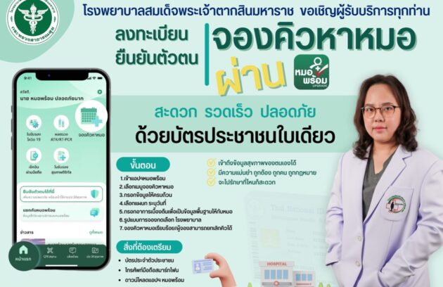 สนใจขอรับบริการหมอพร้อม DID ได้ที่โรงพยาบาลสมเด็จพระเจ้าตากสินมหาราชหรือสถานบริการสาธารณสุขใกล้บ้านทุกแห่ง **สอบถามเพิ่มเติมได้ที่ 055-511-024-5 ต่อ 0 หรือ 1000 ติดต่อประชาสัมพันธ์*