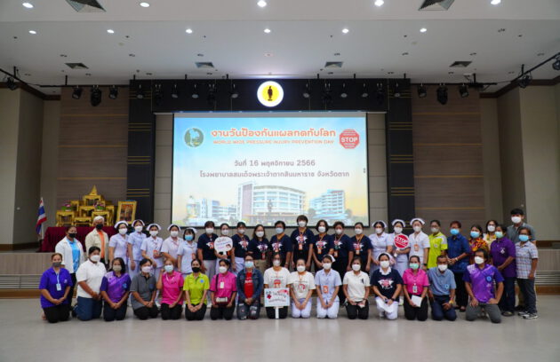 วันที่ 16 พฤศจิกายน 2566 นพ.บรรเจิด นนทสูติ ผู้อำนวยการโรงพยาบาลสมเด็จพระเจ้าตากสินมหาราช มอบหมายให้กลุ่มการพยาบาล นำโดยนางดุจดาว ทับเบิก พยาบาลวิชาชีพชำนาญการพิเศษ รักษาการแทนรองผู้อำนวยการฝ่ายการพยาบาล พร้อมด้วย พญ.มานิตา พนธารา นายแพทย์ชำนาญการ จัดกิจกรรม ภายใต้โครงการ“หยุด”แผลกดทับโลก ประจำปี 2566…