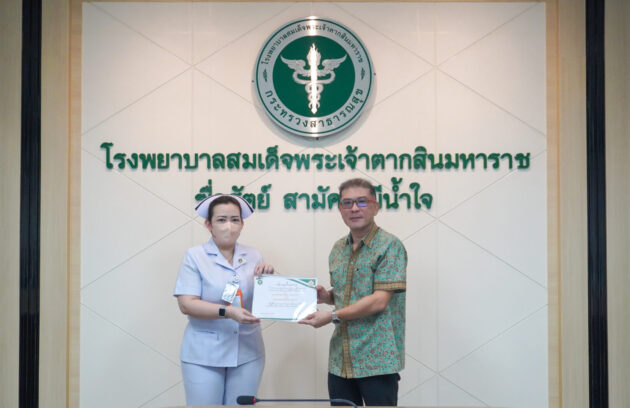 ” บริจาคอวัยวะแก่เพื่อนมนุษย์คือที่สุดของการให้ “ วันที่ 12 พฤศจิกายน 2566 นพ.บรรเจิด นนทสูติ ผู้อำนวยการโรงพยาบาลสมเด็จพระเจ้าตากสินมหาราช มอบหมายให้ นางนิตยา สุวรรณาภรณ์ รองผู้อำนวยการฝ่ายการพยาบาล เป็นตัวแทนมอบพวงหรีดเพื่อแสดงความไว้อาลัย พร้อมทั้งมอบเกียรติบัตรขอบคุณครอบครัวผู้บริจาค ไต 2 ข้าง และดวงตา…