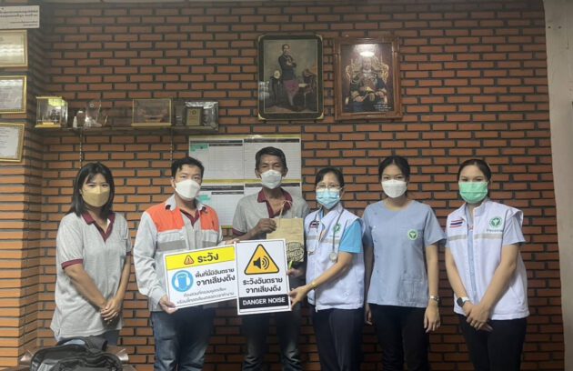 วันที่ 18 สิงหาคม 2566 นายแพทย์บรรเจิด นนทสูติ ผู้อำนวยการโรงพยาบาลสมเด็จพระเจ้าตากสินมหาราช มอบหมายให้กลุ่มงานอาชีวเวชกรรม โรงพยาบาลสมเด็จพระเจ้าตากสินมหาราช ออกหน่วยอาชีวอนามัยเชิงรุกในสถานประกอบการ พร้อมด้วยเจ้าหน้าที่จากสำนักงานประกันสังคมจังหวัดตาก และเจ้าหน้าที่จากโรงพยาบาลวังเจ้า ดำเนินการประเมินความเสี่ยงด้านสุขภาพจากกระบวนการทำงาน ให้คำแนะนำการจัดสภาพแวดล้อมในการทำงานเพื่อให้เกิดความปลอดภัย ร่วมหามาตรการการแก้ไขปัญหา ให้ความรู้เกี่ยวกับสิทธิประโยชน์ของผู้ประกันตน พร้อมติดตามเยี่ยมพนักงานที่ป่วยด้วยโรคซิลิโคสิสในสถานประกอบการ และติดตามประเมินผลการดำเนินงานตามโครงการ “ชวนกันฟิต พิชิตพุง…