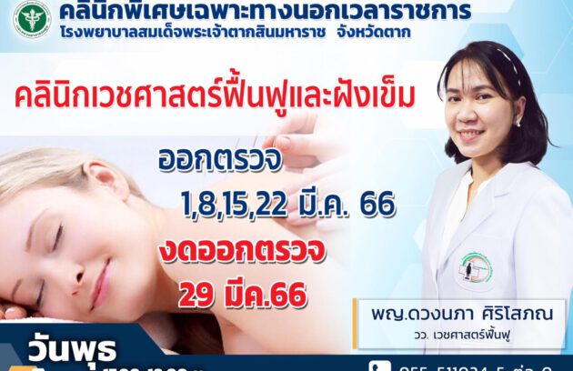 ตารางการออกตรวจคลินิกพิเศษเฉพาะทางนอกเวลาราชการ คลินิกศัลยกรรมระบบทางเดินปัสสาวะ คลินิกเวชศาสตร์ฟื้นฟูและฝังเข็ม