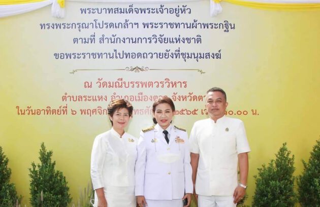 วันที่ 6 พฤศจิกายน 2565 พระบาทสมเด็จพระเจ้าอยู่หัว ทรงพระกรุณาโปรดเกล้าฯ พระราชทาน ผ้าพระกฐิน ให้ ดร.วิภารัตน์ ดีอ่อง ผู้อำนวยการสำนักงานการวิจัยแห่งชาติ และคณะฯ เป็นเจ้าภาพอัญเชิญผ้าพระกฐินพระราชทานมาถวายแด่พระสงฆ์ที่จำพรรษา ณ วัดมณีบรรพต วรวิหาร (พระอารามหลวง) อำเภอเมืองตาก จังหวัดตาก…