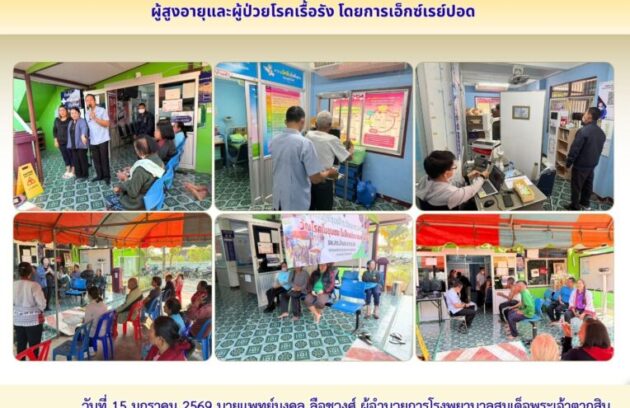 วันที่ 15 มกราคม 2569 นายแพทย์มงคล ลือชูวงศ์ ผู้อำนวยการโรงพยาบาลสมเด็จพระเจ้าตากสินมหาราช มอบหมายให้ กลุ่มงานเวชกรรมสังคม โรงพยาบาลสมเด็จพระเจ้าตากสินมหาราช ร่วมกับโรงพยาบาลส่งเสริมสุขภาพตำบลบ้านชะลาดระฆัง สำนักงานสาธารณสุขอำเภอเมืองตาก จังหวัดตาก จัดกิจกรรมคัดกรองวัณโรคในกลุ่มเสี่ยงผู้สูงอายุและผู้ป่วยโรคเรื้อรัง โดยการเอ็กซ์เรย์ปอด มีผู้เข้ารับการตรวจคัดกรอง ทั้งหมด 142 ราย