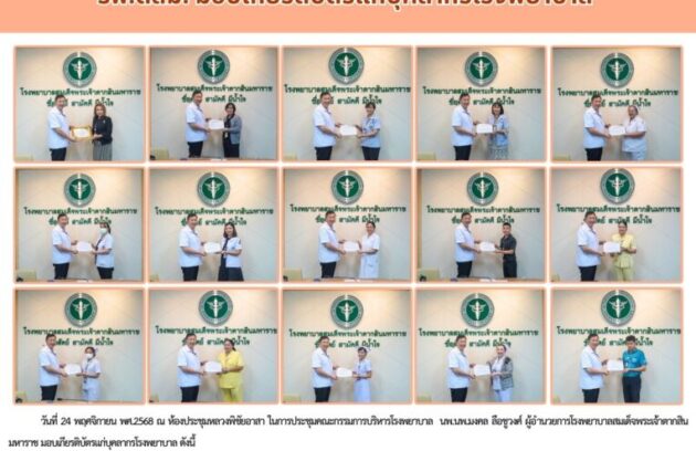 วันที่ 24 พฤศจิกายน พศ.2568 ณ ห้องประชุมหลวงพิชัยอาสา ในการประชุมคณะกรรมการบริหารโรงพยาบาล นพ.นพ.มงคล ลือชูวงศ์ ผู้อำนวยการโรงพยาบาลสมเด็จพระเจ้าตากสินมหาราช มอบเกียรติบัตรแก่บุคลากรโรงพยาบาล ดังนี้ ด้านความซื่อสัตย์ ได้แก่ 1.นางสาวเบญจพร โชติรุจิรานนท์ พนักงานผู้ช่วยเหลือคนไข้ ตึกตาหูคอจมูก เก็บกุญแจรถยนต์ได้แล้วส่งคืน 2.คุณกัลยาณี…