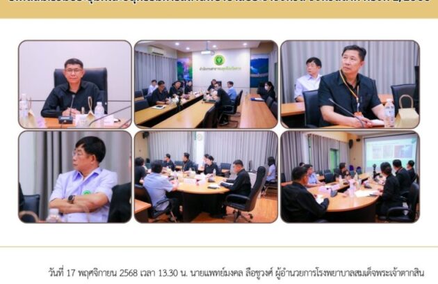 วันที่ 17 พฤศจิกายน 2568 เวลา 13.30 น. นายแพทย์มงคล ลือชูวงศ์ ผู้อำนวยการโรงพยาบาลสมเด็จพระเจ้าตากสินมหาราช พร้อมด้วยคณะผู้บริหารโรงพยาบาล ร่วมประชุมคณะอนุกรรมการสถานพยาบาลประจำจังหวัด จังหวัดตาก ครั้งที่ 1/2569 โดยมีนายแพทย์หัสชา เนือยทอง นายแพทย์สาธารณสุขจังหวัดตาก เป็นประธานการประชุม ในการนี้มีคณะอนุกรรมการ…
