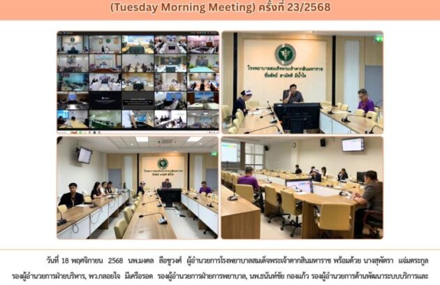 วันที่ 18 พฤศจิกายน 2568 นพ.มงคล ลือชูวงศ์ ผู้อำนวยการโรงพยาบาลสมเด็จพระเจ้าตากสินมหาราช พร้อมด้วย นางสุพัตรา แจ่มตระกูล รองผู้อำนวยการฝ่ายบริหาร, พว.กลอยใจ มีเครือรอด รองผู้อำนวยการฝ่ายการพยาบาล, นพ.ธนันท์ชัย กองแก้ว รองผู้อำนวยการด้านพัฒนาระบบบริการและสนับสนุนบริการสุขภาพ และเจ้าหน้าที่ที่เกี่ยวข้อง ร่วมประชุมติดตามผลการดำเนินงาน ตามนโยบายกระทรวงสาธารณสุข…