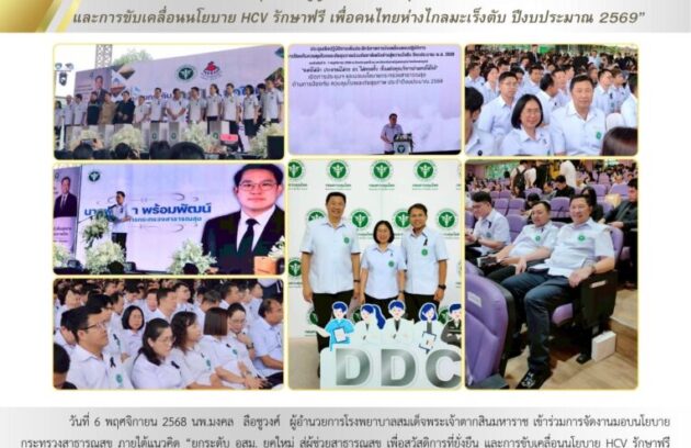 วันที่ 6 พฤศจิกายน 2568 นพ.มงคล ลือชูวงศ์ ผู้อำนวยการโรงพยาบาลสมเด็จพระเจ้าตากสินมหาราช เข้าร่วมการจัดงานมอบนโยบายกระทรวงสาธารณสุข ภายใต้แนวคิด “ยกระดับ อสม. ยุคใหม่ สู่ผู้ช่วยสาธารณสุข เพื่อสวัสดิการที่ยั่งยืน และการขับเคลื่อนนโยบาย HCV รักษาฟรี เพื่อคนไทยห่างไกลมะเร็งตับ” โดยมีนายพัฒนา พร้อมพัฒน์…
