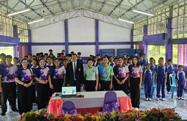 วันที่ 27 สิงหาคม 2568 นายบรรเจิด นนทสูติ ผู้อำนวยการโรงพยาบาลสมเด็จพระเจ้าตากสินมหาราช มอบหมายให้ศูนย์พึ่งได้คลินิกเพื่อนใจวัยรุ่น โรงพยาบาลสมเด็จพระเจ้าตากสินมหาราช นำโดย พว.เดือนฉาย อินทร์อยู่ พยาบาลวิชาชีพชำนาญการพิเศษ และนายบุญมี ทับสุริ นักสังคมสงเคราะห์ชำนาญการ เข้าร่วมให้ความรู้กับนักเรียน ในโครงการ “ รู้เท่าทันป้องกันภัยวัยใสสู่อนาคตที่ปลอดภัยและสร้างสรรค์…