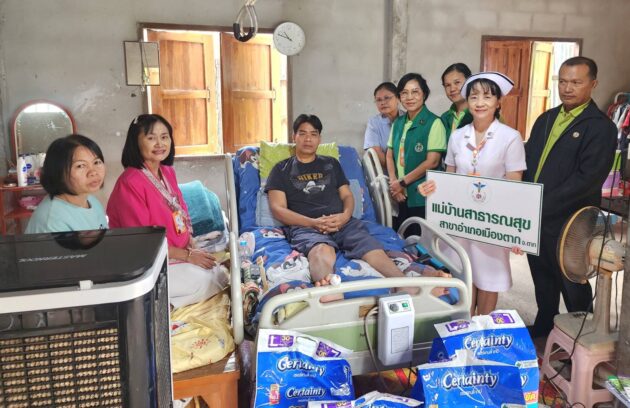 วันที่ 27 สิงหาคม 2568 พว.นิตยา สุวรรณาภรณ์ รองผู้อำนวยการฝ่ายการพยาบาล โรงพยาบาลสมเด็จพระเจ้าตากสินมหาราช พร้อมด้วยทีมแม่บ้านสาธารณสุข อำเภอเมืองตาก จังหวัดตาก ลงพื้นที่เยี่ยมบ้านผู้ป่วยติดเตียง พร้อมทั้งมอบเงินช่วยเหลือและผ้าอ้อมสำเร็จรูป เพื่อสนับสนุนการดูแลผู้ป่วย รวมถึงติดตามอาการ สร้างขวัญและกำลังใจให้แก่ผู้ป่วยและครอบครัว เพื่อให้มีคุณภาพชีวิตที่ดีขึ้น โรงพยาบาลพร้อมที่จะร่วมมือกับทีมสาธารณสุขและภาคีเครือข่ายในชุมชน เพื่อดูแลประชาชนอย่างทั่วถึงและต่อเนื่อง พร้อมทั้งให้คำปรึกษาแก่ครอบครัวผู้ป่วย…