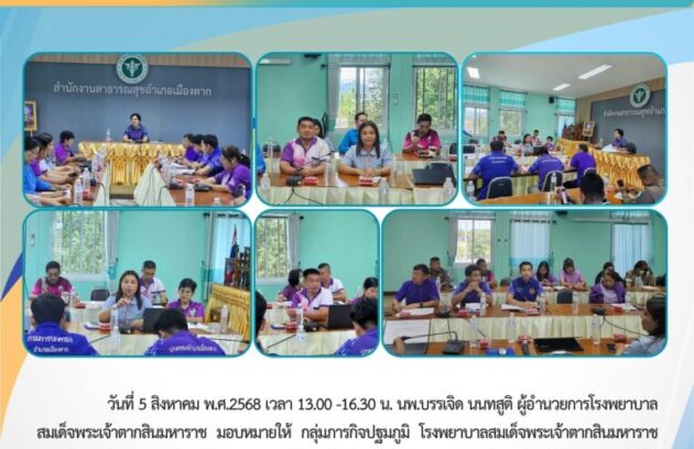 วันที่ 5 สิงหาคม พ.ศ.2568 เวลา 13.00 -16.30 น. นพ.บรรเจิด นนทสูติ ผู้อำนวยการโรงพยาบาลสมเด็จพระเจ้าตากสินมหาราช มอบหมายให้ กลุ่มภารกิจปฐมภูมิ โรงพยาบาลสมเด็จพระเจ้าตากสินมหาราช เข้าร่วมประชุมคณะกรรมการพัฒนาคุณภาพชีวิตระดับอำเภอ (พชอ.) อำเภอเมือง จังหวัดตาก โดยมีปลัดอาวุโส อำเภอเมืองตากเป็นประธานในการประชุม…