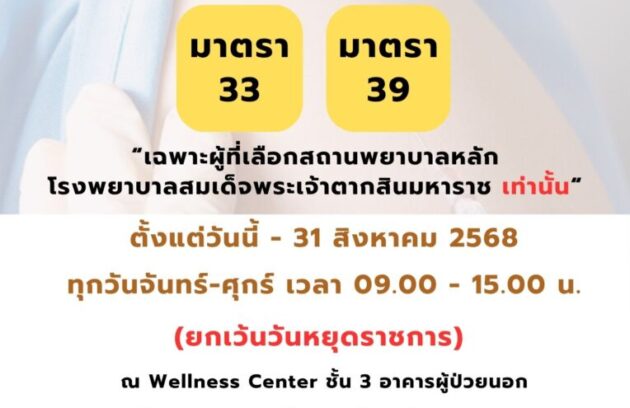 ฟรี !! ไข้หวัดใหญ่สำหรับผู้ประกันตน (มาตรา 33 และ 39) อายุ 50 ปีขึ้นไป เฉพาะผู้ประกันตนที่เลือกสถานพยาบาลหลัก > โรงพยาบาลสมเด็จพระเจ้าตากสิน เท่านั้น ! ตั้งแต่วันนี้ – 31 สิงหาคม 2568…