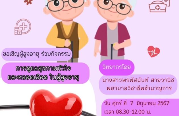 วันศุกร์ที่ 7 มิถุนายน 2567 คลินิกผู้สูงอายุ โรงพยาบาลสมเด็จพระเจ้าตากสินมหาราช ได้จัดกิจกรรมให้แก่ชมรมผู้สูงอายุ ประจำเดือนมิถุนายน พ.ศ.2567 ตั้งแต่เวลา 08.30น. – 12.00น. โดยมีกิจกรรมแสดงความเคารพ และร้องเพลง ถวายพระพรชัยมงคลสมเด็จพระนางเจ้าฯ พระบรมราชินี เนื่องในโอกาสวันเฉลิมพระชนมพรรษา พร้อมกับให้ความรู้เรื่องการดูแลหัวใจ และหลอดเลือดในผู้สูงอายุโดยมี…