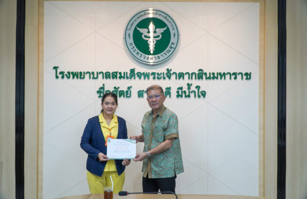 ชมรมจริยธรรม โรงพยาบาลสมเด็จพระเจ้าตากสินมหาราช มอบประกาศนียบัตร ให้แก่ เจ้าหน้าที่โรงพยาบาล 2 ท่าน ดังนี้ 1.นางสาวรุ่งนภา ปานเนียม พนักงานช่วยเหลือคนไข้ เนื่องจากหลังเลิกงาน ขับรถกลับบ้าน เห็นผู้ประสบอุบัติเหตุ ได้ให้ความช่วยเหลือปฐมพยาบาลเบื้องต้น ก่อนนำส่งโรงพยาบาล 2.นายจิระศักดิ์ เขน่วม พนักงานรักษาความปลอดภัย เก็บกระเป๋าเงิน…