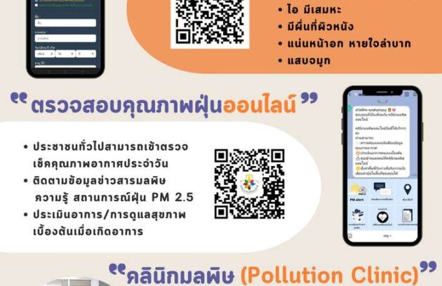 คลินิกมลพิษออนไลน์ โรงพยาบาลสมเด็จพระเจ้าตากสินมหาราช เปิดให้บริการทุกวัน จันทร์ถึงศุกร์ เวลา 08.00 – 16.00 น. กลุ่มงานอาชีวเวชกรรมWellness Center ชั้น 3 อาคารผู้ป่วยนอก(055-511024 ต่อ 1087) ติดตามข้อมูล ข่าวสาร การดูแลตนเองคุณภาพอากาศ์ฝุ่นละอองประจำวัน https://liff.line.me/1645278921-kWRPP32q/?accountId=854phcqn…