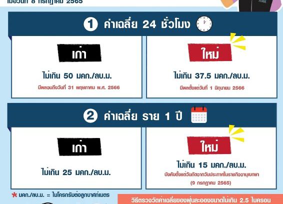 ประกาศคณะกรรมการสิ่งแวดล้อมแห่งชาติ เรื่อง กำหนดมาตรฐานฝุ่นละอองขนาดไม่เกิน 2.5 ไมครอน ในบรรยากาศทั่วไป ตั้งแต่วันที่ 1 มิ.ย. 66 เป็นต้นไป