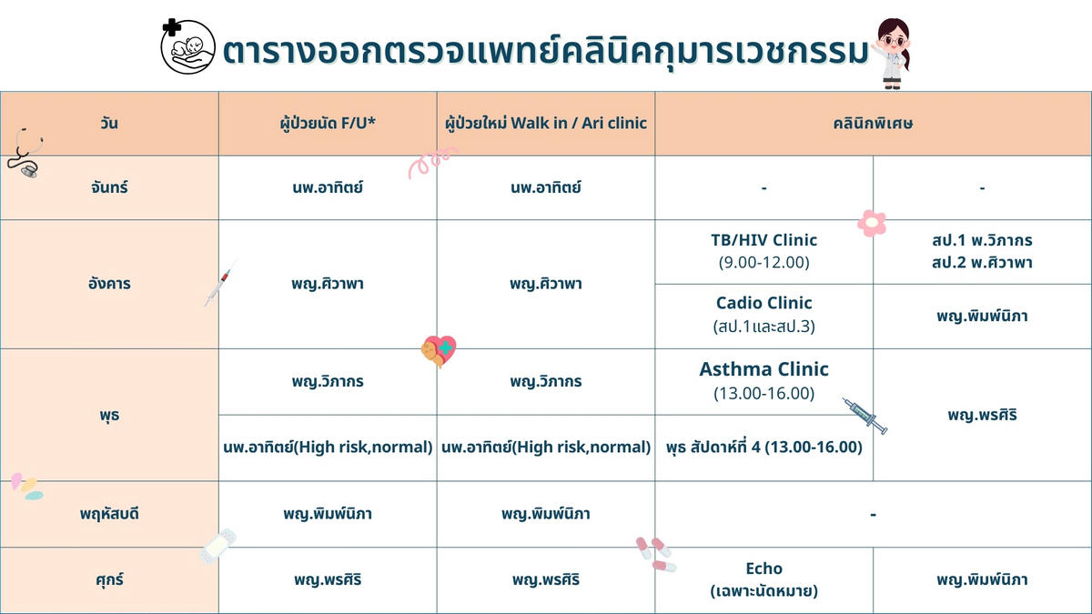 ให้บริการดูแลสุขภาพเด็กโดยกุมารแพทย์ผู้เชี่ยวชาญเฉพาะทาง พร้อมให้บริการตรวจสุขภาพ ตรวจรักษาโรคเด็กตามอาการป่วย เพื่อให้ลูกของคุณพ่อคุณแม่เติบโตอย่างแข็งแรงและมีพัฒนาการที่สมวัย