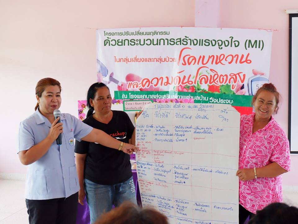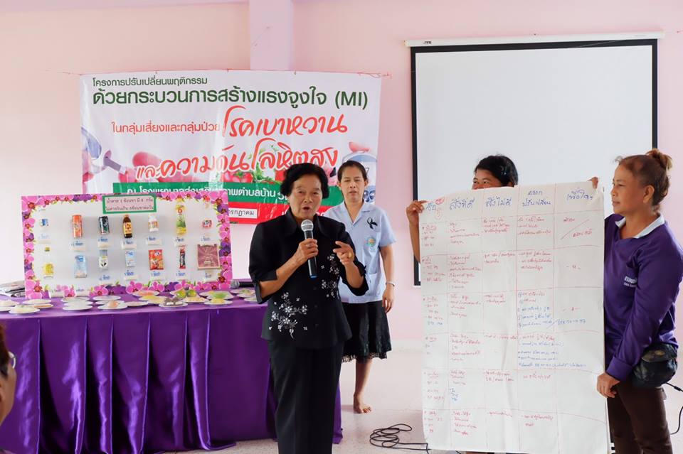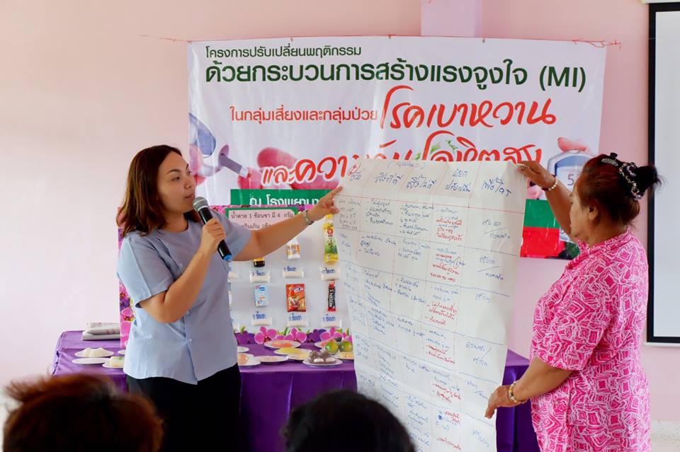 การอบรมปรับเปลี่ยนพฤติกรรมด้วยกระบวนการสร้างแรงจูงใจ( MI )ในกลุ่มเสี่ยงและกลุ่มป่วย โรคเบาหวานและความดันโลหิตสูงในรพ.สต